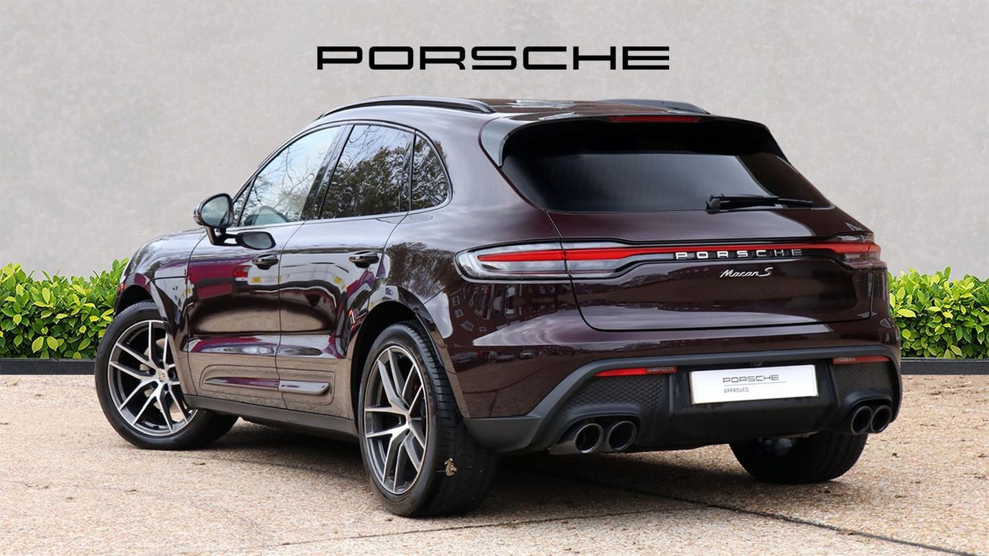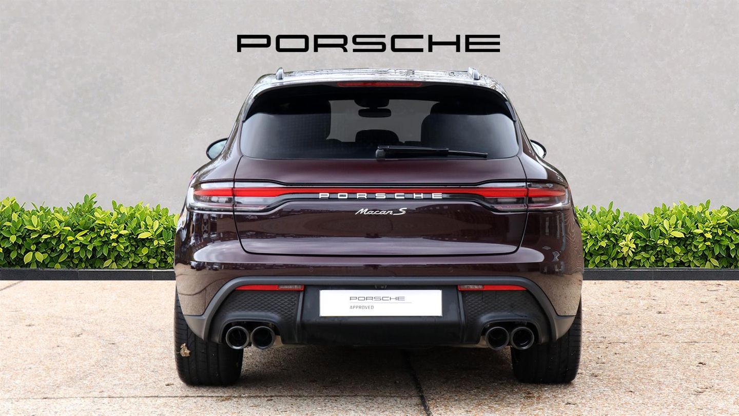 20" Macan S Wheels In Dark Titanium ,BOSE Surround Sound System,Panoramic Glass Roof,Air Suspension Inc PASM Active Suspension,Sport Chrono Package,Automatic Dimming Interior & Exterior Mirrors,Comfort Seats Front 14-Way Electric,Sports Exhaust With Black Tailpipes,LED Main Headlights Inc Dynamic Light System Plus,Heated Multifunction GT Sports Steering Wheel,Heated Rear Seats,Embossed Crest On Front Headrests,PORSCHE Logo LED Door Courtesy Lights,Surround View Camera System,Roof Rails In Aluminium High Gloss Black,Sideblades In Exterior Colour,Side Window Trims In High Gloss Black,Door Handles In High Gloss Black,Privacy Glass,75 litre fuel tank,Balance Of 3 Years Manufacturers Warranty