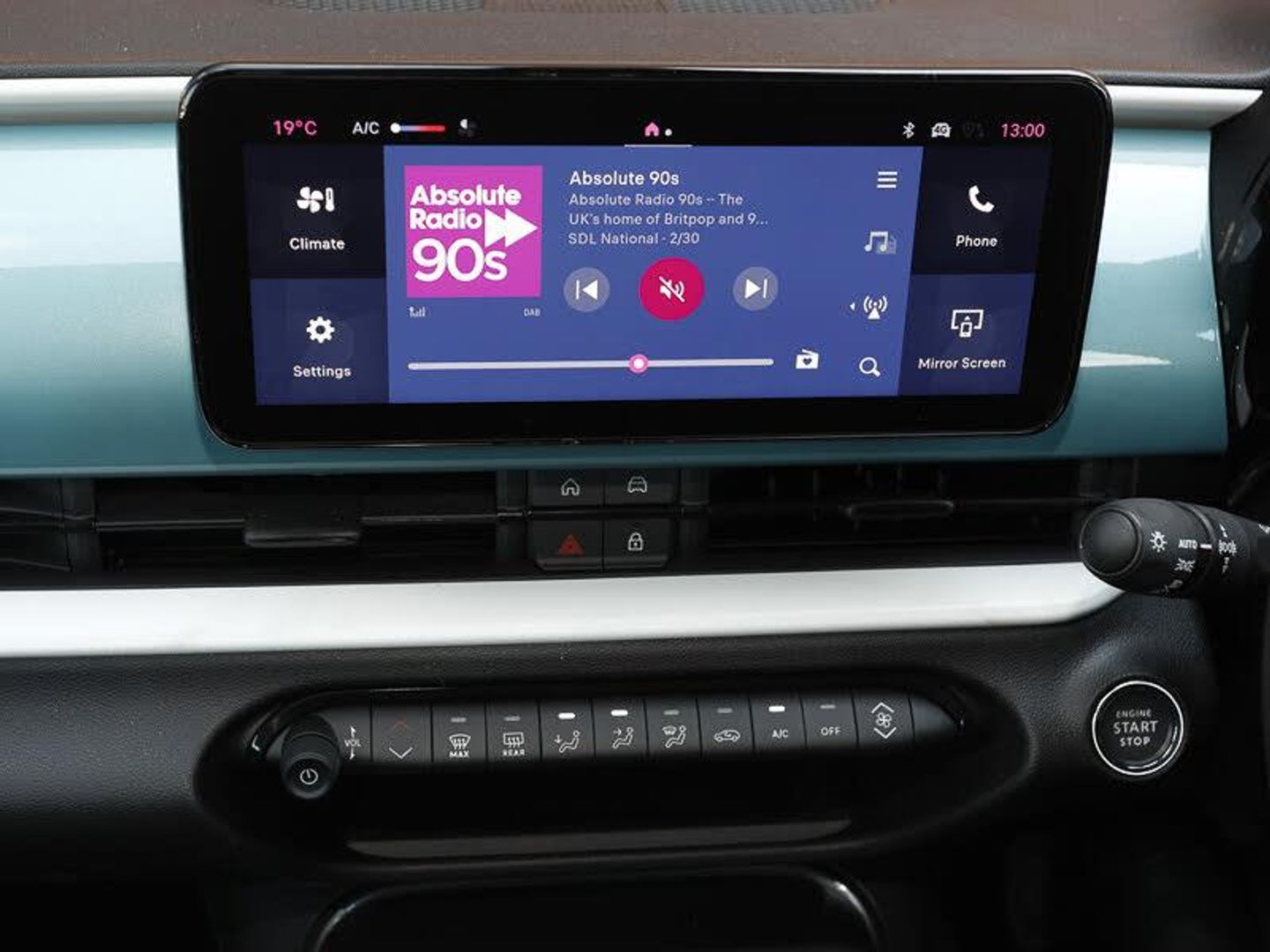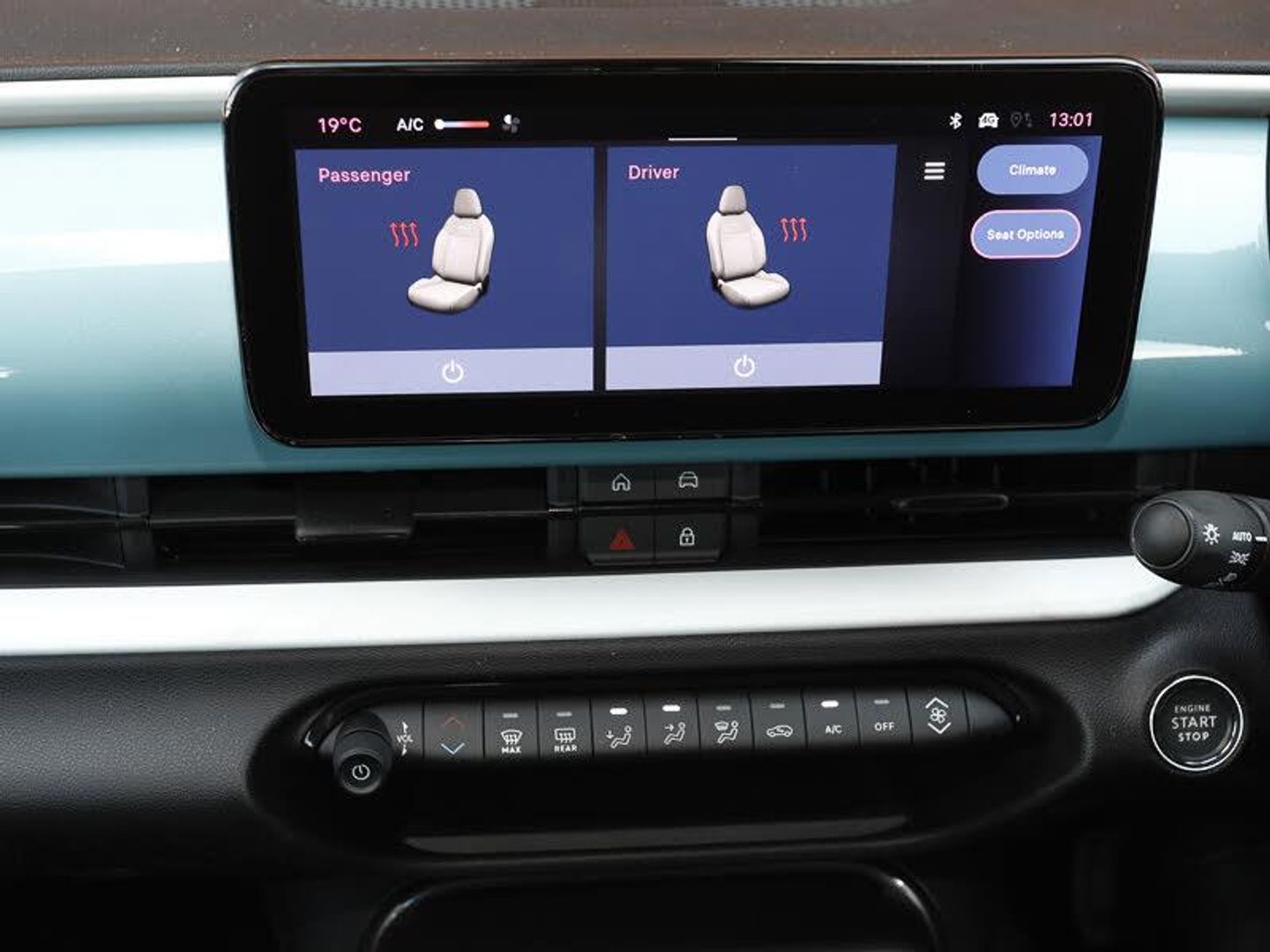 Uconnect infotainment 10.25" touchscreen with DAB, 1st Row USB type-A and USB type-C, 7" TFT digital cluster, Bluetooth connectivity, Cruise control, Intelligent speed assist, Lane keeping assistant (LKA), Rain and dusk sensors, Rear parking sensors, Wireless apple car play/android Auto, Automatic headlights, Auto dimming frameless rear view mirror, LED front signature lighting, LED rear lights, LED rear signature lighting, Manual climate control, Smart 15L storage central tunnel with tunnel pad cover
