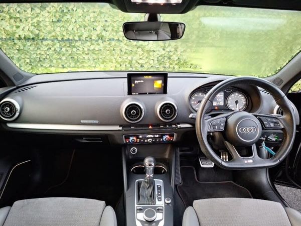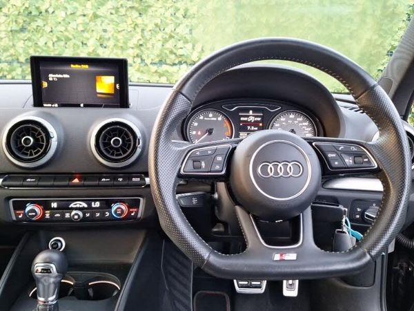 Black styling pack - A3/S3, LED interior light pack - A3/RS3, Audi connect, Audi drive select, Mobile telephone preparation - bluetooth interface, Bang + Olufsen advanced sound system, MMI radio plus with 7" colour MMI screen and MMI controller, Auto dimming rear view mirror with light and rain sensors, Electric operated/heated door mirrors, Heated windscreen washer jets, LED daytime running lights, S body styling, 3 spoke flat bottomed multi-function leather steering wheel, Dual zone electronic climate control, Heated front seats, ISOFIX child seat preparation+airbag deactivation, ABS/EBD, Electromechanical parking brake, Multi-Collision braking, Tyre pressure warning, Thatcham category 1 alarm + immobiliser, Remote control central locking