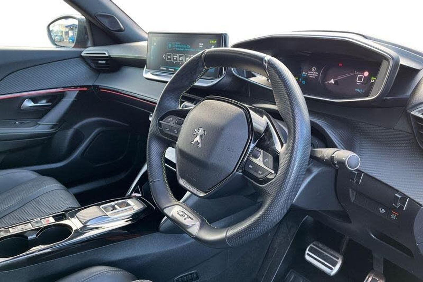 10 Capacitive colour touchscreen with connected 3D navigation, Bluetooth telephone facility, Driver attention warning, e-Toggle driving selector, Exterior temperature indicator with ice warning, Front and rear parking sensors, Mirror screen with mirror link, apple carplay and android auto, Multi function trip computer, PEUGEOT i-Cockpit with compact steering wheel, PEUGEOT i-Cockpit with configurable 3D headup instrument panel, PEUGEOT SOS and assistance, Smart phone docking station, Speed limit recognition and recommendation, Visio Park 1 with 180 degree Colour reversing camera, 2 X Rear number plate lights, Acoustic windscreen, Automatic hazard light activation upon heavy brake application, Black diamond roof, Black front wing trim with gloss black detail and e-monogram, Body coloured exterior door handles, Chrome Lion Badge front and rear, Dark tinted rear side and tailgate windows, Diamond black mirror shells, Diamond black rear spoiler, Electric, heated, and power folding door mirrors, Frameless electrochrome interior rear view mirror, Front bumper - Silver lower trim, Front tinted windscreen, Full LED headlights with smartbeam assist, Gloss black finish on B pillar, Gloss black longitudinal roof rails, Gloss black rear cluster connecting strip, Gloss black roof bars, Gloss black window surround, GT model designation badging on tailgate, Headlights left on audible warning, LED daytime running lights with 3 claw headlight with distinctive tooth design, LED side indicator lights integrated into door mirrors, LED third brake light, Lower door protection with silver inserts, Model designation badges front and rear, One touch electric front/rear windows with pinch protection, Radiator grille - body colour chequered with body coloured upper trim, Radiator grille - colour coded top edge trim, Rear full LED 3D peugeot signature claw effect lights with daylight function, Rear reversing lights, Rear side wing doors, Rear windscreen wiper triggered automatically in reverse gear, Stainless steel door sill scuff plates, Tailgate with heated rear windscreen and wiper blade, Variable front intermittent wipers, Welcome lighting, Wheel arch extensions, 1/3 to 2/3 split folding rear seats, 12v power outlet - front, 12V socket, 3 seat bench in 2nd row, 8 Colour personalisable ambient lighting, Aluminium pedals, Automatic air conditioning with pollen and active carbon filter, Central front armrest with storage compartment, Driver and front passenger dynamic seats, Electric power steering with reach and rake adjustable steering column, Front and rear carpet mats in black with specific detailing, Front LED interior light with 2 reading spotlights and rear interior light with timer, Front passenger seat manual adjustment - height, longitudinal and back rest angle, Heated front seats, High centre console with 2 cup holders, ISOFIX child seat mounting points on passenger seat, Lime green contrast stitching to front centre console, door panels and dashboard facia, Map pockets on front seat backs, Mistral full-grain perforated leather steering wheel with Lime Green stitch detail and satin chrome 'GT' emblem, Modular boot floor, Multifunction steering wheel, Piano keys: Gloss black and chrome toggle switches to access main functions of the vehicle and touchscreen functions, Pre heating function, Roof lining - Mistral black, Seatbelt unfastened on the move audible and visual alert for front and rear seats, Single front passenger seat, Switch for Push Button Start finished in black with chrome surround, 2x 2nd row ISOFIX child seat mountings, ABS (Anti-lock Braking System) with EBD (Electronic Brakeforce Distribution) and EBA (Emergency Braking Assistance), Acoustic vehicle alerting system, Active safety brake with night function/cyclists/pedestrians, Adaptive driver and front passenger airbags with passenger airbag deactivation function, Brake energy regeneration, Child locking functionality on rear doors, Driver/front passenger side airbags, E