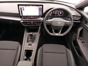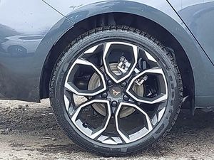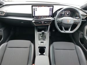 Adaptive cruise control with follow-to-stop and speed limiter, Four x USB Type C ports (2 in front and 2 in rear), Front and rear parking sensors, Front assist with forward collision warning braking reaction to vehicles, pedestrians and cyclists, Full link smartphone integration with Mirror Link, wireless Apple CarPlay and wired Google Android Auto, Lane assist, Wireless phone charger, Electrically adjustable, heated and folding door mirrors, High beam assist, LED headlights with dynamic turn signals, tail lights, rear fog lights with rear coast to coast lighting, Rain sensing wipers, Media system plus with 12.9" display + navigation pack - Leon Cupra, Central locking system Keyless Go, 18" Windstorm machined sport black matt and silver alloy wheel with 92Y XL tyres