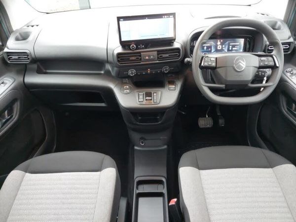 Wireless mirror screen with apple carplay and android auto, 10" Fully digital drivers instrument display, Rear parking sensor, Programmable cruise control and speed limiter, 10" HD touchscreen with voice recognition, Visibility pack - Berlingo, Active lane keeping assist, Speed limit recognition and recommendation, Bluetooth telephone facility, Citroen connect box emergency assist system, Driver attention alert system, eCall emergency call system, Start/stop system, Extended traffic sign recognition, Diesel particulate filter, USB type C socket for charging and data functions, DAB Digital radio, 6 speakers radio with mp3 compatible, Black aero spoiler and door mirror caps, Automatic triggered rear windscreen wiper in reverse gear, Automatic intelligent beam headlights, Automatic headlights, Automatic hazard light activation upon heavy brake application, Airbump, 3rd brake light, Body coloured front bumper, Chrome chevrons front grille, Electric front windows, Electric heated door mirrors, Front fog lights, Front windscreen wiper with multi speed setting, Headlights left on audible warning, Heated rear windscreen and wiper blade, Lateral bodywork protectors finished in black, LED daytime running lights, LED Headlights, Manual rear side windows, Rear view mirror, Shiny black door handles, Twin sliding side doors, White strip in fog light surround and on lateral bodywork protectors, Top box glove compartment, Standard grey interior ambiance, Single front passenger seat, Retractable parcel shelf, Metropolitan cloth upholstery, Mesh bulkhead behind rear seats, Height adjustable driver seat with adjustable lumbar support and elbow rest, Gear shift indicator, Full width front overhead storage shelf, Front interior light with 2 reading spotlights and rear interior light with timer, Foldable passenger seat with elbow rest, Fixing rings 4 in load compartment, Electric power steering with reach and rake adjustable steering column, Driver and passenger dashboard mounted cup holders, 2 independent and removable sliding / tiltable third row seats with headrests, 12V socket, Anti-locking braking system with electronic braking distribution and emergency braking assistance, Adaptive driver and front passenger airbags with passenger airbag deactivation function, Active safety brake, 3x3 point rear seatbelts, 3x Isofix child seat fittings in the second row, Deadlocks, Automatic door locking when moving off, Remote central locking with 2 remote keys, Electronic code immobiliser, Child locks on rear doors, Driver and front passenger thorax airbag, Electric parking brake, Electronic stability program with hill start assist, Flat tyre emergency tools towing ring, wheel chock/wedge, tool to remove headlamp, Forward collision alert, Front and rear curtain airbags, Front and rear seats seatbelt unfastened on the move audible and visual alert, Front three point retractable seatbelts with force limiters, Front/rear disc brakes, Tyre pressure sensor