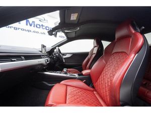 19in Alloy Wheels - 5-Parallel Spoke Design,Brake Calipers - Red,Door Mirrors - Folding with Auto-Dimming and Memory Function,Privacy Glass,Audi Virtual Cockpit,Fine Nappa Leather - S Super Sport Seats - S Embossed - Magma Red,Flat-Bottomed 3-Spoke Leather High Multi-Function Steering Wheel, 19in Alloy Wheels - 5-Spoke Cavo Design - Contrasting Grey - Partly Polished, 2 x SDXC Card Readers, 2 x USB Charging Ports and 1 x AUX-IN, 4-Way Electric Lumbar Support, 6-Airbag System, Aluminium-Effect Door Mirror Housings, Anti Theft Locking Wheel Bolts, Anti-Theft Alarm, Audi Connect Infotainment Services - 3 Month Trial, Audi Connect Safety and Service - e-call, Audi Drive Select, Audi Smartphone Interface, Audi Sound System, Auto-Dimming Rear-View Mirror, Bluetooth Interface, Brake Calipers Painted in Black with S5 Logo at the Front, CD Drive, Cloth Headlining in Black, Cruise Control with Speed Limiter, DAB Digital Radio Reception, Deluxe 3-Zone Electronic Climate Control, Door Handles - Chrome Inserts, Door Mirrors - Electrically Adjustable and Heated with Built-in LED Indicators, Driver and Front Passenger Airbag with Front Passenger Airbag Deactivation, Driver Information System - 7in Colour Display, Electric Boot Lid Release, Electric Windows - Front, Electrically Adjustable Front Seats, Electromechanical Parking Brake, Electromechanical Power Steering, ESC - Electronic Stabilisation Control inc ABS - ASR and EDL, Extended Interior Upholstery Pack, First Aid Kit and Warning Triangle, Fixed Rear Seat Bench with Storage Tray in Seat, Front and Rear Floor Mats, Front Centre Armrest, Gear-lever Knob in Black Leather, Gear-lever with Diamond S Badge, Headlight Washers, Heated Front Seats, Heat-Insulating Glass - Side and Rear Windows, High Gloss Package, High Multi-Function 3-Spoke Leather Steering Wheel, High-Beam Assist, Illuminated Door Sill Trims with S Logo, Inlays - Matt Brushed Aluminium, ISOFIX Child Seat Mounting and Top Tether, Key with S5 Logo, Keyless Go, Leather Door Armrests and Knee Pad, LED Headlights with LED Rear Lights and Dynamic Rear Indicators, LED Interior Light Package, Light and Rain Sensor, Luggage Compartment Mat, Lumbar Support - Pneumatically Adjustable with Massage Function, MMI Navigation Plus, MMI Radio Plus with 7in Colour MMI Screen, MMI Touch Control Panel, Model and Engine Technology Badges at Rear, Multi Collision Brake Assist, Non-Smoking Package, Parking System Plus, Pedals and Footrest - Stainless Steel, Pop-Up Bonnet for Pedestrian Protection, Pre-Sense City, Rear Grille - Black Grained, Rear Spoiler, Remote Central Locking, S Instrument Dials, S Model Enhanced Braking System, S Radiator Grille in Twilight Grey - Matt with Dual Struts in Aluminium, S Rear Diffuser in Twilight Grey - Matt with Diffuser Trim in Matt Aluminium and Honeycomb Grill in Black, S Specific Air Inlet Horizontal Inlay in Matt Aluminium, S Specific Air Inlets in Titan Black - Matt, S Specific Dual-Branch Chrome Tailpipes with Twin Oval Pipes Each on Left and Right, S Specific Front and Rear Bumpers, S Sport Suspension, S5 Badges on Grille - Front Wing Panels and Rear, Seat Belt Monitoring, Space Saver Spare Wheel, Sun Visors including Vanity Mirrors, Tool Kit and Car Jack, Tyre Pressure Warning Light, Variable Restraint System, Voice Control System, Windscreen with Acoustic Glazing