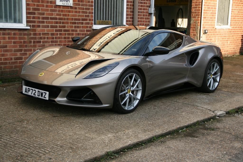 Lotus Emira 3.5 V6 first edition finished in nimbus grey with black leather and alcantara upholstery. Only 7000 miles with Lotus history and owner from new. Spec'd with sports suspension, full PPF, Lotus driver pack, black pack, Lotus tracker, privacy glass, convenience pack and premium carpet mats.