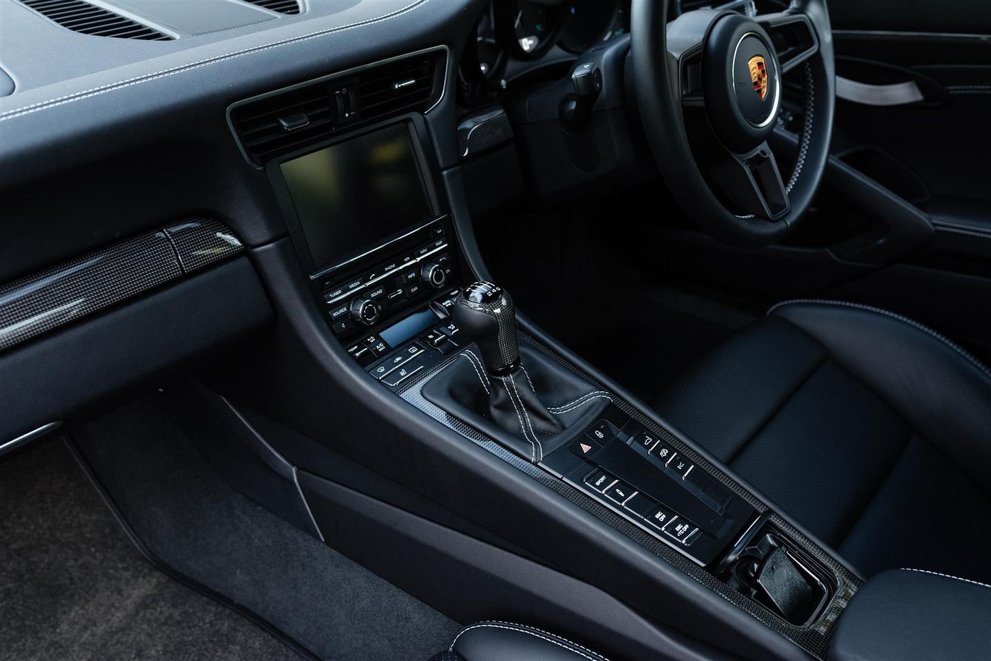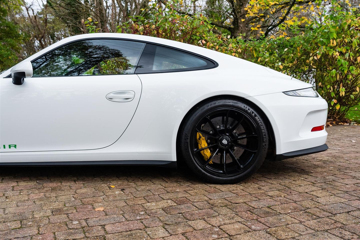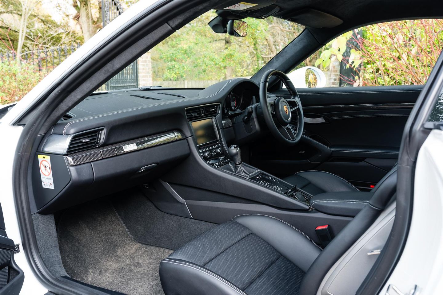 Supplied new via Porsche Centre Reading finished in Grand Prix White over black leather interior and fitted with the following options; 20" high-gloss black GT3 wheels, front axle lift system, single-mass flywheel, BOSE sound system, 18-way electric adaptive sports seats, PCM with navigation, mobile phone Bluetooth, darkened LED lights with dynamic cornering lights, adjustable and heated seats, interior light package, DAB radio, green stripes, automatic dimming mirrors with rain sensors, clear taillights, PCCB, Bi-Xenon headlights and rear wheel steering.
