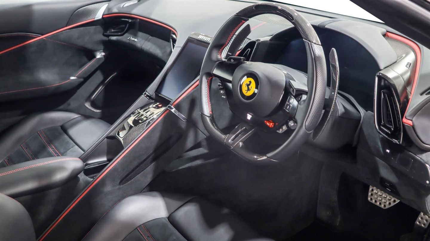 Rosso Corsa Brake Callipers,Carbon Fibre Rear Diffuser,Carbon Fibre Under Door Trim,Carbon Fibre Exterior Kickplate,Carbon Fibre Central Tunnel,Black Ceramic Tailpipes,Carbon Fibre Front Spoiler,Carbon Fibre Steering Wheel+LEDS,Scuderia Wing Badges,Passenger Display,20" Alloys In Matte Grigio,Full Electric Seats,Alcantara Seat Centres,Bordeaux Inner Details,Daytona Style Seats,Bordeaux Contrast Stitching,Apple CarPlay,Magneride Dual Mode Suspension,Rear Parking Camera,Folding Back Seats