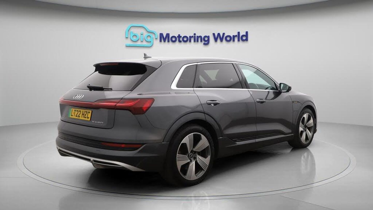 FREE £750 towards your finance-Our Audi e-tron is finished in Grey. Specification includes a range of fantastic features including FREE £750 towards your finance Deposit, All Wheel Drive, 21'' Alloy Wheels, Leather Seats, Air Suspension, Electric Seats, Bang & Olufsen Speakers, Lane Assist, S Line Body Styling, Satellite Navigation Specification information is supplied by CAPHPI and may vary to the actual car. This data does not form any part of a buying contact. Please check specification prior to purchase in-store. The MOT is valid until November 2026, visit bigmotoringworld.co.uk for more photos, a 360 tour, service history and a free HPI report.Were BIG on peace of mind and this Grey Audi e-tron has completed our comprehensive 200 point inspection and passed all checks. Its ready for you to drive away with immediate collection in-store. We include a 90-day warranty as standard plus an option to extend for up to 3 years.Reserve this car exclusively for you, safely and securely at bigmotoringworld.co.uk, with a fully refundable £99 deposit. Test drive before you buy, with no commitment, no hassle and a completely haggle free experience. Still searching and want to see thousands more cars? We are BIG on choice with over 8000 cars to choose from.Visit our award winning web site bigmotoringworld.co.uk.Were Big Motoring World and were BIG on what matters to you.