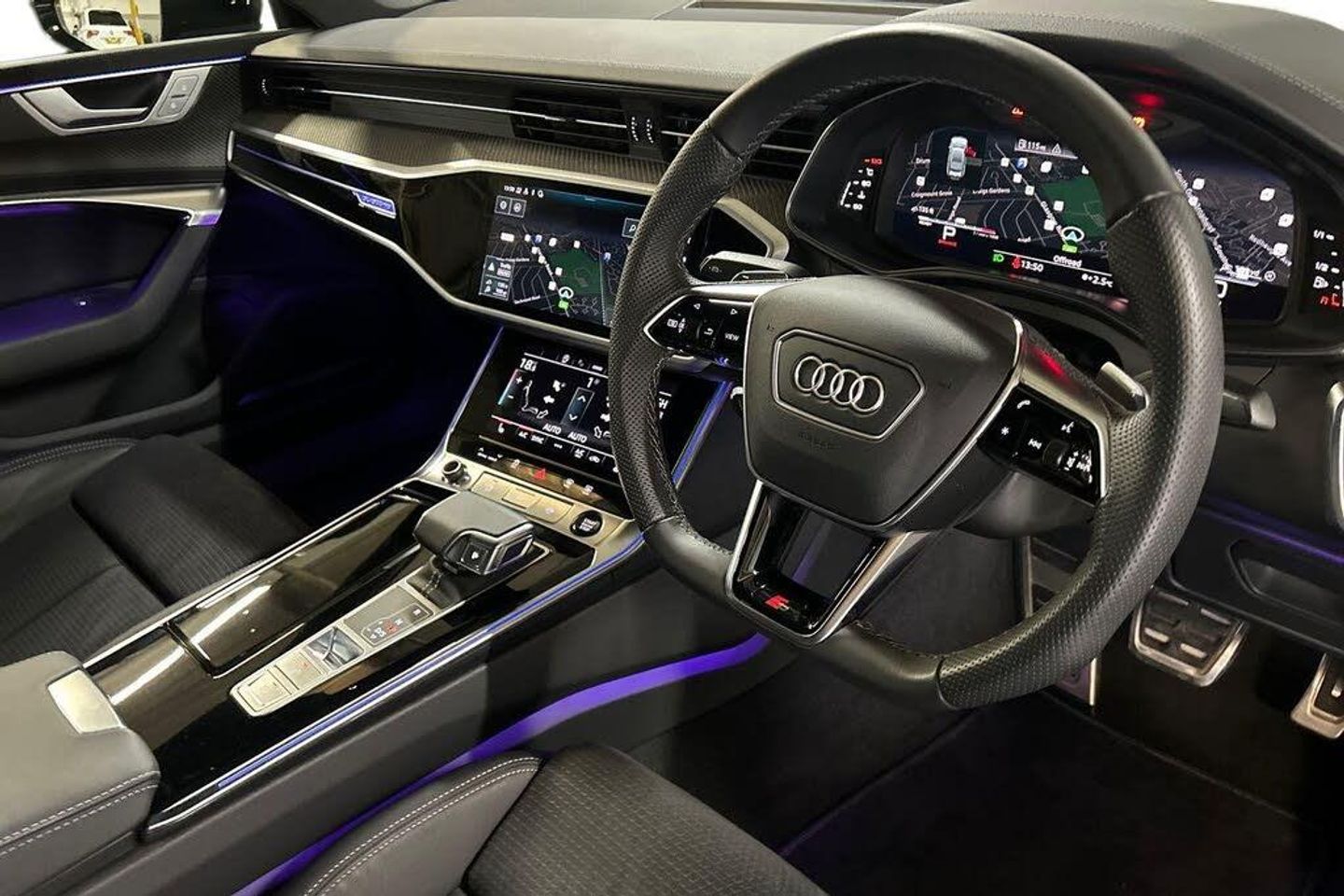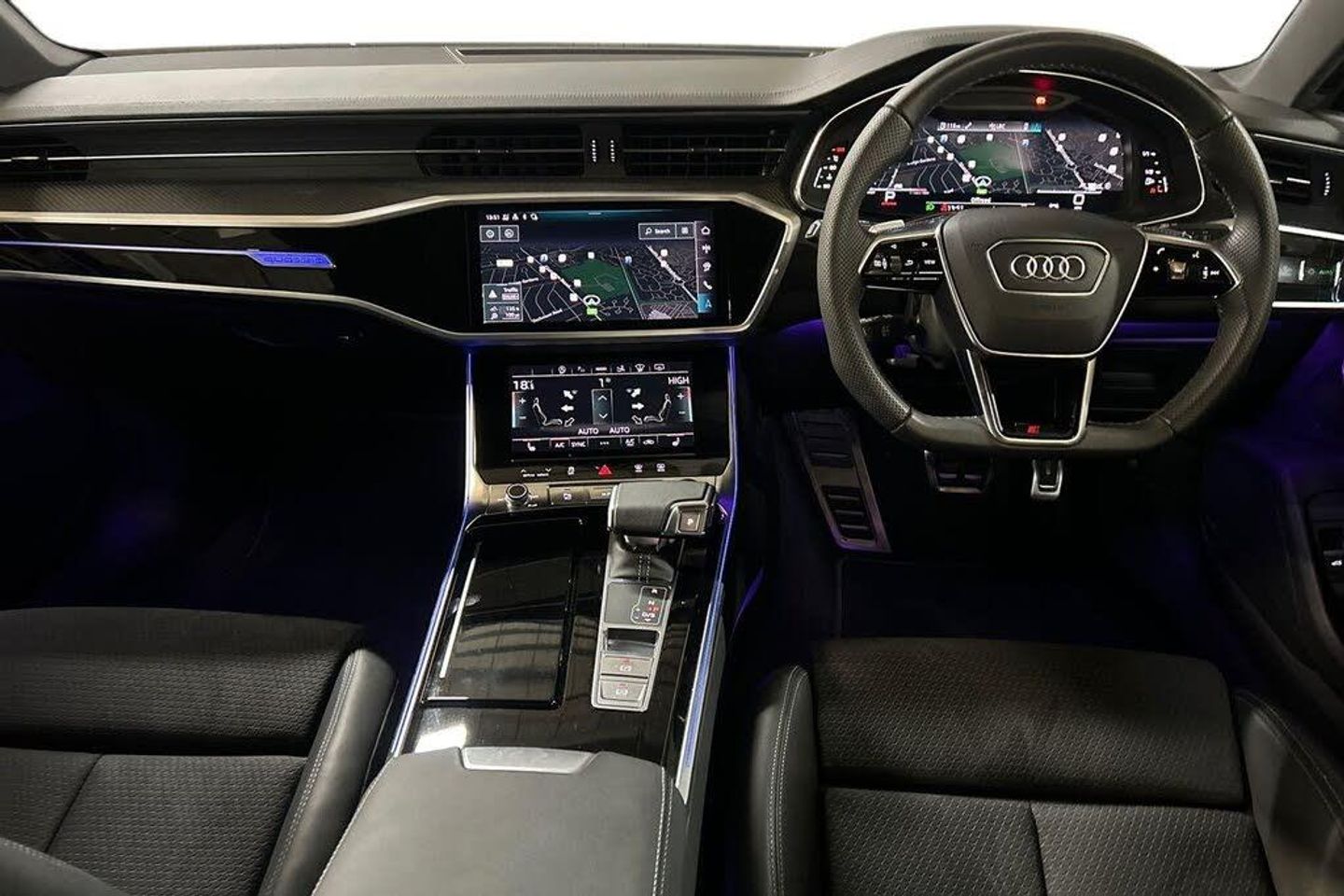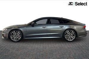 Audi connect safety and service (e-call), Audi connect with Amazon Alexa Integration, Audi drive select, Audi parking system plus - acoustic and visual park assist system for front and rear, Audi virtual cockpit, Automatic start/stop system with coasting functionality, Bluetooth interface, Camera based traffic sign recognition, Colour driver's information system display, Lane departure warning system, MMI nav plus with MMI touch + 10.1" and 8.6" HD haptic touch screen/3D city models/country information/online map/route info and personal route assist, Operating buttons in black, glass look with haptic feedback, Progressive steering, Rear view camera, Service indicator, Smartphone interface includes wireless Apple carplay/Android Auto, Voice control system, Quattro on demand, Sports suspension, Audi music interface, Audi sound system with 6 channel amplifier, 180 watt amplifying capacity and 10 loudspeakers including subwoofer, Auxiliary input socket, DAB digital radio module, Audi beam, Audi rings, front and rear as well as A7 at the rear in black, Black rear diffuser with chrome inlays, Electrically adjustable heated and folding + automatically dimming exterior mirrors with memory function, Frameless auto dimming interior rear view mirror, Front and rear electric windows, Gloss black highlights on the exterior area of the Audi Single frame, Gloss black highlights on the front and rear bumpers, Gloss black highlights on the radiator grille, Gloss black highlights on the side windows trim strips, HD Matrix LED headlights, Heat insulating darkened glass in side and rear windows, LED rear lights with dynamic indicators, Omission of output/technology badging, Privacy glass with side and rear windows, Rain and light sensors, Rear side wing doors, Rear wiper, Retractable rear boot spoiler, S air inlet in titanium anthracite black, Signature LED daytime running lights, Towbar preparation, Windscreen with heat-insulating glass, 2 zone deluxe electronic climate control, 4-way electric lumbar support, 40/20/40 split folding 3 seater rear seat bench with rear centre armrest, Audi phone box light, Black cloth headlining, Electrically adjustable front seats - driver seat with memory, Front and rear headrests, Front centre armrest, Heated front seats, Height/reach adjust steering wheel, Illuminated door sill trims with S logo, Illuminated sun visors with vanity mirrors, ISOFIX child seat mounting and top tether in front and outer rear seats with front passenger airbag deactivation, Leather gear knob, Leatherette upper instrument panel and door shoulders, Luggage compartment lid, electrically opening and closing, S line front and rear floor mats with contrast stitching, Single front passenger seat, Stainless steel pedals and foot rest, LED interior ambient lighting pack - A7, Non smoking pack - A7, 3 point seatbelts on all seats, Audi pre-sense front, Driver and passenger airbags, Electromechanical parking brake, Electronic stabilisation control including ABS, ASR and EDL, Extended pedestrian protection measures, Hill hold assist, Manual child lock in rear doors, Seatbelt monitoring, Tyre pressure warning light, Warning triangle and first aid kit, Anti theft alarm with tow away protection, Anti-theft wheel bolts and wheel loosening detection, Immobiliser, Keyless Go, Preparation for tracking system, Remote central locking, Carbon twill inlays, 20" 5 segment spoke evo style Audi sport black matte diamond turned alloy wheels, Tool kit