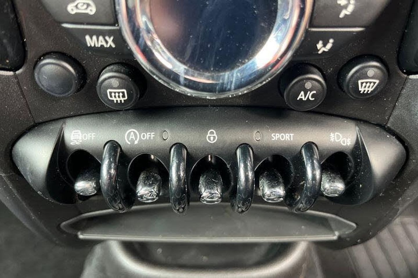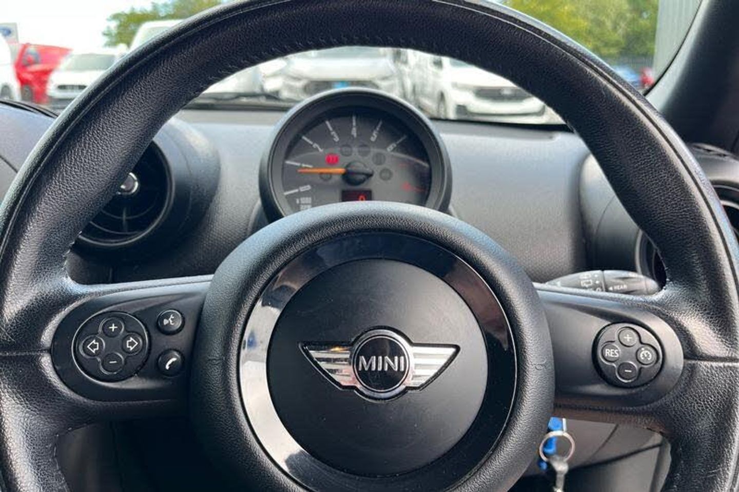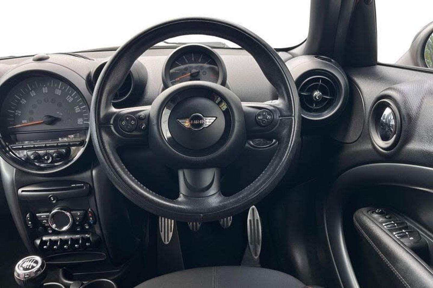 Brake fluid level warning light, Brake pad wear indicator warning light, DTC - Dynamic traction control, Electric power steering, Engine start/stop button, Exterior temperature gauge, Oil level indicator, Rear park distance control, Run flat indicator, Service interval indicator, Sports button, Anthracite roof rails, Anti dazzle mirror, Body colour bumpers, Body coloured air scoops, Chrome bezels around rear lights and headlights, Chrome door handles, Chrome exhaust tailpipes, Chrome plated trim on bottom edge of window, Chrome-plated radiator grille surround, Electric front and rear windows + anti trap + one touch, Electrically adjustable door mirrors, Follow me home headlights, Heated door mirrors/heated windscreen washers, Heated rear window with automatic switch off, Honeycomb radiator grille, Metal look door sill finishers, Rear wiper, Roof spoiler in roof colour, White indicator lights, 2 cupholders in front centre console, 3 rear seats, 3 spoke sport leather steering wheel, 4 lashing points to secure luggage, 60/40 split sliding rear seats, Adjustable headrests, Boot light, Centre console storage, Chrome interior door handles, Driver's seat height adjuster, Driver/passenger sunvisors, Front reading lights, Front seat backrest storage nets, Front sports seats, Gear knob with chrome ring, Gear/selector and handbrake in artificial leather, Height/reach adjustable steering column, Interior light, Isofix child seat preparation, MINI centre rail, Rear grab handles, Side sunvisor for driver, Stainless steel foot rest, Stainless steel pedals, Storage compartments in doors, Vanity mirrors, 3-point rear centre seat belt, ABS, Automatic Stability Control (ASC), Cornering brake control (CBC), Crash Sensor - activates hazard/interior lighting + unlocks doors, Driver and passenger airbags, Driver and passenger side airbags, DSC - Dynamic Stability Control, Electronic brake force distribution, Front head airbags, Front seatbelt pretensioners with force limiters, Hill start assist, Passenger airbag deactivation system, Tyre pressure warning