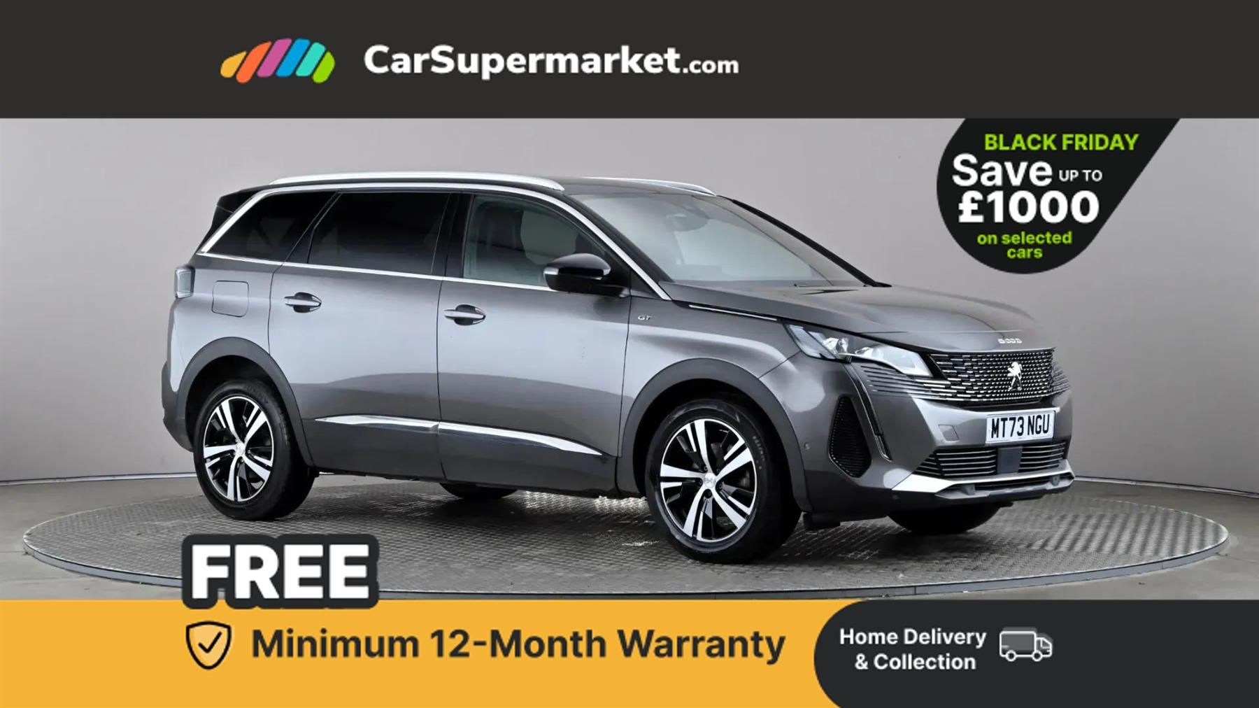 Sat Nav, Android Auto, Apple CarPlay, Bluetooth, Traffic Sign Recognition, Parking Sensors, Lane Departure Warning, Peugeot i-Cockpit;This 2023 Peugeot 5008 PureTech GT is a good example, having just one owner since new. This seven seater SUV boasts a Euro 6 compliant 1.2 litre petrol engine and comes with an MOT valid until September 2026, offering peace of mind. Its vehicle history check is clear, and it was last serviced on 26th July 2025 at 41,869 miles. Notable features include Full LED Headlights with Fog Mode for superior visibility, the convenient PEUGEOT Open and Go System for keyless entry, and Front and Rear Parking Sensors to aid manoeuvrability.