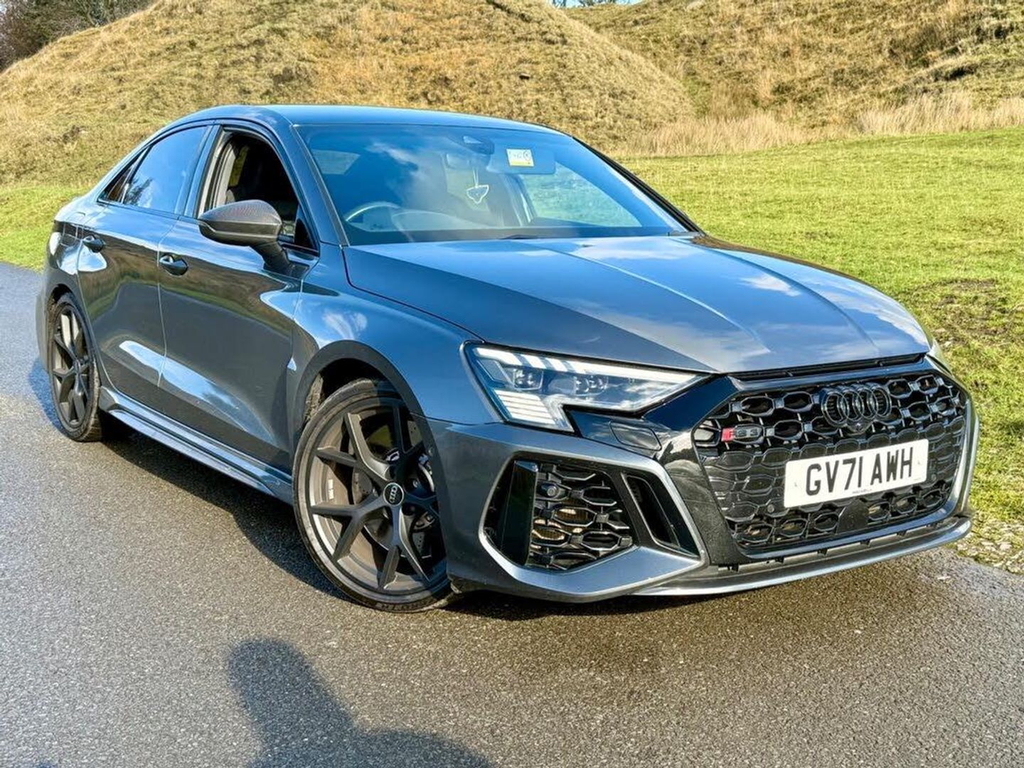 HPI cat NThis 2022 Audi RS3 TFSI Carbon Black offers an exhilarating driving experience with its potent 2.5 litre petrol engine and four wheel drive system. As a Euro 6 compliant vehicle, it balances performance with modern emissions standards. The Carbon Black trim level signifies a premium specification, enhanced by the inclusion of the Driver Assistance Package, which features adaptive cruise control for effortless long journeys. Comfort and convenience are further elevated by the Comfort and Sound Package, providing keyless entry, a luxury branded sound system, and a rear camera for parking assistance. The Audi Smartphone Interface ensures seamless connectivity with Android Auto, while the Parking Assist system, complete with front and rear sensors, makes manoeuvring in tight spaces straightforward. Automatic headlights, activated by the light and rain sensor, add to the sophisticated feel of this already impressive vehicle.The performance of this Audi RS3 is truly exceptional, capable of accelerating from 0 to 62 miles per hour in a remarkable 3.8 seconds. This rapid acceleration demonstrates how this vehicle surpasses many others in its class, offering a level of dynamic capability that is sure to impress. The combination of its powerful engine, advanced drivetrain, and comprehensive feature set makes this 2022 Audi RS3 TFSI Carbon Black a standout choice for those seeking a premium performance car with a wealth of technology and comfort.-B&O-Camera-Matrix Lights- Nav-VIEWING BY APPOINTMENT ONLY, For More images please visit www.evmsportsandprestige.co.uk 07891961845
