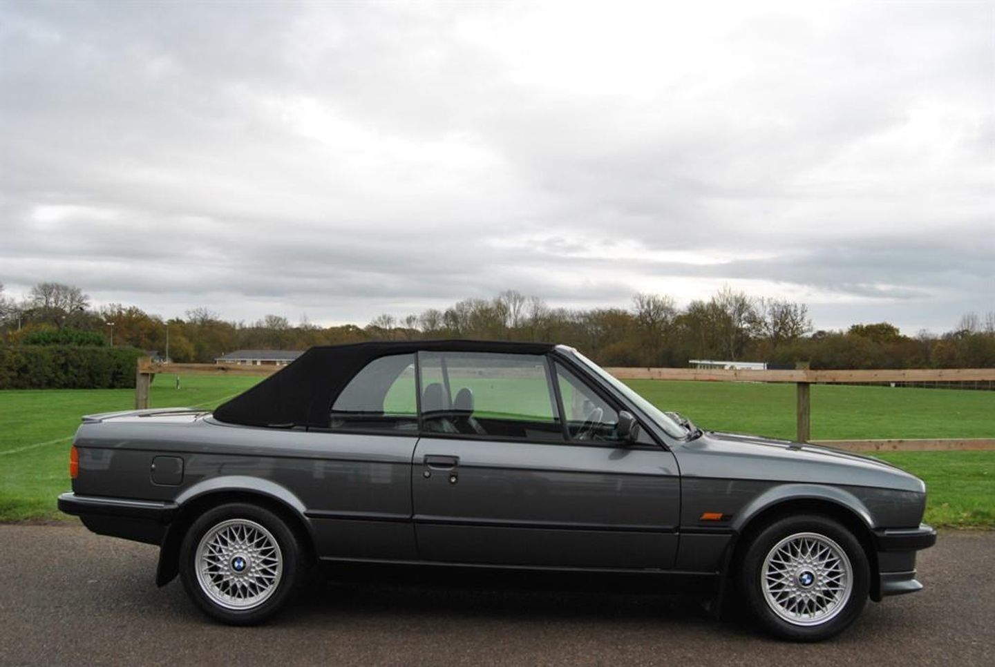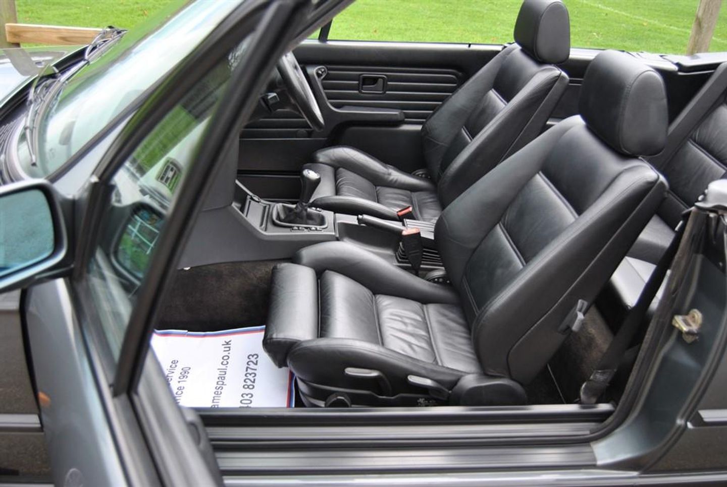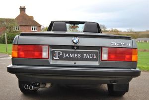 Here we have an outstanding example of this beautifully built 1990 E30 325i Manual Convertible finished in Dolphin Grey Metallic with Black Leather Sport Seats. Supplied new by Godfrey Hall LTD BMW on the 28th of October 1990. This vehicle comes along with a large history file including the original service book / book packs and the original bill of sale from new and even wearing its original Godfrey Hall BMW number plates ! Prior to sale this car will have a pre delivery inspection through our workshop including a full service, Cambelt replacement and a fresh MOT. Leather-covered sport sport wheel 380 mm BMW light alloy wheel, cross spoke 29 Dechromed Black leather Sport seats Shadow-Line Therm insulated glass green Hardtop-preparation Warning triangle and first aid kit Headrests mechanically adjustable, rear On-board computer II with remote control Great Britain/Ireland version A truly outstanding example that not only represents itself remarkably well cosmetically inside and out but also drives beautifully on the road. A great opportunity to purchase this usable and reliable modern classic with examples such as this becoming hard to duplicate. James Paul Car Sales is a family run business in a small village of Bucks Green conveniently situated on the Surrey and Sussex border. Established for over 35 years every car we offer is carefully hand selected and will come with a comprehensive provenance check. All of our vehicles are subject to a thorough pre delivery inspection through our workshops including a fresh MOT and service where required. Please ask us about our extremely competitive finance packages or Visit our website www.jamespaul.co.uk to create your own Finance Quote and Apply to help you fund your new car. Part exchanges welcome either way if you are looking to trade up or down.
