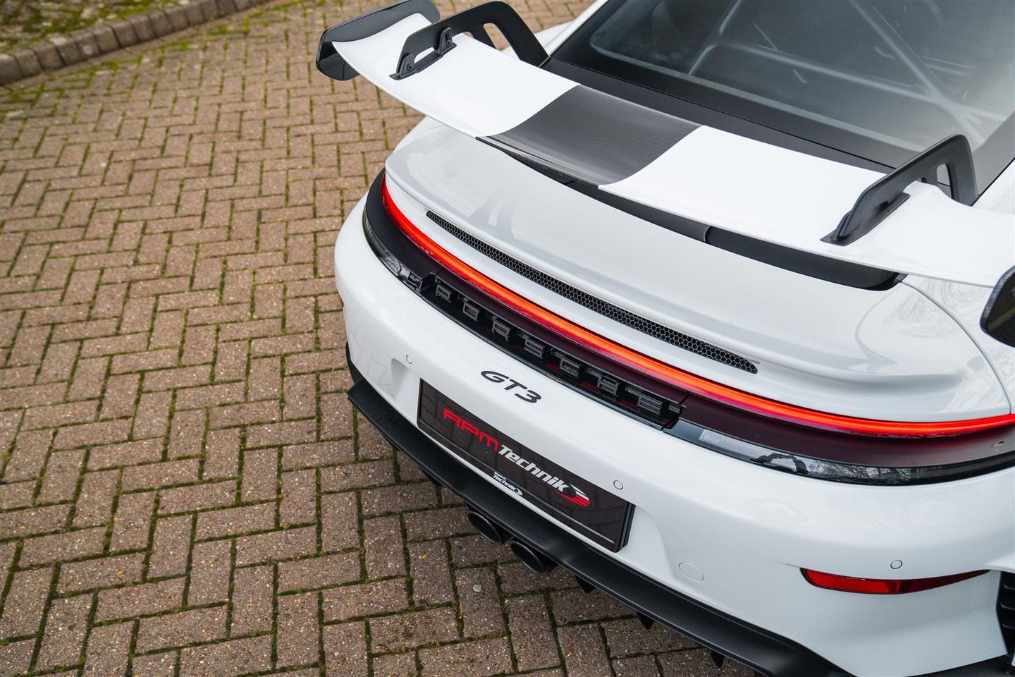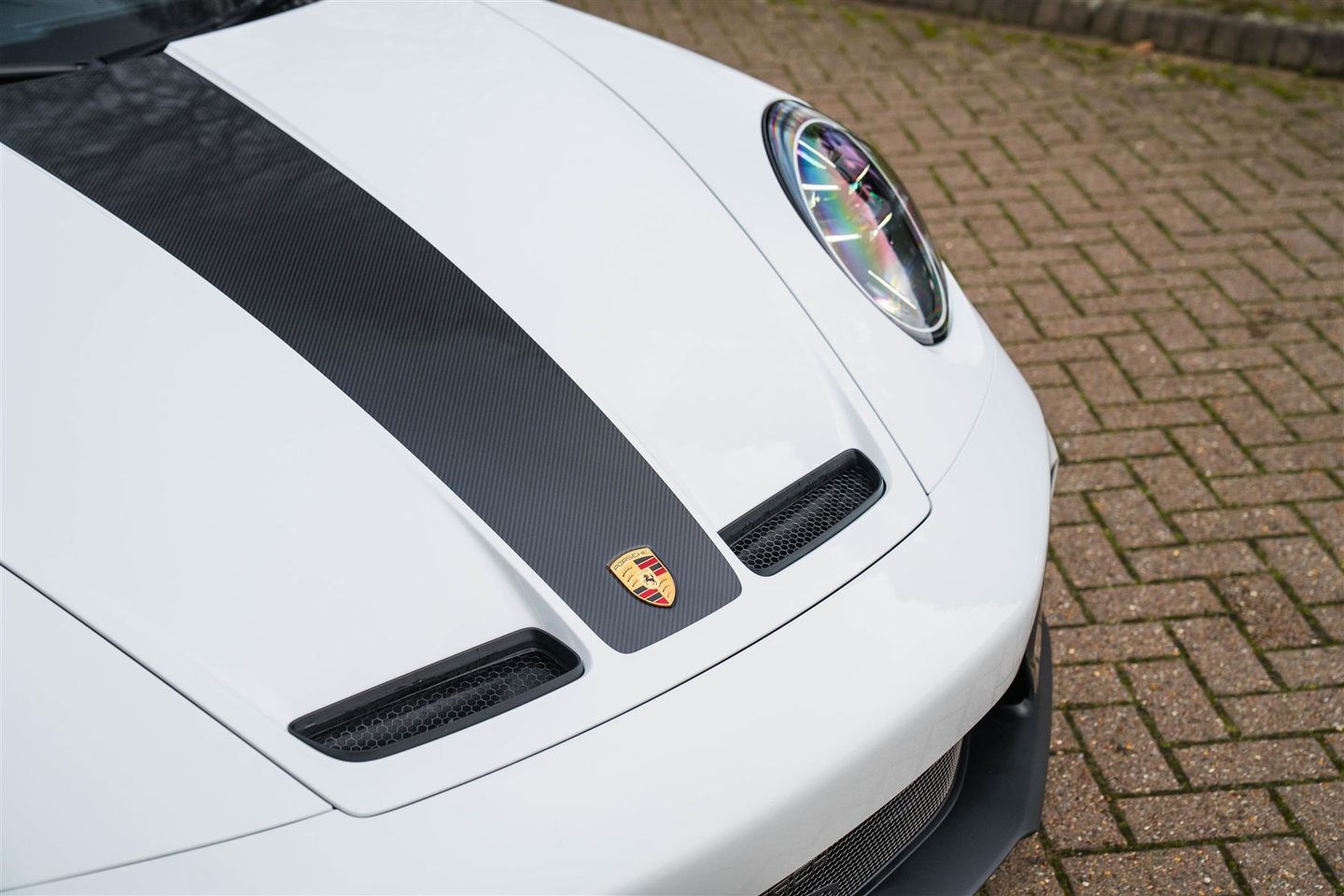 Carrara white, Weissach package, Clubsport package, PCCB’s (Porsche Carbon Composite Brakes), Front axle lift, Folding carbon bucket seats with heating, Tinted HD matrix headlights, Sun visors in racetex, Rear park assist, BOSE sound system, Seat belts in silver grey, Keys in leather with leather case, Light design package, Wheels painted in dark silver.
