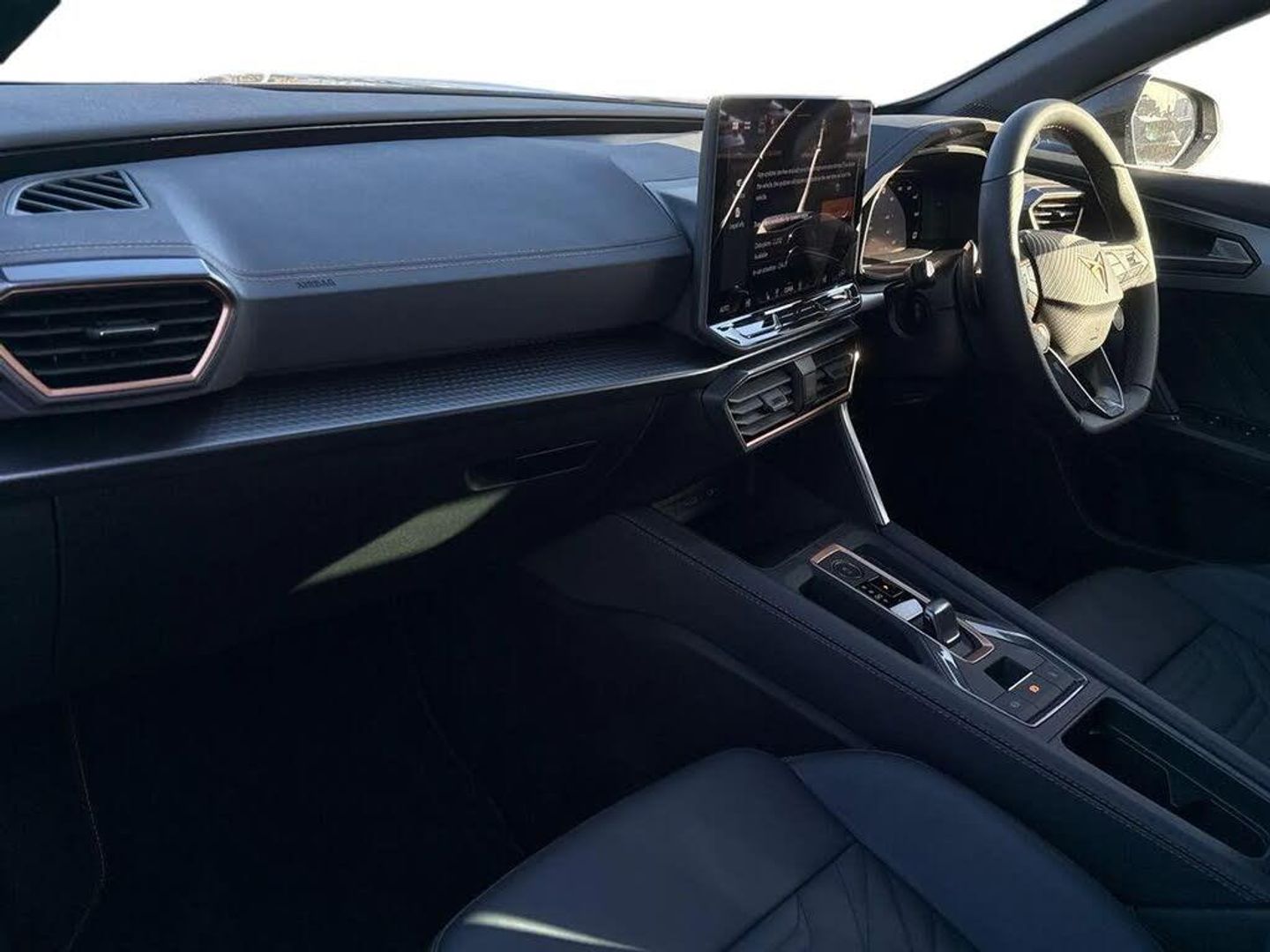 Electric front/rear windows,Rain sensing wipers,Rear wash/wipe,Tinted rear windows,CUPRA sport suspension,Body colour door handles,Body coloured bumpers,Gloss black roof rails and window surrounds,Rear diffuser with black simulated exhaust pipes,Rear side wing doors,Daytime running light with automatic headlight control and coming home feature,Door panel ambient lighting,Dynamic headlight range control,High beam assist,LED 3rd brake light,LED front fog lamps with cornering function,LED Headlights,LED Taillights with dynamic indicator,Rear fog lights,Welcome lights (within exterior mirror housing),ABS,Brake control system - ESC and brake booster,Electronic parking brake,Front and rear disc brakes,Hill hold control,Adaptive cruise control with follow-to-stop and speed limiter,Advanced driver alert system,Advanced lane assist with semi-automatic vehicle control in a medical emergency and traffic jam assist,Driving profile selection,Dynamic road sign display,Forward collision warning with automatic braking,Front cross traffic assist,Intelligent park assist,Progressive steering,Side and exit assist,Top view camera,Auto dimming rear view mirror,Dark grey wing mirror,Electrically adjustable heated and folding door mirrors with memory function,3 point seatbelts on all rear seats,Child proof door locks,Driver and front passenger airbags with front passenger airbag de-activation,Front side curtain airbags,Pre-crash front and rear seat belt tensioner,window closure and hazard lights,Public e-call,Seat belt reminder for front and rear seats,Tyre pressure monitoring system,Voice control system,Wired Android Auto,Wireless apple carplay,2 front and 2 rear USB type C sockets,Media system with navigation,12.9" touchscreen display,voice control,DAB,steering wheel mounted controls,Start/stop system with regenerative braking,Virtual pedal and electric tailgate,Wireless phone charger,10.25" digital cockpit and configurable dashboard,Emergency steering support with turn assist,Full link phone integration,RPM,trip computer,outside temp gauge,instrument light brightness,low fuel warning light,lights on reminder,gearshift indicator,Service interval indicator,Copper and aluminium interior detailing,3 seat bench in 2nd row,60/40 split rear bench seat with armrest and mechanical seat release,Electrically adjustable front seats with lumbar support and memory function,Front and rear head restraints,Heated front seats,Isofix,Single front passenger seat,Dust/pollen filter,Three zone climate control with control panel in rear,12V socket,Black headlining,Black interior roof lining,Cupra sports pedals,Front centre armrest,Heated supersports multifunction leather steering wheel with satellite buttons and gear shift paddles,Height/reach adjust steering wheel,Illuminated aluminium doorsteps,Illuminated interior front door sills,Leather dashboard,door insert and side trim panel,PVC/Leather upholstery,Satellite steering wheel,Storage pockets on rear of front seats,Variable luggage/load compartment floor,2 front and 2 rear reading lights,LED smart wraparound lighting,Electronic locking differential and dynamic traction support,Illuminated sunvisor with mirror,Anti theft alarm system,KESSY Advanced - Keyless start,keyless entry with SAFELOCK,Locking wheel bolts,Warranty - 5 years/90,000 miles