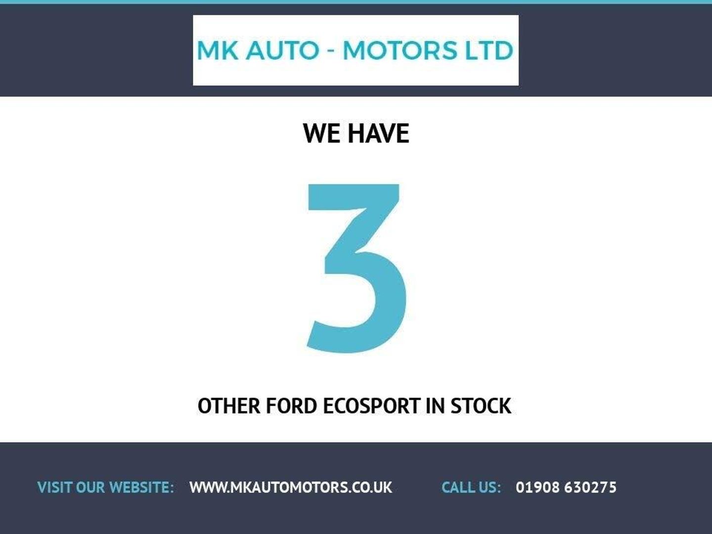 GOOD SERVICE HISTORY 2 FORMER KEEPERS 2 KEYS 12 MONTHS MOT HERE AT MK AUTO MOTORS WE WELCOME THIS FORD ECOSPORT. IT COMES WITH HEATED HALF LEATHER SEATS, REAR PARKING SENSORS, CRUISE CONTROL AIR CONDITIONING, BLUETOOTH, AND 17" ALLOY WHEELS. BOOK YOUR TEST DRIVE TODAY!