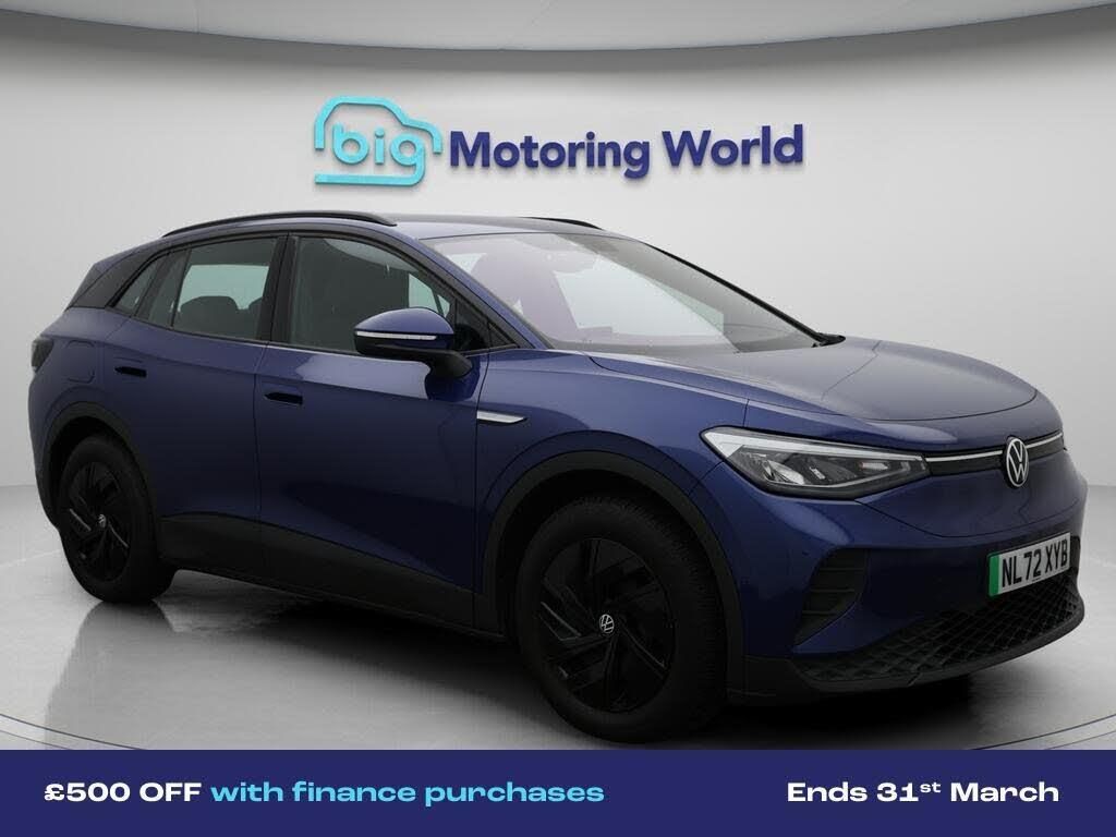 £500 towards your finance depo-Our Volkswagen ID.4 comes with optional extras worth £685. Specification includes a range of fantastic features including £500 towards your finance deposit, Comfort Pack, Part Leather Seats, Apple CarPlay, Adaptive Cruise Control, Android Auto, Satellite Navigation, Heated Seats, Rear View Camera, Heated Steering Wheel Specification information is supplied by CAPHPI and may vary to the actual car. This data does not form any part of a buying contact. Please check specification prior to purchase in-store. The MOT is valid until October 2026, visit bigmotoringworld.co.uk for more photos, a 360 tour, service history and a free HPI report.Were BIG on peace of mind and this Blue Volkswagen ID.4 has completed our comprehensive 200 point inspection and passed all checks. Its ready for you to drive away with immediate collection in-store. We include a 90-day warranty as standard plus an option to extend for up to 3 years.Reserve this car exclusively for you, safely and securely at bigmotoringworld.co.uk, with a fully refundable £99 deposit. Test drive before you buy, with no commitment, no hassle and a completely haggle free experience. Still searching and want to see thousands more cars? We are BIG on choice with over 8000 cars to choose from.Visit our award winning web site bigmotoringworld.co.uk.Were Big Motoring World and were BIG on what matters to you.