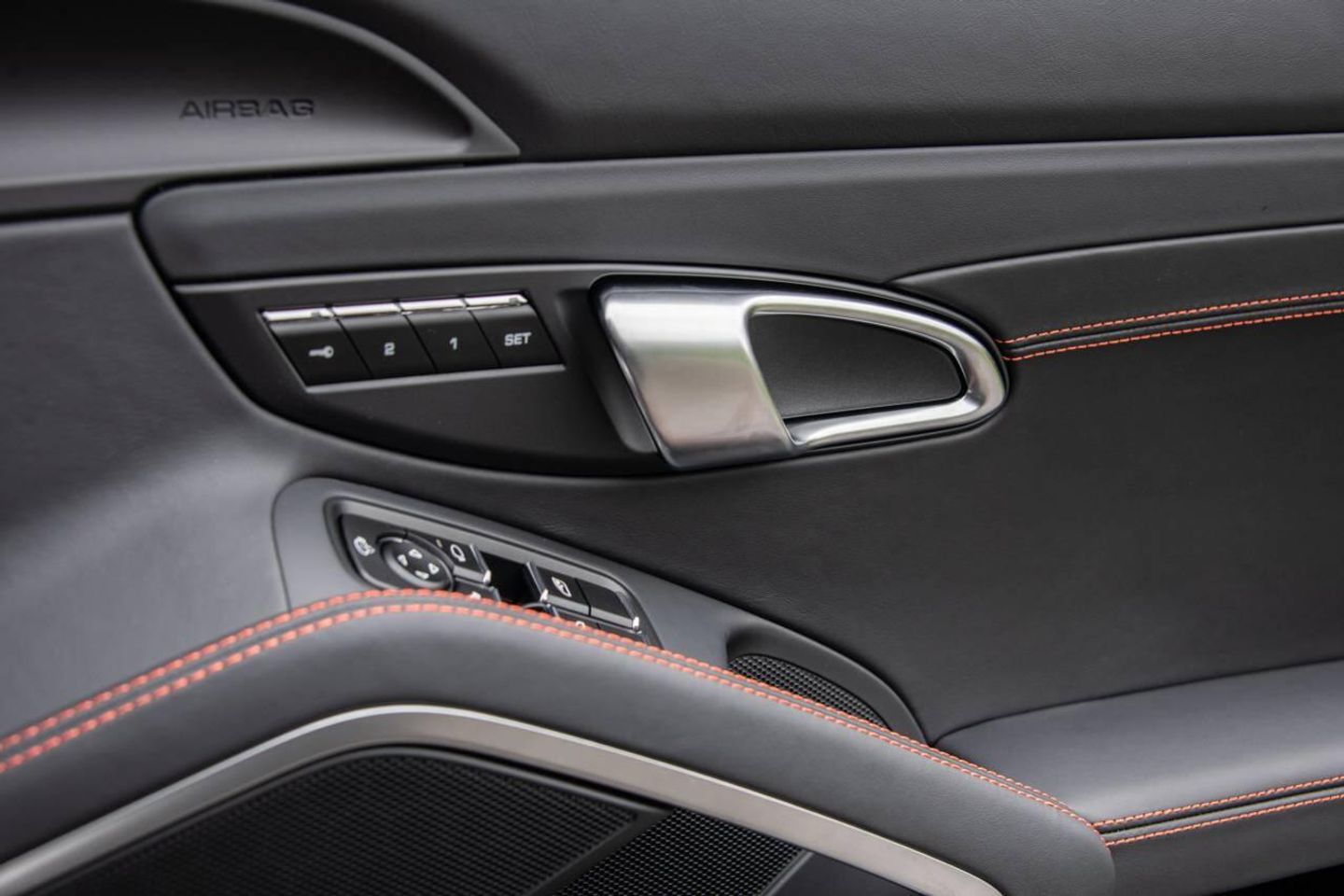 - Dashboard trim package leather with coloured decorative stitching - Lava Orange