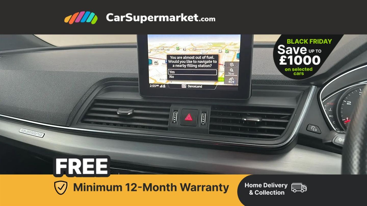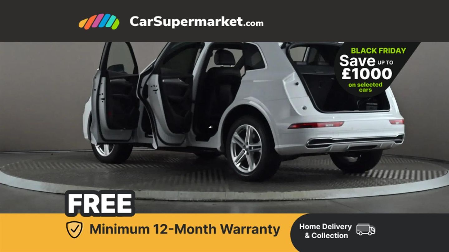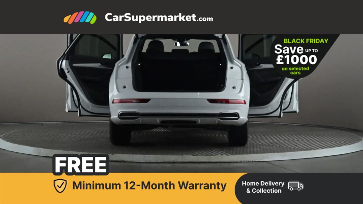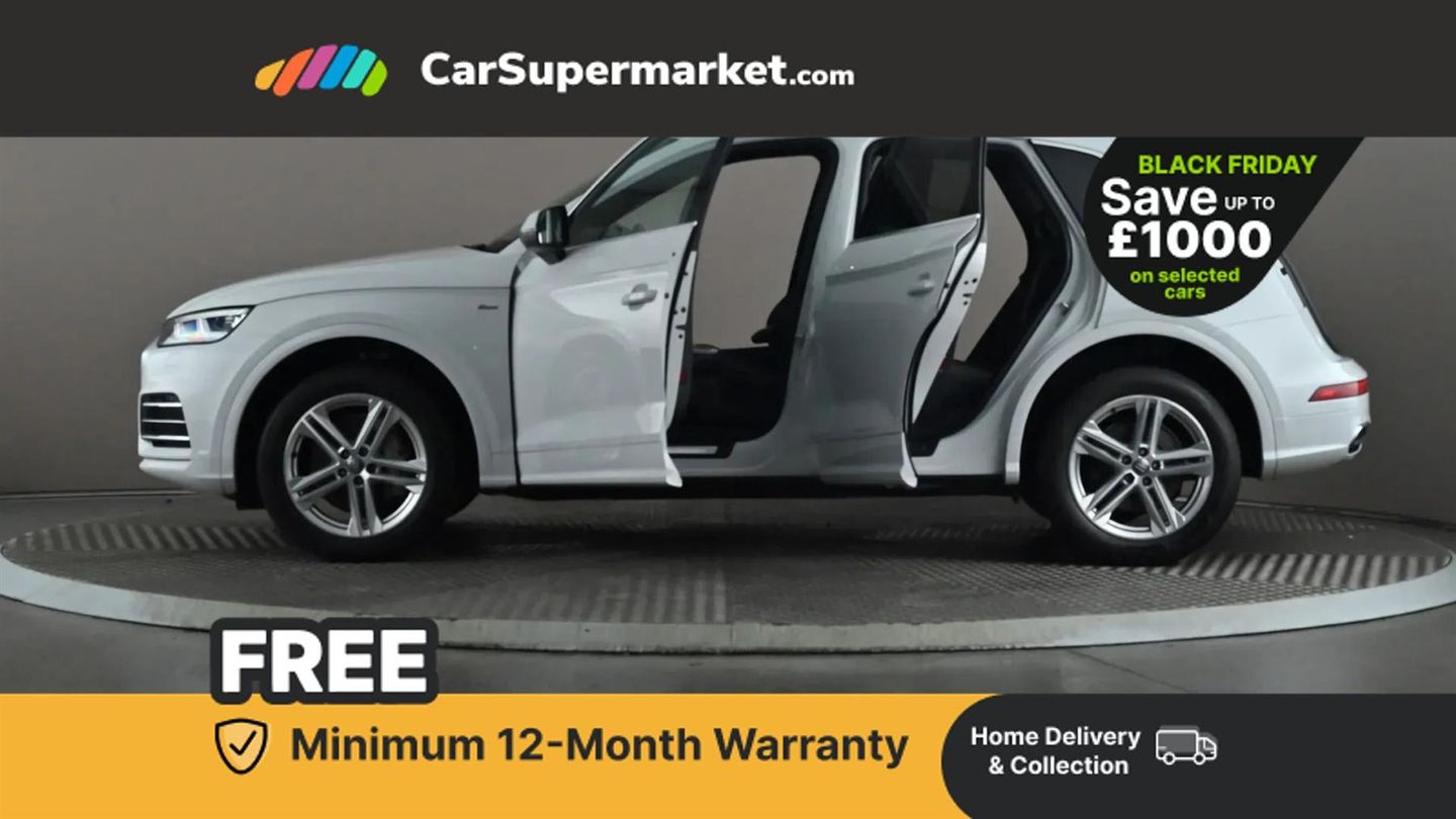 7" Colour driver information system,Audi connect safety and service (e-call),Audi drive select,Audi parking system plus with front and rear sensors,Audi Pre sense collision avoidance,Audi smartphone interface,Automatic start-stop system with coasting functionality and efficiency programme,Cruise control + speed limiter,Electro - mechanical power assisted steering,MMI Navigation,Mobile telephone preparation - bluetooth interface,Power tailgate,Service interval indicator,Voice control system,Diesel particulate filter,Dynamic suspension,Quattro on demand,2 x USB charging port with aux input socket,2x SD card slot,CD player,DAB Digital radio,MMI radio plus with 7" colour MMI screen and MMI controller,Acoustic windscreen,Air inlets in matt titanium black with blades in matt aluminium silver,Aluminium roof rails,Auto dimming rear view mirror,Automatic headlight levelling,Body colour bumpers,Body colour door mirrors,Body colour rear diffuser with matt aluminium silver surrounds,Body colour S Line side skirts,Body colour underbody protection,Chrome exhaust tailpipe,Electric adjustable/heated/folding door mirrors,Front and rear electric windows,High beam assistant,LED headlights with LED rear lights + dynamic rear indicators,Light and rain sensor for auto activation of lights and windscreen wipers,Loading sill protector in stainless steel,Privacy glass with front acoustic glazing,Rear wiper,S front and rear bumpers,S Line badges on the front wings,S Line rear spoiler,Twilight grey matt radiator grille with matt aluminium horizontal chrome struts,3 rear headrests,40:20:40 split folding rear seat with rear centre armrest,Black cloth headlining,Contrast stitching on seats, steering wheel and gear lever gaiter,Deluxe 3 zone electronic climate control,Front centre armrest,Front sport seats with S embossed logo,Front/rear floor mats,Heated front seats,Height adjustable front head restraints,Height/reach adjustable steering column,Illuminated door sill trims with S logo,ISOFIX child seat mounting and top tether,Luggage compartment carpet,Manual seat adjustment with 4-way electric lumbar support,Perforated leather gearknob,Removable luggage compartment floor,Stainless steel pedals,Sunvisors with vanity mirrors,Trunk roller cover,High gloss pack - Q5,LED interior light pack - Q5,Non Smokers pack,3 point seatbelts on all seats,6 airbags - Driver, front passenger, curtain and side airbags,Electromechanical parking brake,Electronic stabilisation control including ABS, ASR and EDL,Front passenger airbag deactivation,Hill descent control,Hill hold assist,Multi collision brake assist,Pop-up bonnet for pedestrian protection,Pre sense city,Seat belt force limiter,Seatbelt monitoring,Tyre pressure warning,Warning triangle and first aid kit,Anti theft alarm,Anti-theft wheel bolts,Keyless Go access/ignition system,Remote central locking,Matt brushed aluminium inlays,Tool kit,24-litre AdBlue Tank and 70-litre Fuel Tank,Glacier White