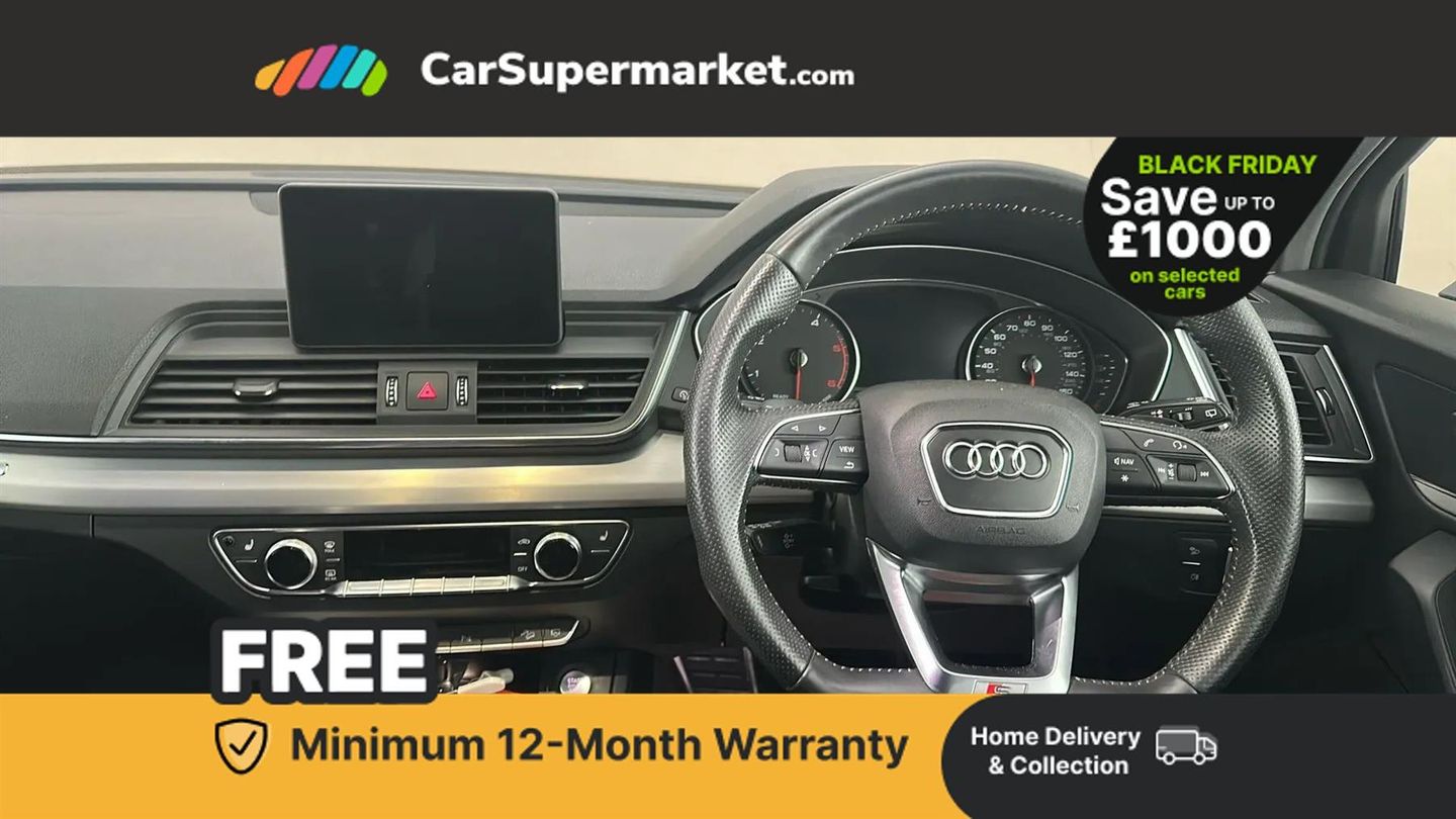 Parking Sensors, Apple CarPlay/Android Auto, Cruise Control, Sat Nav, Bluetooth, Digital Radio, Privacy Glass, Heated Front Seats;This Audi Q5 TDI S line from 2019 presents a remarkable ownership history, having been cherished by just one owner since new. The S line trim level adds a touch of sporty sophistication, and you'll appreciate the comfort of heated front seats, perfect for those colder mornings. With an MOT valid until November 2026 and a recent service at 50419 miles on 3rd November 2025, this Q5 offers peace of mind.