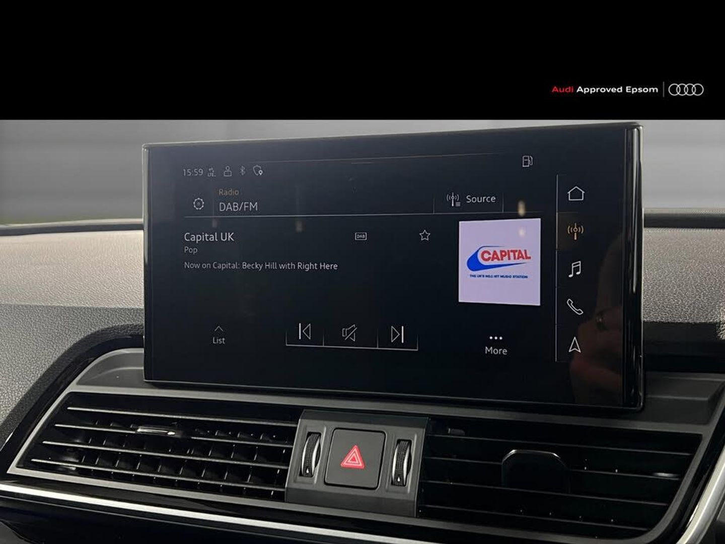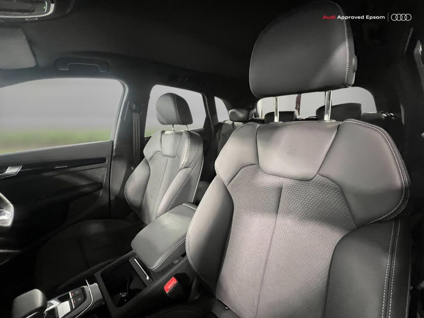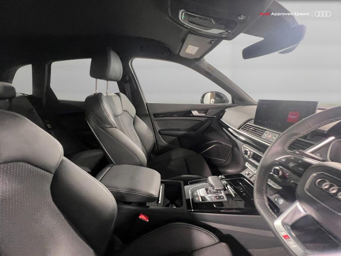 Acoustic front and rear parking sensor, Audi connect safety and service (e-call), Audi drive select, Audi virtual cockpit with 12.3" screen with specific display, Audi wireless smartphone interface, Automatic start-stop system with coasting functionality and efficiency programme, Bluetooth interface, Camera based traffic sign recognition, Electro - mechanical power assisted steering, Lane departure warning, MMI navigation plus with 10.1" touch screen, Power tailgate, Reversing camera, Service interval indicator, Voice control system with Audi hotword activation "Hey Audi", 3 pin 10 amp domestic charging cable, 7.4 kW onboard charger, Dynamic suspension, Industrial connector CEE 32A, 230V, Quattro on demand, Type 2 mode 3 22kW 32 amp charging cable, Type 2 socket for AC charging, 2 x USB charging port with aux input socket, 8 loudspeakers, DAB Digital radio, Acoustic windscreen, Auto dimming door mirrors, Auto dimming frameless rear view mirror, Automatic headlight adjustment, Automatic headlights and windscreen wipers, Black roof rails, Black styling with black rings, Body colour bumpers, Body colour rear diffuser with matt aluminium silver surrounds, Body colour underbody protection, Chrome plated exhaust trims, Daytime running lights, Door sills in Selenite silver, Electric adjustable/heated/folding door mirrors, Front air inlet surrounds in aluminium, Front and rear electric windows, Front radiator grille in honeycomb design, LED 3rd brake light, LED headlights and LED tail lights, Loading edge protection in stainless steel, Lower bumpers painted in contrast Manhattan grey, Rear chrome trim strip below lights, Rear privacy glass and rear side windows, Rear side wing doors, Rear wiper, Roof bars, S Line badges on the front wing panels, S Line front and rear bumpers, S Line rear spoiler, S Line side skirts, 3 rear headrests, 3 seater rear seat bench, Black cloth headlining, Comfort front centre armrest, Contrast stitching on seats, steering wheel and gear lever gaiter, Deluxe 3 zone electronic climate control, Front head restraints, Front sport seats with S embossed logo, Front/rear floor mats, Gear lever in black leather, Heated front seats, Height/reach adjustable steering column, Illuminated door sill trims with S logo, Luggage compartment cover, Manual seat adjustment with 4-way electric lumbar support, Rear seat bench plus-adjust for forwards/backwards position/backrest angle, load through hatch and remote backrest release, Single front passenger seat, Sunvisors with vanity mirrors, Top surface of the rear centre armrest in artificial leather, High gloss pack - Q5, LED interior light pack - Q5, 3 point seatbelts on all seats, 6 airbags - Driver, front passenger, curtain and side airbags, Attention and drowsiness assist, Electrically operated child locks on rear doors, Electromechanical parking brake, Electronic stabilisation control including ABS, ASR and EDL, First aid kit with warning triangle and vests, Front passenger airbag deactivation, Hill descent control, Hill hold assist, ISOFIX child seat mounting for front passenger seat and ISOFIX child seat mounting with Top Tether for outer rear seats, Multi collision brake assist, Pop-up bonnet for pedestrian protection, Pre sense city, Seatbelt monitoring, Tyre pressure warning, Anti theft alarm, Anti-theft wheel bolts, Remote central locking, Remote control key with SAFELOCK and keyless go, Air vents inserts and centre console in gloss black, Tool kit, Tyre repair kit
