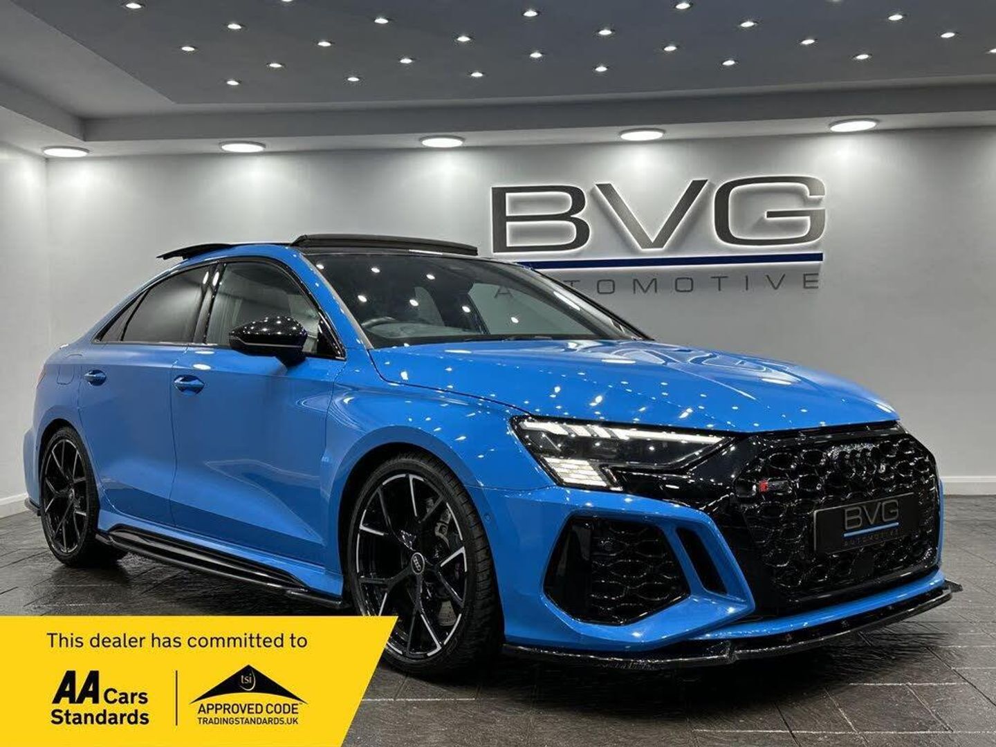 2022 Audi RS3 2.5 TFSI Vorsprung S Tronic quattroREG: MW22 DVRNATIONWIDE DELIVERY AVAILABLE - BVGWe are pleased to present this Audi RS3 2.5 TFSI Vorsprung S Tronic quattro Euro 6 (s/s) 4dr, finished in Turbo Blue with Black Leather Interior.Key Features & Specification: 19'' Alloys Panoramic Roof Mild Body Kit Black Styling Pack RS Sport Exhaust System Heads Up Display Matrix LED Headlights Bang & Olufsen Sound System Electric Heated Front Seats Front & Rear Parking Sensors Reverse Camera Electric Folding Mirrors Electric Powered Tailgate Apple CarPlay & Android Auto Bluetooth & DAB Radio Navigation System Cruise Control Keyless Start & Stop/StartVehicle Details: Registered: May 2022 Owners: 4 Owners Service History: FULL AUDI Service History (Recently Serviced) MOT: 12 Months Included (Free) Warranty: Complimentary 6-Month Warranty HPI Clear: Certificate ProvidedWhy Buy From Us? Competitive Finance Rates Affordable finance options available to suit your budget. Viewing by Appointment Only Schedule a test drive with our expert sales team. Nationwide Delivery Available Hassle-free delivery to your doorstep. Flexible Payment Options Debit & Credit Cards Accepted. Part Exchange Welcome Competitive trade-in valuations offered. Open 7 Days a Week Convenient hours to suit your schedule. Call us today on 0161 399 1629 to request a personalised video or arrange a viewing. Visit www.bvgautomotive.co.uk to explore our full range of stock.While we make every effort to ensure accuracy, please confirm all details with our sales team before visiting.-F/S/H|PAN|B&O|HUD|RS EXHAUST!!-A CAR FOR EVERYONE AT UNBEATABLE PRICES!