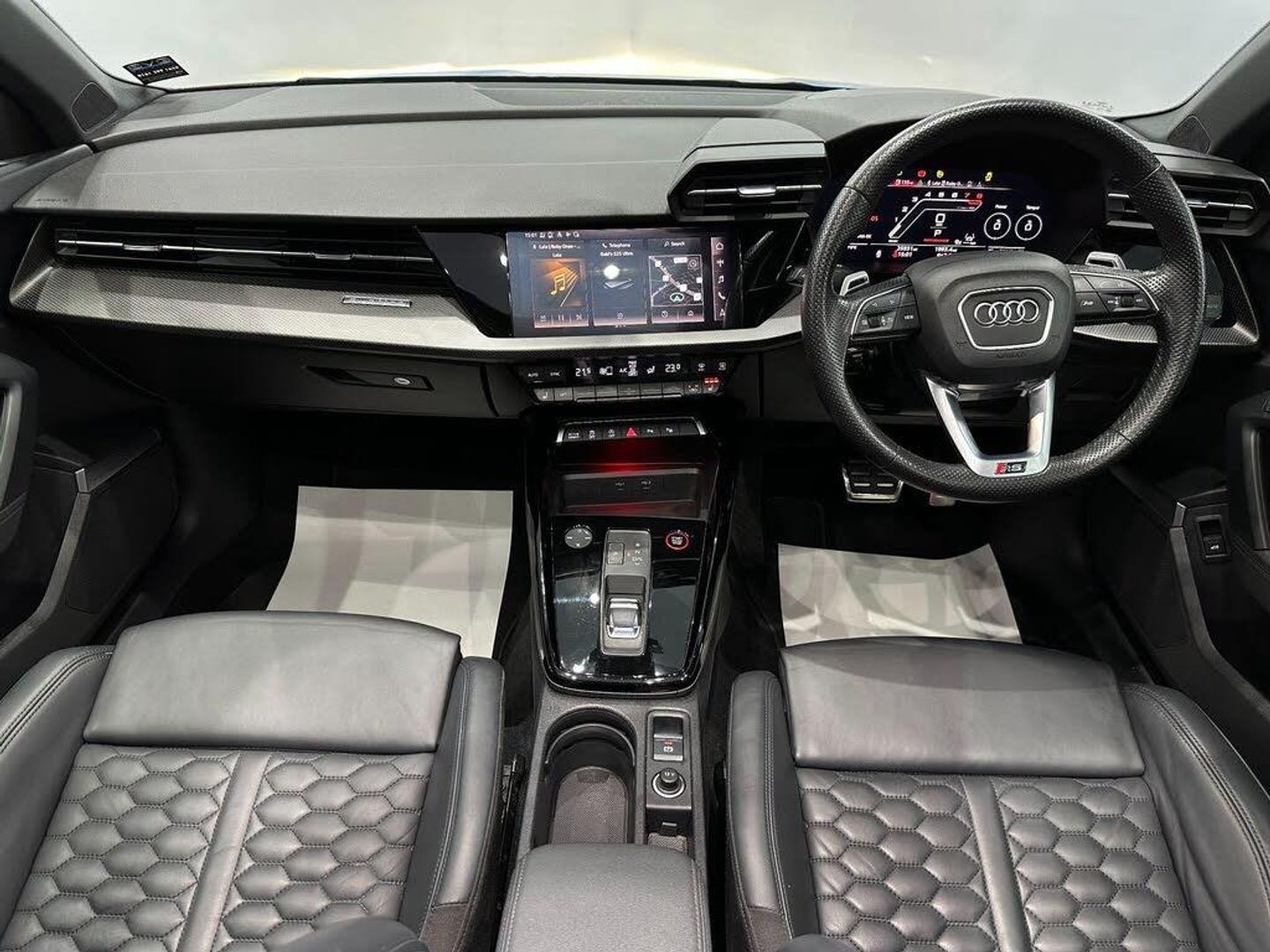 19in Alloy Wheels - 5-Y-Spoke-Black with Graphic Print, 4-Way Lumbar Support for Front Seats, Adaptive Cruise Control, Adaptive Suspension with Audi Drive Select, Airbags - Driver and Front Passenger with Passenger Airbag Deactivation, Aluminium Interior Elements, Ambient Lighting Pack, Anti Theft Locking Wheel Bolts, Anti-Theft Alarm, Audi Beam, Audi Connect Emergency Call and Service, Audi Connect Infotainment Services (3 Month Subscription From New), Audi Drive Select, Audi Matrix LED Headlights with LED Rear Lights - Dynamic Front and Rear Indicators - Headlight Cleaning System, Audi Pre-Sense Front, Audi Smartphone Interface, Audi Virtual Cockpit with RS Specific Display, Auto-Dimming Rear-View Mirror, Black Styling Pack, Bluetooth Interface, Brake Calipers Painted in Black with RS Logo at the Front, Camera Based Traffic Sign Recognition, Cloth Headlining in Black, Collision Avoidance Assistant, Comfort and Sound Package, DAB Digital Radio, Door Mirrors - Electrically Adjustable - Heated - Folding - Automatically Dimming with Memory Function and Integrated LED Indicators with Kerb View Function for Passenger Side, Door Sill Trims - Inlays in Aluminium and Illuminated with RS3 Logo, Driver Assistance Package, Dual-Zone Electronic Climate Control, ESC - Electronic Stabilisation Control inc ABS - ASR and EDL, Electric Windows - Front, Electrically Adjustable Front Seats with Memory Function for Drivers Side, Electronically Operated Child Locks, First Aid Kit and Warning Triangle, Front Centre Armrest, Front Side Airbags with Head Airbags and Interaction Airbag, Front and Rear Floor Mats, Head-Up Display, Headlights Washers, Heated Front Seats, Hill Hold Assist, I-Size and Top Tether Child Seat Mounting for the Outer Rear Seats, Interior Inlays - Full Decorative Carbon Trim, Lane Departure Warning, Legal Emergency Call - E-Call, Light and Rain Sensor, MMI Navigation Plus with MMI Touch, Manual Boot Compartment Lid, Matt Aluminium Look Door Mirrors, Matt Aluminium Look Window Trims, Parking Assist with Parking System Plus, Pedals in Stainless Steel and Footrest in Black, Power Operated Tailgate, Privacy Glass, Progressive Steering, RS Body Styling, RS Emblem, RS Exterior Features in Gloss Black, RS Sport Exhaust System, Rear Suspension, Remote Central Locking, Reversing Camera, Roof Colour in Bodycolour, Seat Belt Reminder with Passenger Presence Detection in Rear, Side Skirts in Black, Split Folding Rear Seat Bench - 60-40 or Fully, Steering Wheel - 3-Spoke Leather-Multi-Function, Storage Package, Tool Kit, Tyre Pressure Loss Indicator, Tyre Repair Kit, Windscreen with Acoustic Glazing, Windshield with Heat Insulated Glass