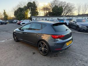12V Power Supply in Centre Console, 19in Alloy Wheels - CUPRA Machined, 7 Airbags, ABS and Traction Control System - TCS - Electronic Stability Control - ESC - and Front Differential Lock System - XDS, Alarm - Volumetric, Armrest - Front with Storage Compartment, Black Brake Calipers - Front and Rear with Cupra Logo, Black Interior Roof Lining, Bumpers - Exclusive Cupra Front and Rear, Convenience Pack Plus, Cruise Control, Dark Tinted Rear Windows, Digital Clock, Digital Cockpit, Driver and Passenger Seat Height Adjustment, Driver and Passenger Sunvisor with Covered and Illuminated Mirrors, Drivers Seat Lumbar Adjustment, Dual Zone Climate Control, Electric Parking Brake Including Autohold Function, Electrically Adjustable Folding and Heated Door Mirrors, Electro-Mechanical Progressive Power Steering, ESC Switch-Off Key, Flat Bottomed-Perforated Leather Steering Wheel with White Stitching and CUPRA Logo, Front and Rear Electric Windows, Front and Rear Parking Sensors, Front Assist with Pedestrian Protection, Front Seat Back Storage Pockets, Front Sports Seats, Full LED Headlights, Gearshift Indicator, Gloss Black Door Mirrors with Integrated LED Indicators, Illuminated Aluminium Front Door Sill with Trim Logo, Instrument Lighting with Brightness Control, ISOFIX Points in Outer Rear Seats with Top Tether Anchorage Points, Leather Gear Knob, LED Interior Illumination Pack, Lights Left On Warning Buzzer, Low Fuel Warning Light, Media System Plus, Multi Coloured Ambient Lighting, Multi-Collision Braking System, Navigation System, Outside Temperature Gauge, Pedals in Aluminium, Radiator Grille Frame in Glossy Black, Radiator Grille in Black, RPM Counter, SEAT Drive Profile, SEAT Full Link Smartphone Integration - Mirror Link - Apple CarPlay - Google Android Auto, Seatbelt Reminder - Front, Seats - Passenger Lumbar Adjustment, Space-Saving Spare Wheel, Split Folding Rear Seats 60-40 with Armrest, Sports Suspension, Steering Wheel-Mounted Gearshift Paddles, Storage Box Under Driver and Front Passenger Seat, Trip Computer, Two Height-Adjustable Front and Rear Headrests, Tyre Pressure Monitoring System, Visual Dual Exhaust Pipes