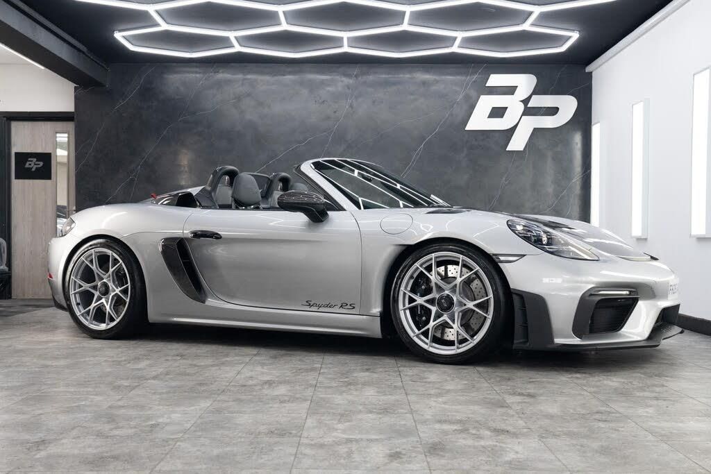 BOSE Surround Sound System,Park Assist - Rear with Reversing Camera,Brake Calipers Painted in Black High-Gloss,Door Handles Painted in Black - High-Gloss,Soft Top - Black,Weissach Package,Wheels Painted in Silver Colour,Window Triangle Trims in Carbon - Front,LED Main Headlights including Porsche Dynamic Light System - PDLS,Seat Belts - Arctic Grey,Sun Visors in Race-Tex,GT Silver,Front Axle Lift System,Race-Tex-Leather - Black - Arctic Grey with Extensive Items in Leather,12-Volt Socket in Passenger Footwell,20in Alloy Wheels - 718 Cayman GT4 RS - Forged Aluminium - Painted in Dark Silver,A-Pillars in Black Race-Tex,Adjustable Chassis For Track Use,Adjustable Fan with Air Recirculation and Defroster Functions,Adjustable Suspension Race Track Chassis,Alarm System,Ascending Centre Console with an Uncovered Storage Compartment and a Closed Storage Compartment,Automatic Headlight Activation including Welcome Home Lighting,Automatically Dimming Exterior and Interior Mirrors,Bi-Xenon Headlights with Integrated LED Daytime Running Lights,Bonnet Made of Carbon Fibre Reinforced Plastic - CFRP - in Exterior Colour with Black NACA Air Inlets for Brake Cooling,Brake Calipers - Red,Central Wheel Bolts in Black including Wheel Hub Cover with RS Logo in Silver,Closed Underbody Panelling,Cruise Control,Dashcam Preparation,Digital Displays for Vehicle Speed - Chosen Gear - Odometer -Trip Meter and Time,Digital Radio,Door Opening Loops - Decorative Stitching - Embroidered Spyder RS Lettering and Perforated Race-Tex Seat Centre in Arctic Grey,Door Sill Guards in Satin Carbon-Weave Finish with Model Designation Spyder RS in Silver,Dynamic Gearbox Mount System,Electric Windows with One-Touch Operation and Door Seal Protection Function,Electrically Adjustable Heated Exterior Mirrors on Door Waist Rails - Aspherical on Drivers Side,Electrically Controlled Parking Brake,Electromechanical Power Steering with Variable Steering Ratio and Speed Dependant Steering Assistance,Engine Water Cooled with Thermal Management,Exclusive Design Fuel Filler Cap,Fixed Rear Lip Spoiler,Floor Mats,Front Apron with Large Cooling Intakes,Front Wheel Arches Made of Carbon Fibre Reinforced - CFRP in Exterior Colour including Wheel Arch Ventilation in Black,Full Size Airbags for Driver and Front Passenger,Green Tinted Heat-Insulating Glass,Instrument Cluster with Central Rev Counter and High Resolution 4.6inch Colour Display,Instrument Dials in Black with Yellow Indices and Scales - Rev Counter in Titanium Colour - Spyder RS Logo,Intelligent Lightweight in Aluminium-Steel-Composite Construction,Interior Package - Carbon,LED Reading Lights - Orientation Lighting and Ignition Lock - Additionally Luggage Compartment and Glove Box Lighting,LED Taillights - Tinted with Integrated 4-Point Brake Lights and Reversing Lights,Lightweight Door Panels with Storage Net in Black and Opening Loops in Arctic Grey,Lightweight Spring-Strut Axle Front and Rear,Luggage Compartments at Front and Rear,Manual Lightweight Spyder Roof - Black Fabric,Model Designation Stripes - Spyder RS in Satin Black,PASM - Porsche Active Suspension Management - Sports Susupension and Ride Height Lowered by 30mm,PCM - Porsche Communication Management - Include Navigation,PDK Gear Changer with Manual Alley - Grip Area and Shift Gaiter in Race Tex - Shift Pattern in Racing Yellow,PORSCHE Logo in Accent Trim on Rear Apron in Painted in Satin Black,Porsche Side Impact Protection - POSIP,Porsche Stability Management - PSM Including ABS,Porsche Torque Vectoring - PTV with Mechanically Locking Rear Differential,Porsche Track Precision App,Process Air Inlets Behind Driver and Passenger Windows in Black,RS Sports Steering Wheel with Steering Wheel Rim and PDK Gear Selector in Race-Tex,Rain Sensing Automatic Windscreen Wipers,Rear Apron Lower Part in Black with Diffuser including Fins,Remote Central Locking with Immobiliser,Seats - Full Bucket,Separate Auxiliary Lights in the Front End with LED Indicators and Position Lights,Side Air Intakes with One Grille - Sideblades in Black Synthetic,Side Window Trims in Black,Sound Package Plus,Sport Exhaust System - Flow Optimised Stainless Steel Lightweight Sports Exhaust System with 2 Tailpipes Made of Stainless Steel in Black High Gloss,Sports-Look Pedals and Footrest,Steering Wheel Rim in Black Race Tex and Top Centre Marking in Yellow,Storage Compartment in Each Door,TPM - Tyre Pressure Monitoring with Race Circuit Mode,Two Individual Cup Holders - Integrated into Dashboard Trim Strip,Two-Zone Automatic Climate Control,Tyre Repair Kit,USB Interface in Central Storage Compartment,Windscreen Wiper System with Aero Wiper Blades and Washer Jets,Windscreen with Darker Grey Tint at the Top to Reduce Glare