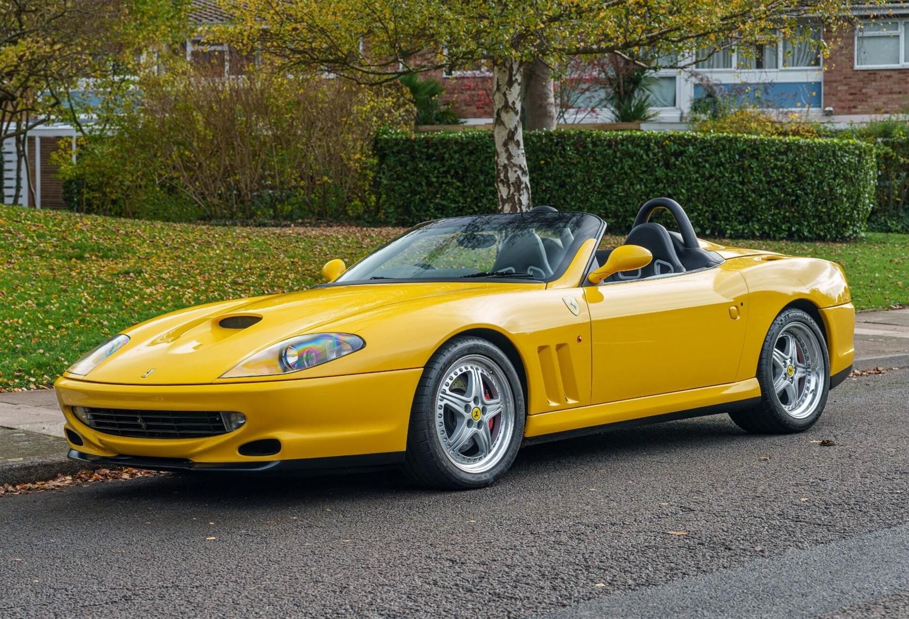 - One owner - Just 4,900 miles - One of only 448 - Fiorano Handling Package - Koenig Specials six-pipe exhaust - 5.5 litre V12 with six speed gated manual - Finished in Giallo Fly with Nero interior Ferrari unveiled the 550 Barchetta Pininfarina at the 2000 Paris Motor Show as a tribute to Pininfarina’s seventy years of collaboration with the marque. The model was produced in a limited run of 448 numbered cars, reflecting Ferrari’s intention to create a straightforward, collectible open variant of the 550 series rather than a regular production convertible. True to the original barchetta concept, the car was delivered without a permanent roof. A light emergency soft top was provided, intended only for temporary use at low speeds, reinforcing the car’s focus on open air driving and mechanical purity. Mechanically, the Barchetta shares the powertrain and chassis fundamentals of the 550 Maranello. It is powered by Ferrari’s naturally aspirated five point five litre V12, producing 478 horsepower and known for its smooth power delivery and durability. This engine is paired with the six speed gated manual gearbox, a defining feature of the era and one that contributes significantly to the driving experience. The front engined rear wheel drive layout, combined with the 550 platform’s well regarded balance, resulted in a car that offered both strong performance and predictable road manners. Even with the more open bodywork, the Barchetta retained much of the structural rigidity of the standard car thanks to extensive bracing. This particular example is an early production car ordered with the Fiorano Handling Package. This option was introduced by Ferrari for customers seeking a more focused driving feel and included firmer suspension settings, modified steering, and upgraded braking components. Early in its life it was also fitted with a Koenig Specials stainless steel exhaust system with six tailpipes. This system is well known among 550 and 575 owners for providing a distinctive tone without compromising drivability. The car has seen very limited use over the years with the odometer showing only 4,900 miles. Finished in Giallo Fly with a Nero interior, the car presents cleanly and retains the purposeful appearance that defines the Barchetta. Documentation includes the Ferrari Certificate of Origin, factory manuals, and original correspondence. Also supplied with - Emergency soft top - Toolkit - Jack - Car cover With its low mileage, early build, Fiorano specification, and position within the limited production run of 448 cars, this 550 Barchetta stands as a strong example of Ferrari’s open V12 grand tourer, combining rarity with the mechanical character that makes the 550 series so highly regarded today. Now available for viewing at the DD Classics Dealership in London, please call 0208 878 33 55 to book an appointment. Every effort has been made to ensure the accuracy of the above information but errors may occur. Please check with a salesperson.