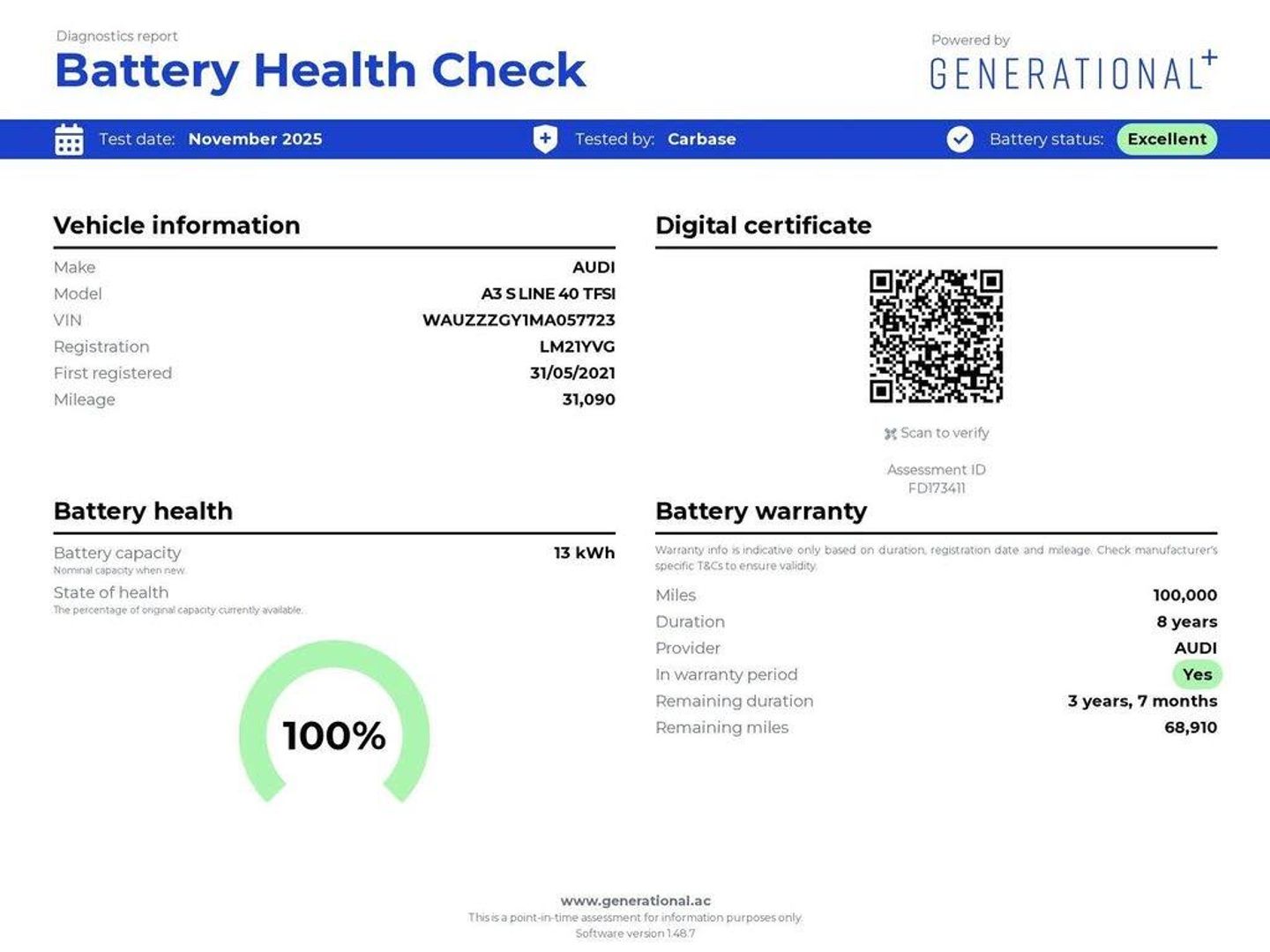 12v Socket and Storage Compartment in Front Centre Console,2 USB-C Ports with Charge and Data Functions,6 Passive Loudspeakers,Audi Connect Emergency Call and Service,Audi Connect Navigation and Infotainment Services Plus (3 Year Subscription From New),Audi Smartphone Interface,Bluetooth Interface,DAB Digital Radio,MMI Navigation Plus with High Resolution 10.1in Touchscreen Colour Display,18in Alloy Wheels - 5-Arm Dynamic Design,Aluminium Window Trims,Anti Theft Locking Wheel Bolts,Body Coloured Door Mirrors,Electric Windows - Front,Exterior Mirrors - Electrically Adjustable - Heated and Folding - Automatically Dimming on Both Sides with Built-In LED Side Indicators - Including Automatic Kerb-Side Function for the Passenger-Side,Manual Boot Compartment Lid,Privacy Glass,Privacy Glass - Dark-Tinted Rear Window - Rear Door and Side Window.,Rear Side Air Outlets - Grained Matt Black,S Line Bumpers,S Line Styling,S Roof Spoiler,Tyre Repair Kit,Windscreen with Acoustic Glazing,3.6kW Onboard Charger,Automatic Start-Stop System with Recuperation,Domestic Charging Cable - 3 Pin 10 Amp,Electromechanical Power Steering,Standard Suspension,Type 2 Mode 3 32amp Charging Cable,Airbags - Driver and Front Passenger with Passenger Airbag Deactivation,Anti-Theft Alarm,Audi Pre-Sense Front with Pedestrian and Cyclist Recognition,Child Locks - Manual,ESC - Electronic Stabilisation Control inc ABS - ASR and EDL,Electronically Operated Child Locks,First Aid Kit and Warning Triangle and 2 Safety Vests,Front Side Airbags with Head Airbags and Interaction Airbag,Hill Hold Assist,I-Size and Top Tether Child Seat Mounting for the Outer Rear Seats,Remote Central Locking,Seat Belt Monitoring,Aluminium Interior Elements,Audi Virtual Cockpit,Auto Dimming and Frameless Rear View Mirror,Cloth Headlining in Black,Dual-Zone Electronic Climate Control,Front Sports Seats,Front and Rear Centre Armrest in Leather,Front and Rear Floor Mats,Illuminated Door Sill Trims with Aluminium Inserts and S Logo,Illuminated Vanity Mirrors,Inlays - Dark Spectrum Aluminium,Luggage Compartment Floor Covering,Pedals in Stainless Steel and Footrest in Black,Split-Folding Rear Seat Bench can be Split 40: 20: 40 or Fully, with Centre Armrest and Cup Holders,Steering Wheel - 3-Spoke Leather-Multi-Function,Tool Kit,Type 2 Socket for AC Charging,Audi Drive Select,Collision Avoidance Assistant,Cruise Control,Lane Departure Warning,Rear Parking Sensors,Tyre Pressure Loss Indicator,Voice Control System with Natural Language Interaction,LED Headlights with LED Rear Lights and Dynamic Rear Indicators,Light and Rain Sensor