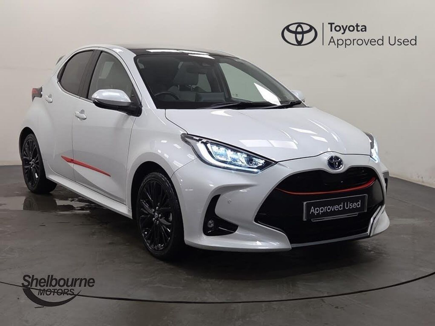 Adaptive cruise control, Adjustable speed limit with speed warning, Blind spot monitoring, Bluetooth connectivity, Colour binocular inspired displays with digital speedometer, E-call, Electric power steering, Hybrid energy display, Multi information display switches on steering wheel, Reversing camera, Smartphone integration with Apple CarPlay and Android auto, Touch 2 navigation system, Voice recognition, Vehicle Stability Control (VSC), 6 speakers, 9" HD multimedia display touch screen with Toyota smart connect, USB connection, Acoustic windscreen glass, Auto windscreen wipers, Automatic headlights, Automatically retractable door mirrors, Body coloured door mirrors, Electric adjustable heated door mirrors, Follow me home headlights, Front auto power windows with anti jam protection, Full LED rear lights, LED daytime running lights, LED front fog lights, LED front light guide, LED Headlights, LED High mounted stop lamp, LED Indicators, LED rear light guide, Manual headlight levelling, Painted chequered front grille, Rain sensor, Rear auto power windows with anti jam protection, Rear privacy glass, Rear side wing doors, Rear spoiler, Rear wiper, Satin lower front grille, Shark fin antenna, Turning signal integrated indicators in door mirrors, 3 adjustable rear headrests, 3 spoke leather steering wheel, 60/40 split folding rear seat, Active headrests, Adjustable boot height, Coat hooks in rear grab handles, Cup holders (2 front & door), Data Communication Module (DCM) connected services, Dual zone automatic air conditioning, Fabric seat with partial synthetic leather upholstery, Front armrest, Front sport seats, Glovebox, Grey roof lining, Height adjustable driver's seat, Height adjustable passenger seat, Isofix seat fixing, Leather gearshift, Map pockets on the backs of the front seats, Pollen filter, Shopping bag hooks, Single front passenger seat, Tilt/telescopic steering column, Parking pack - Yaris, 3 point seatbelts on all rear seats, ABS+EBD+Brake assist, Electronic parking brake, Emergency brake light system (EBS), Front passenger airbag on/off switch, Front seatbelt reminder, Hill start assist control (HAC), Rear child proof door locks, Rear seat belt reminder, Supplemental Restraint System (SRS) 8 airbags: Driver & passenger's airbags, dual side curtain airbags, side impact airbags, front centre airbag, Toyota Safety Sense 2, Precollison + Night time Pedestrian & Cyclist Detection, Lane Trace Assist, Auto High Beam, Intelligent ACC & Road Sign Assist, Tyre pressure warning system, 2x Master key, Alarm/immobiliser, Keyless smart entry with push button start, Remote AC via MyT, Remote locking via MyT, Remote powered central double locking doors, Satin chrome interior styling, Soft touch instrument panel, Space saver spare wheel