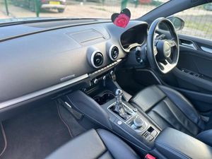19in Alloy Wheels - 5 Twin Spoke Star Design in Contrast Grey with Diamond Cut Finish, 2 x USB Charging Ports and 1 x AUX-IN, 6-Airbag System with Knee Airbag for Driver, Aluminium Interior Elements, Aluminium-Effect Door Mirror Housings, Anti Theft Locking Wheel Bolts, Anti-Theft Alarm, Audi Beam, Audi Connect Infotainment Services - 3 Month Trial, Audi Drive Select, Audi Magnetic Ride, Audi Smartphone Interface, Audi Sound System, Bluetooth Interface, Body Coloured Door Mirrors, Brake Calipers - Black with S3 Logo, CD Drive, Child Locks - Manual, Colour Drivers Information System - DIS, Cruise Control, DAB Digital Radio, Door Mirrors - Electrically Adjustable and Heated with Integrated LED Side Indicators, Dual-Zone Electronic Climate Control, ESC - Electronic Stabilisation Control inc ABS - ASR and EDL, Electric Windows - Front and Rear, Electromechanical Parking Brake, Exhaust Tailpipe - Dual-Branch Oval Twin with Chrome Finish, First Aid Kit, Front Centre Armrest, Front and Rear Floor Mats, Headlights Washers, Heated Front Seats, ISOFIX Child Seat Mounting and Top Tether, Illuminated Door Sill Trims with S Logo, Immobiliser, Inlays - Matt Brushed Aluminium, Instrument Dials with S3 Logo, LED Headlights with LED Rear Lights and Dynamic Rear Indicators, LED Interior Light Package, Light and Rain Sensor, Luggage Compartment - Lashing Points x4, MMI Navigation - SD Card Based, MMI Radio Plus with 7in Electrically Retractable Colour MMI Screen, Manual Front Seat Adjustment, Non-Smoking Package, Pedals in Stainless Steel, Platinum Grey S Grille with Chrome Plated Finish, Progressive Steering, Remote Central Locking with 2 Fold Away Keys, S Design Body Styling, S Sport Suspension, Seat Belt Monitoring, Seat Belt Reminder for All Seats, Seats - Split Folding Rear - 60-40, Space Saver Spare Wheel, Sport Side Air Inlet Grille and Diffuser Insert, Steering Wheel - 3-Spoke Leather-Multifunction-Flat Bottomed-Shift Paddles, Storage Compartments in the Door Side Trims-Centre Console-Under Drivers Seat, Storage Package, Tool Kit and Car Jack, Tyre Pressure Monitoring System, Warning Triangle, Window Surrounds - Aluminium