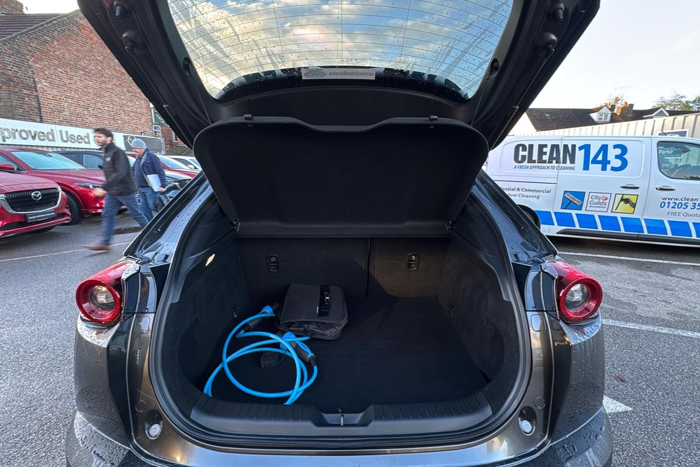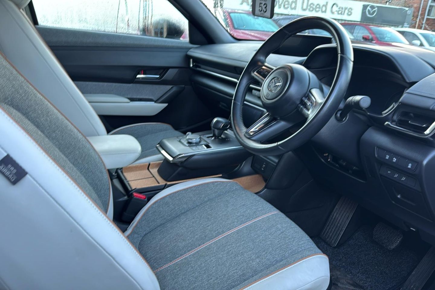 12V Electrical Power Outlet 18in Alloy Wheels - Bright Metallic ABS - Anti Lock Braking System Adaptive Cruise Control Air Conditioning - Climate Control Airbags - Front Driver Knee Airbags - Front Dual Stage Driver and Single Stage Front Passenger Airbags - Front Passenger Cut-off Switch Airbags - Front Side Airbags - Front and Rear Curtain Airbags Apple CarPlay and Android Auto B-Pillar and C-Pillar Garnish - Piano Black Blind Spot Monitoring Chrome Glove Box Handle Coming Home-Leaving Home Lights DC Socket for Rapid Charging up to 50KW DSC - Dynamic Stability Control Door Mirrors - Black - Electrically-Adjustable - Heated - Auto Power Folding with Auto-dimming Drivers Mirror and Adjustable Memory with Tilt-down Function when in Reverse Door Panel Trim in Cloth with Vinyl Leather Armrest and Cork Inserts Around Innter Door Handle Driver Attention Alert - DAA Drivers Seat Power Slide - Recline - Height - Tilt and Lumbar Adjustment with Head-up Display and Driver Door Memory Dusk-Sensing Lights Electric Windows - Front Electronic Parking Brake with Auto Hold Function and Auto-Disengage Function Electronic Power Assisted Steering Emergency Lane Keeping with Blind Spot Assist Emergency Lane Keeping with Road Keep Assist Emergency Stop Signalling System - ESS Emergency Tyre Repair Kit Frameless Auto Dimming Rear-View Mirror Front Passenger Seat - Manual Slide - Recline - Height Adjustment Gear Shift - Leather-Wrapped Glovebox with Interior Illumination Grab Handles - Driver - Front Passenger and Two Rear with Coat Hooks Head-Up Display Headlights - LED with Auto Headlight Levelling High Beam Control Hill Hold Assist ISOFIX Child Seat Anchorage for Outer Rear Seats Instrument Panel 7in TFT Colour Driver Display Integrated Bluetooth Intelligent Speed Assist Interior Lighting LED Daytime Running Lights LED Rear Combination Lights Lane Keep Assist with Lane Departure Warning System Luggage Compartment - LED Illumination Mazda Connect with 8.8in TFT Colour Centre Display Mazda Connected Services Mazda Heritage Cork Console Tray and Cupholder Lids Mazda Navigation System Multimedia Commander including Separate Volume Dial Parking Sensors - Front and Rear with Audible and Visual Warning Power Start-Stop Button Pre-Crash Safety - Smart Brake Support - SBS Privacy Glass - Rear and Rear Side Windows Radiator Grille - Black Rain-Sensing Front Wipers Rear Roof Spoiler - Gloss Black Rear Seats - 60-40 Split Fold Down Rear Seats - Folding Centre Armrest Equipped with Two Cup Holders Rear Wiper Remote Central Locking with Deadlocking and Automatic Door Lock when Driving Reversing Camera Roof Mounted Sunglasses Holder Seatback Pocket - Located on Rear of Front Passenger Seat Seatbelt Reminder Audible Warning Seats - Front Heated Smart Keyless Entry Steering Wheel - Leather Wrapped Steering Wheel - Paddle Shift Steering Wheel - Tilt and Telescopic Adjustment Steering Wheel Chrome Centre Bezel Steering Wheel Mounted Audio and Bluetooth Controls Storage Spaces - Door Pockets Storage Spaces - Front Centre Storage with Two Cupholders Sunvisors - Drivers and Front Passengers with Covered Vanity Mirror and Drivers Ticket Holder TCS - Traction Control System Thatcham Accredited Alarm and Immobiliser Three Height Adjustable Rear Head Restraints Traffic Sign Recognition Trip Computer Type 2 Mode 2 AC Charging Via 3-Point Plug Type 2 for Mode 3 AC Charging Via Home or Public Charge Points Tyre Pressure Monitoring System USB Input e G-Vectoring Control Plus - eGVC Plus e-Call with GPS