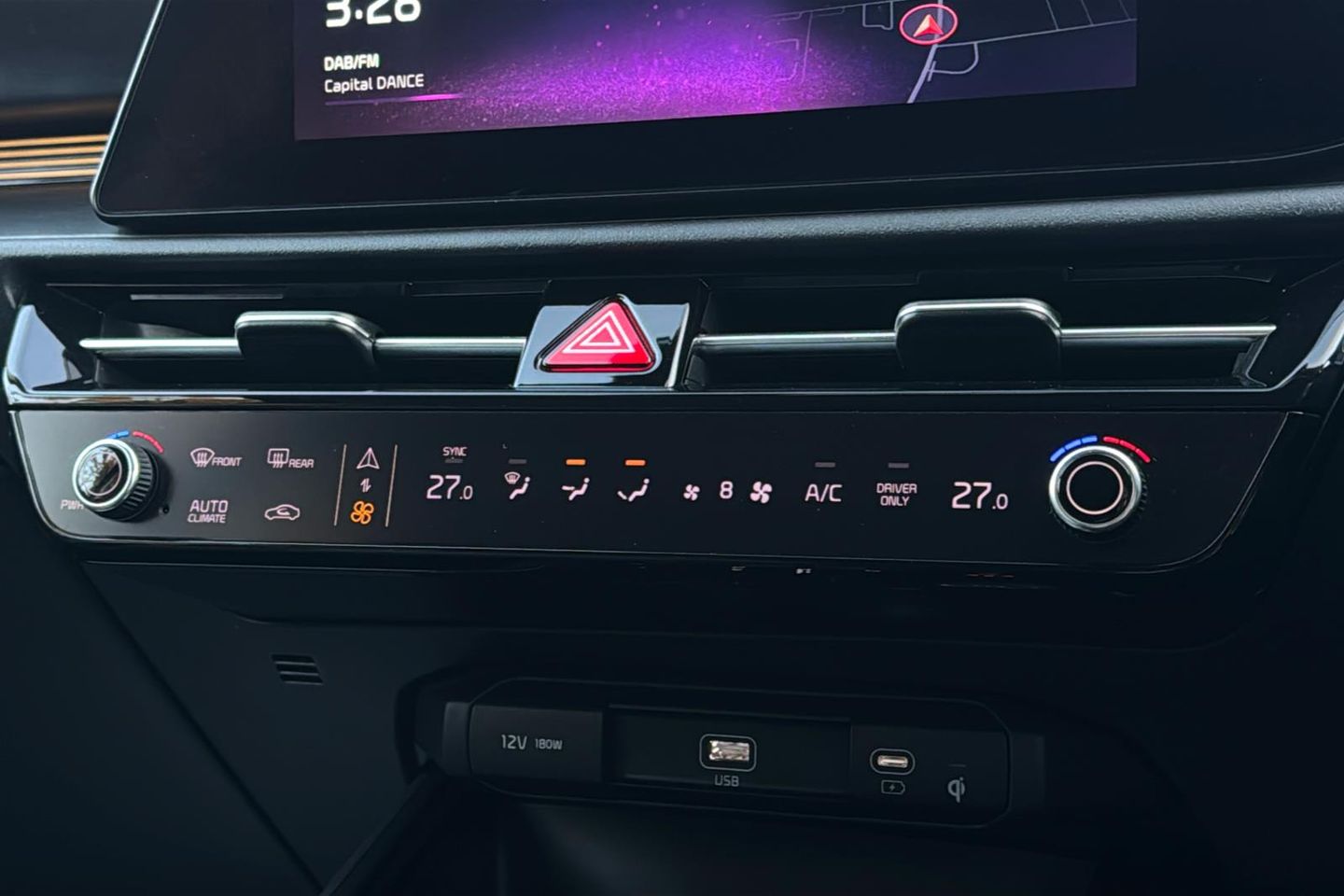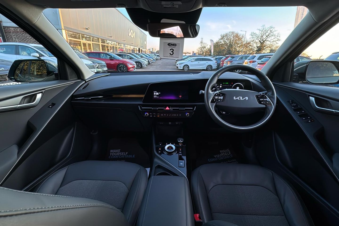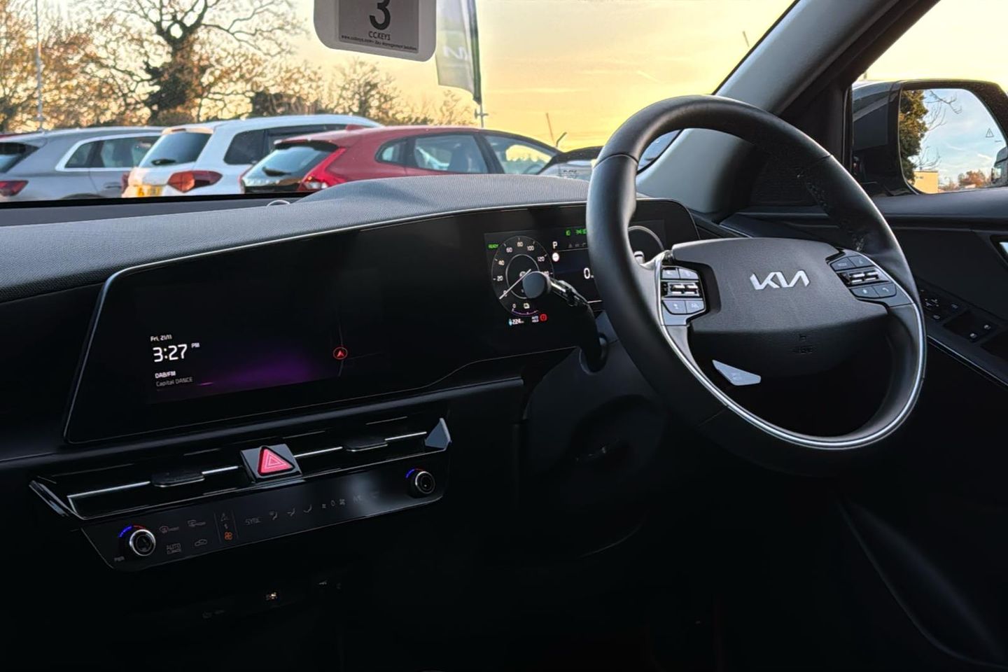 11KW On Board Charging System 17in Alloy Wheels with Continental Tyres 1x Front 12v Socket 1x Luggage Compartment 12v Socket 2x C-Type Charge Port on Front Seats 2x Front USB Charge Ports - 1x Type C 5 Seats 6-Speaker Audio System 60-40 Split Remote Folding Rear Seats ABS - Anti Lock Braking System Acoustic Film - Windscreen Adaptive Smart Cruise Control with Stop and Go Functionality Air Filter Airbags - Driver Airbags - Passenger Alarm System and Engine Immobiliser All-Round 3-Point Seatbelts All-Round Electric Windows with Driver and Front Passenger Auto Up-Down Function Safety Function All-Round Height Adjustable Headrests Android Auto and Apple Carplay with Voice Control Artificial Leather Steering Wheel Artificial Leather Storage Console Box Automatic Headlight Control Automatic Windscreen De-Fog BCA - Rear Blind Spot Collision Avoidance Assist Backlight Glass with Timed Heater Battery Heating System Black Beltline Mouldings Black and Chrome Radiator Grille Bluetooth with Music Streaming Body Coloured Bumpers Body Coloured Outside Handle Centre Console Cupholders Centre Fascia - Metal Chopped Carbon Centre Side Front Airbag Digital Clock Door Deadlocks Drive Mode Select - Eco-Sport Driver Power Adjusted Seat Driver and Passenger Sunvisors with Vanity Mirror and Illumination Dual LED Headlights - Low and High Projection Dual Shell Horn Dual Temperature Control E-Shift - Shift by Wire ESC - Electronic Stability Control Electrically Folding Door Mirrors Electronic Parking Brake Emergency Stop Signalling - ESS Engine Start-Stop Button with Smart Entry System Forward Collision Avoidance Assist - FCA 1.5 Car-Pedestrian-Cyclist-Junction Turning Free 7-year Kia Connect Services - UVO Front Grille Charging Port Front Parking Sensors Front Passenger Airbag Cut Off Switch Front Seatback Pockets Front Seatbelt Height Adjusters Front and Rear Chrome Skid Plates Front and Rear Door Storage Gloss Black Cladding Glovebox with Illumination Heated Front Seats Heated Steering Wheel High Gloss Door Mirrors Highway Driving Assist - HDA 1.0 Hill-Start Assist Control - HAC ISOFIX Child Seat Top Tethers and Anchor Fixings Impact Sensing Auto Door Unlocking Inside Door Handle - Chrome Coating Integrated 10.25in TFT Cluster with 10.25in Touchscreen Display with Navigation Intelligent Speed Limit Assist - ISLA Interior Door Lock-Unlock Function Knee Airbag - Driver LED Daytime Running Lights LED High Middle Stop Light Lane Follow Assist - LFA Lane Keep Assist System - LKAS Locking Wheel Nuts Low Washer Fluid Warning Luggage Area Load Cover Luggage Board Lumbar Support - Driver - Power Aircell Type Motor Driven Power Steering - MDPS Overhead Console - 2nd Row with Luggage Lamp - Bulb Rain Sensor Rear Console Ventilation Duct Rear Fog Light Rear LED Lights Rear Parking Sensors Rear Privacy Glass Rear Seat Alert Rear Spoiler Reversing Camera with Dynamic Guidelines Integrated into Centre Fascia Screen Roof Rails Rubber Pedals Side and Curtain Airbags Solar Windscreen Standard Door Scuff Plates Steering Wheel - Paddle Shift Steering Wheel Mounted Audio Controls TMK - Tyre Mobility Kit Tilt and Telescopic Steering Wheel Adjustment Trip Computer Type 2 to Type 2 Charger - 5m Cable Length Tyre Pressure Monitoring System - TPMS Vehicle - 2-Load Visible Vehicle Identification Number - VIN Wireless Phone Charger
