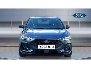 Discover style, efficiency, and driving enjoyment with this superb Ford Focus Hatchback 1.0 EcoBoost ST-Line 5dr, finished in the striking Chrome Blue and showing just 34,495 miles. This model perfectly blends sporty design with everyday practicality, making it an exceptional choice for drivers seeking both performance and value. The award-winning 1.0 EcoBoost engine provides an impressive balance of power and fuel efficiency, delivering a responsive yet economical drive that excels both in city traffic and on longer motorway journeys. As part of the ST-Line range, this Focus benefits from sport-inspired styling and handling, offering a dynamic feel on the road while maintaining the comfort and refinement the Focus is known for. Inside, the cabin is thoughtfully designed with modern technology and user-friendly features. The built-in satellite navigation system ensures hassle-free travel, guiding you with clear, accurate directions. Entertainment and connectivity options are excellent, thanks to DAB radio, Bluetooth, and full Apple CarPlay and Android Auto integrationkeeping you connected, informed, and entertained with ease. Practicality is further enhanced by the heated front windscreen, a highly desirable feature that makes frosty mornings effortless. Automatic headlights and automatic wipers add to the convenience, adapting seamlessly to changing weather and light conditions so you can focus on the road ahead. The exterior stands out with 17-inch alloy wheels that perfectly complement the Chrome Blue paintwork, giving the car a sharp, sporty presence. The hatchback design also provides generous boot space and great overall practicality, making it ideal for daily use, commuting, and weekend trips. Overall, this Ford Focus ST-Line offers fantastic value with its blend of sporty styling, advanced technology, comfort, and efficiency. Well-maintained and well-equipped, its ready to deliver enjoyable, reliable motoring to its next owner.