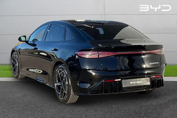 Touchscreen, Alloys, Cruise Control, Advanced Safety, Ambient Lighting, Apple CarPlay/Android Auto, AC/Climate, Automatic Headlights, DAB, Collision Detection, Traffic Alert, Keyless Entry, Panoramic / Sunroof;Presenting this Approved Used BYD Seal 82.5kWh Design Auto 4dr, finished in the stunning Space Black paint, which looks amazing paired with the 19in twin-colour alloy wheels and rear privacy glass. The Seal boasts the larger 82.5kWh battery which offers a fantastic range of up to 354 miles, and this Excellence model offers the dual-motor powertrain offering AWD. Rapid charging is supported up to 150kW, providing a top-up from 10%-80% in just 37 minutes, while AC charging will takes around 8.5 hours. Upon entry to the vehicle you'll notice Vegan Leather upholstery, with sports seating in the front offering excellent support. The front seats are also electrically adjustable, and offer both heating and ventilation for optimum comfort. The interior is also flooded with light thanks to the huge fixed sunroof. There's a superb amount of legroom for rear seat passengers, while the dual-zone climate control keeps everyone comfortable. From the drivers' seat you'll notice the digital instrument display, and at the centre of the dashboard sits the impressive 15.6in rotating touchscreen. The media system offers tons of fab features, including DAB radio, satellite navigation, Bluetooth interface and Apple CarPlay/Android Auto. You can also set up the scheduled charging, and customise vehicle settings such as the steering and brake assist. The Seal also offers a whole host of safety features too, including adaptive cruise control and blind spot monitoring. Pop the car into reverse and...