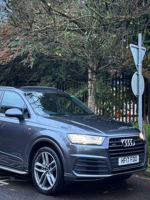 C&S MOTORS LTD ARE PLEASED TO OFFER THIS STUNNING 2017 AUDI Q7 S LINE 3.0 TDI DIESEL QUATTRO AUTOMATIC FINISHED IN DAYTONA GREY. DRIVES OUTSTANDINGLY. IN GREAT CONDITION INSIDE AND OUT. THE IDEAL FAMILY SUV WITH THE POWER AND LUXURY LOOK ++ 2X KEYS ++ COMES WITH FULL SERVICE HISTORY ++ 12 MONTHS MOT ++ HPI CLEAR ++ COMES WITH A FREE 3 MONTH WARRANTY. (EXTENDED WARRANTY PACKAGE AVAILABLE). SPEC INCLUDING; SIDE STEPS, KEYLESS START & STOP, FRONT & REAR PARKING SENSORS, ADJUSTABLE STEERING WHEEL, REAR CLIMATE CONTROL, FRONT HEATING SEATS, PANORAMIC GLASS SUNROOF, BOSE SPEAKER SYSTEM, ROOF RAILS, FULL LEATHER SEATS, STOP/START SYSTEM, AUDI IN CAR ENTERTAINMENT INCLUDING B/T CONNECTION, AUX, SD CARDS, JUKEBOX & DAB RADIO, DRL, CRUISE CONTROL, AUTO HEADLIGHTS, 21 INCH ALLOY WHEELS, PRIVACY GLASS, AIR CONDITIONING, HEATING & FOLDING DOOR MIRRORS, DIFFERENT DRIVING MODES, MANY MORE, NATIONWIDE DELIVERY AVAILABLE. PART EXCHANGE WELCOME. ANY CAR, ANY MILEAGE, ANY CONDITION. OPEN 7 DAYS A WEEK 10AM-6PM. VIEWING BY APPOINTMENT BASIS ONLY. TEST DRIVE AND INSPECTION WELCOME. £20,995. FOR MORE INFO PLEASE CALL OR TEXT: 07922652023/07927772324-FSH 2X KEYS TOP SPEC PAN ROOF
