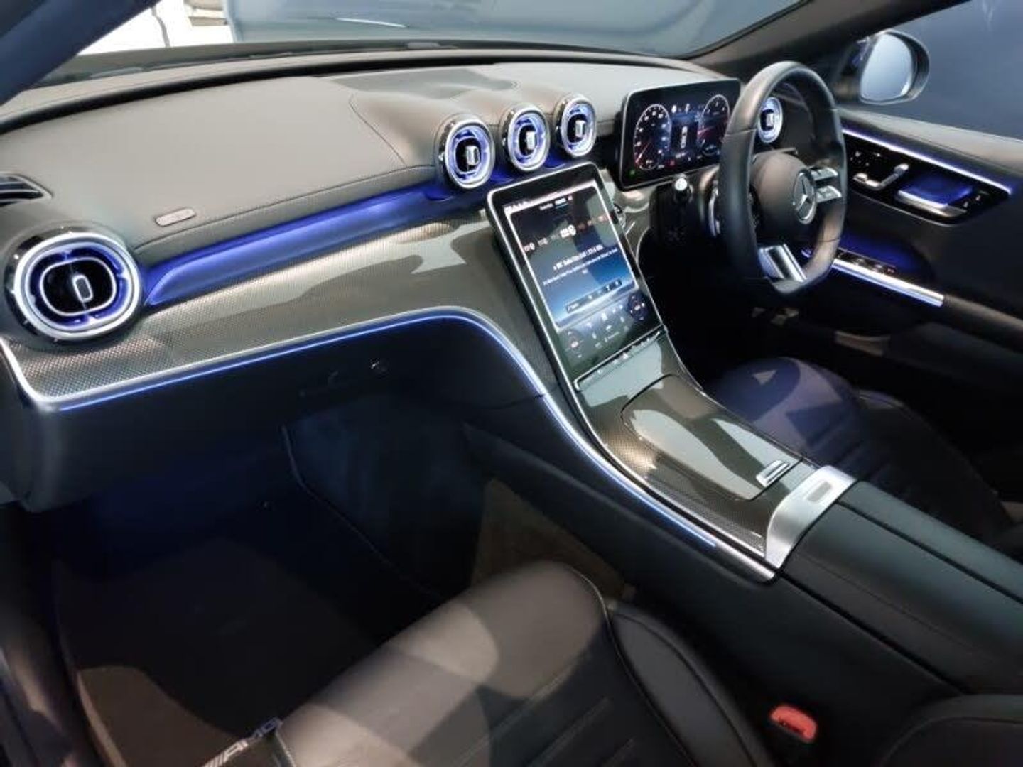 11.9" high resolution multimedia colour display, 12.3" digital instrument cluster display, 19" AMG multi spoke design alloy wheels painted in black with high sheen finish, Active blind spot assist, Active brake assist plus, Active lane keeping assist, AMG DYNAMIC SELECT with a choice of driving modes (Slippery, Comfort, Sport, Sport+, Individual), MBUX augmented reality for navigation, MBUX navigation premium, MBUX voice control activated by keywords "Hey Mercedes", Mercedes connect me, Mercedes me remote services, Sports direct steer speed sensitive steering, Status display for rear seat belts in instrument cluster, Extended MBUX functions, 9G TRONIC 9 speed automatic transmission, Agility control sports suspension and lowered by 15 mm, MBUX multimedia system, Digital light LED headlamps, LED Indicators, LED tail lights, LED third brake light, AMG side skirts in vehicle colour, AMG rear bumper with high gloss chrome elements, AMG front bumper with sporty air intakes and chrome elements, AMG body styling front apron, rear apron and side skirts, Interior lighting package - C Class, Memory package - C Class, Mirror pack - C Class, Parking package with 360 degree camera - C Class, Seat comfort pack - C Class, Stowage space pack - C Class, USB package - C Class
