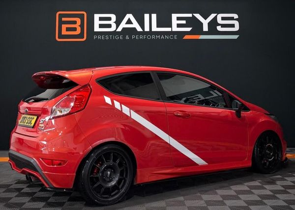 FOR SALE 2015 Ford Fiesta 1.6T ST-2 Running PumaSpeed Stage 2R - Approximately 245 BHP Hatchback 3Dr Petrol Manual, Euro 5 - Priced to sell at - £6,495 90,579 miles backed by DVSA MOT Expiry date - 07/05/2026 Fully HPI clear, Full Service History Here at Baileys Prestige & Performance we are proud to offer this stunning 2015 Ford Fiesta 1.6 ST-2 Turbo Hatchback finished in Stunning Molten Orange. This 2015 model is in excellent condition for its age and has great spec, truely is a one off car. The paintwork and condition of this car is in excellent condition it really does make this particular example stand out from the rest. This car is a fantastic choice for those seeking a reliable and well-maintained vehicle that has plenty of power with the engine upgrades, at approximately 245BHP it really does fly through the gears. Powered by a 1.6-litre petrol engine, this Fiesta delivers an impressive amount of power providing a thrilling driving experience and perfect for them B roads. Being equipped with a manual transmission and front-wheel drive, this little hatchback offers precise handling whilst also making it a smooth driving experience. Inside you'll find a spacious and comfortable cabin with seating for up to five passengers.The hatchback body style offers ample cargo space, perfect for those who need to transport belongings or luggage.This particular car has a standard spec which includes heated Seats, SYNC media centre, plus more FULL SPEC Fiesta ST180 Mountune Pumaspeed MAXD 2R Package R-Sport decat R-Sport 400 Stage 3 Intercooler Stage 2 PumaSpeed Tune with over-run EBC Discs with YellowStuff Pads Mountune Intake with Cold Feed Miltek Cat Back Exhaust with Powerflex Exhaust Hangers Powerflex Bushing on the Sibframes and Arms H&R Lowering Springs OZ Racing Leggenda Wheels Full Maxton Kit Heated Seats SERVICE HISTORY 16/09/2013- Inspection service - 10 Miles 01/10/2014 - Service - 12,162 Miles 22/01/2016 - Service - 23,988 Miles 03/03/2017 - Service - 29,554 Miles 14/02/2018 - Service - 35,091 Miles 08