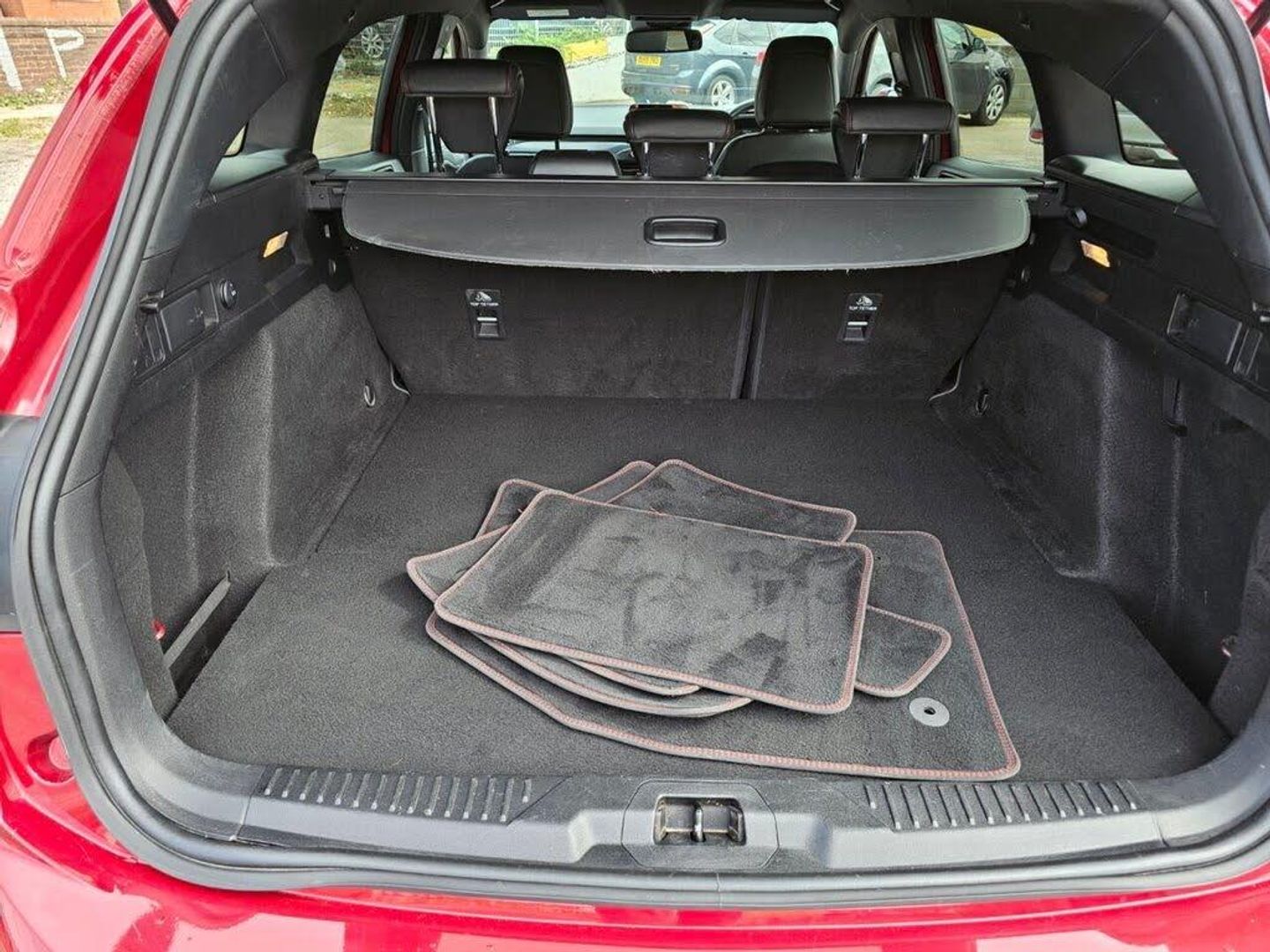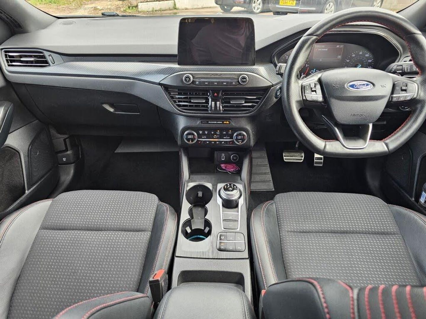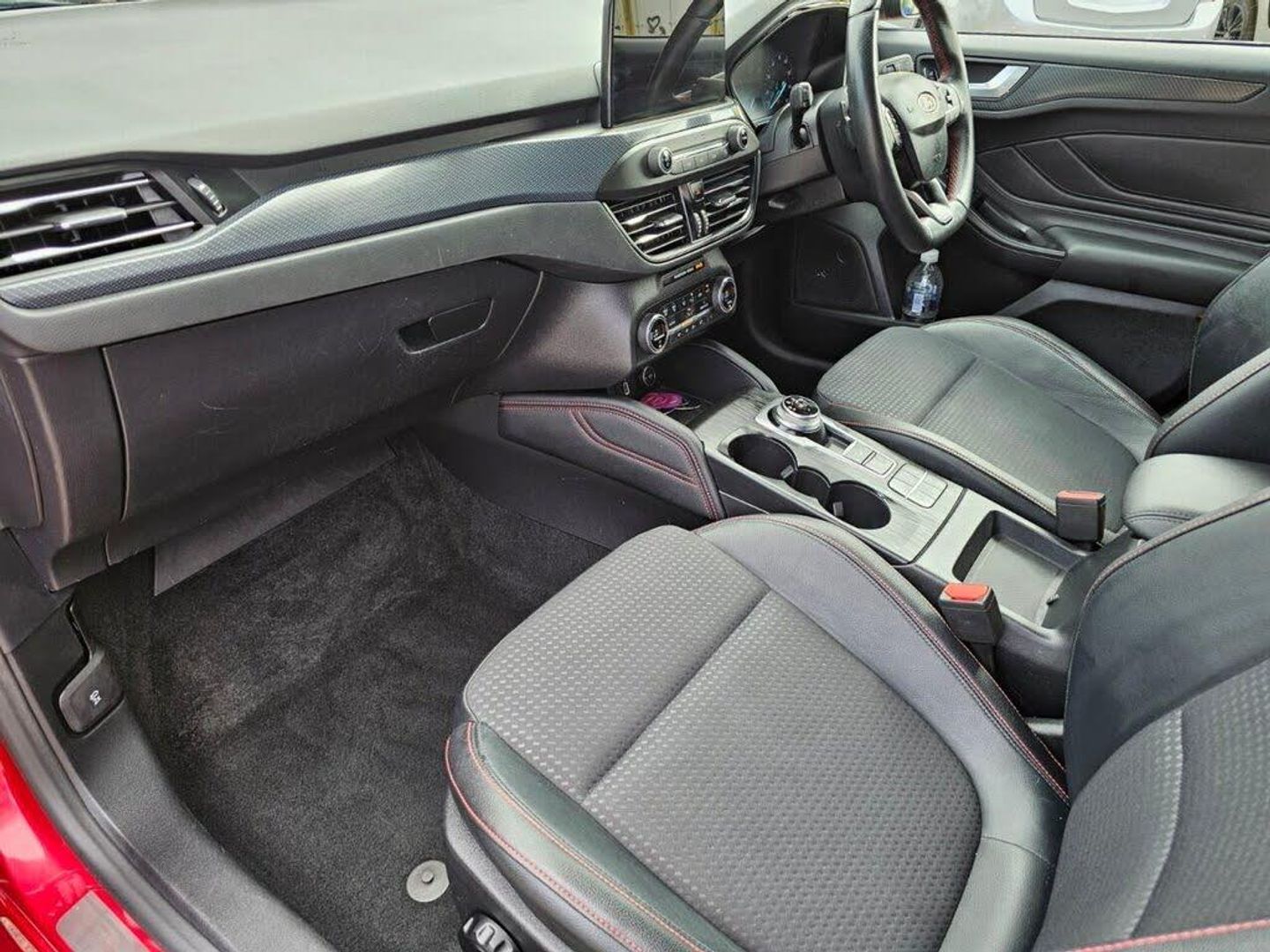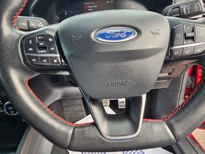 Adaptive Front Lighting System, Keyless Entry, Driver Assistance Pack, Headlights - LED, Race Red, Blind Spot Information System, Trailer Coupling - Detachable, 18in Alloy Wheels - 5x2 Spoke - Matt Black - Machined Finish, 2nd Load Floor, Airbags - Driver and Front Passenger, Airbags - Front Side Impact, Airbags - Front and Rear Side Curtain, Alloy Finish Pedals, Automatic Dimming Rear View Mirror, Body Colour Bumpers, Cruise Control with Speed Limiter, DEATC - Dual-Zone Electronic Automatic Temperature Control, Dark Headliner, Door Handles - Body Colour, Door Mirrors - Electrically-operated - Heated - Power-Foldable - Body Colour Housings - Side Indicators - Puddle Lights, ESC - Electronic Stability Control, Electric Parking Brake, Flat Bottomed Steering Wheel with Red Stitching, Ford Easy Fuel System, Ford SYNC3 DAB Navigation System, FordPass Connect, Front Passenger Airbag Deactivation Switch, Front Seat - Drivers Manual Lumbar Support Adjustment, Front Seats - Driver and Passenger Heated Seats, Front and Rear Floor Mats with Red Stitching, Front and Rear Seatbelt Minder, Halogen Reflector Headlights, Headlights - Automatic On-Off, Instrument Cluster - 4.2in Colour TFT Display, Keyless Start with Ford Power Start Button, LED Daytime Running Lights, LED Front Fog Lights with Cornering Function, Lane Keeping Aid with Lane Departure Warning, Large Rear Spoiler - Body Colour with Centre High Mounted Stop Light, MyKey, Paddle Shift, Parking Sensor - Front and Rear, Passenger Seat Manual Height and Lumbar Adjust, Polished Twin Tailpipe, Post Collision Braking, Pre-Collision Assist with Autonomous Emergency Braking and Pedestrian-Cyclist Detection, Pre-Collision Assist with Pedestrian Detection, Quickclear Heated Windscreen, Rain Sensitive Windshield Wipers, Rear Centre Headrest, Rear Privacy Glass, Rear Seats - Auto Fold, Red Brake Calipers, Remote Central Locking and Engine Immobiliser, Selectable Drive Mode, Soft Console Knee Pads with Red Stitching, Spare Wheel - Mini Steel, Sports Tuned Suspension, Steering Wheel - 3-Spoke - Leather Trimmed, Steering Wheel - ST-Line Sports Style - Flat Bottom, Thatcham Category 1 Alarm, Trip Computer, Tyre Pressure Monitoring System, Unique Door and Instrument Panel Inserts, Unique ST-Line Upper and Lower Grille and Full Bodystyling Kit and ST-Line Wing Badges, Windows - Electrically Operated Front and Rear with One Touch Opening and Closing, Heated Steering Wheel, Ruby Red, Head-Up Display