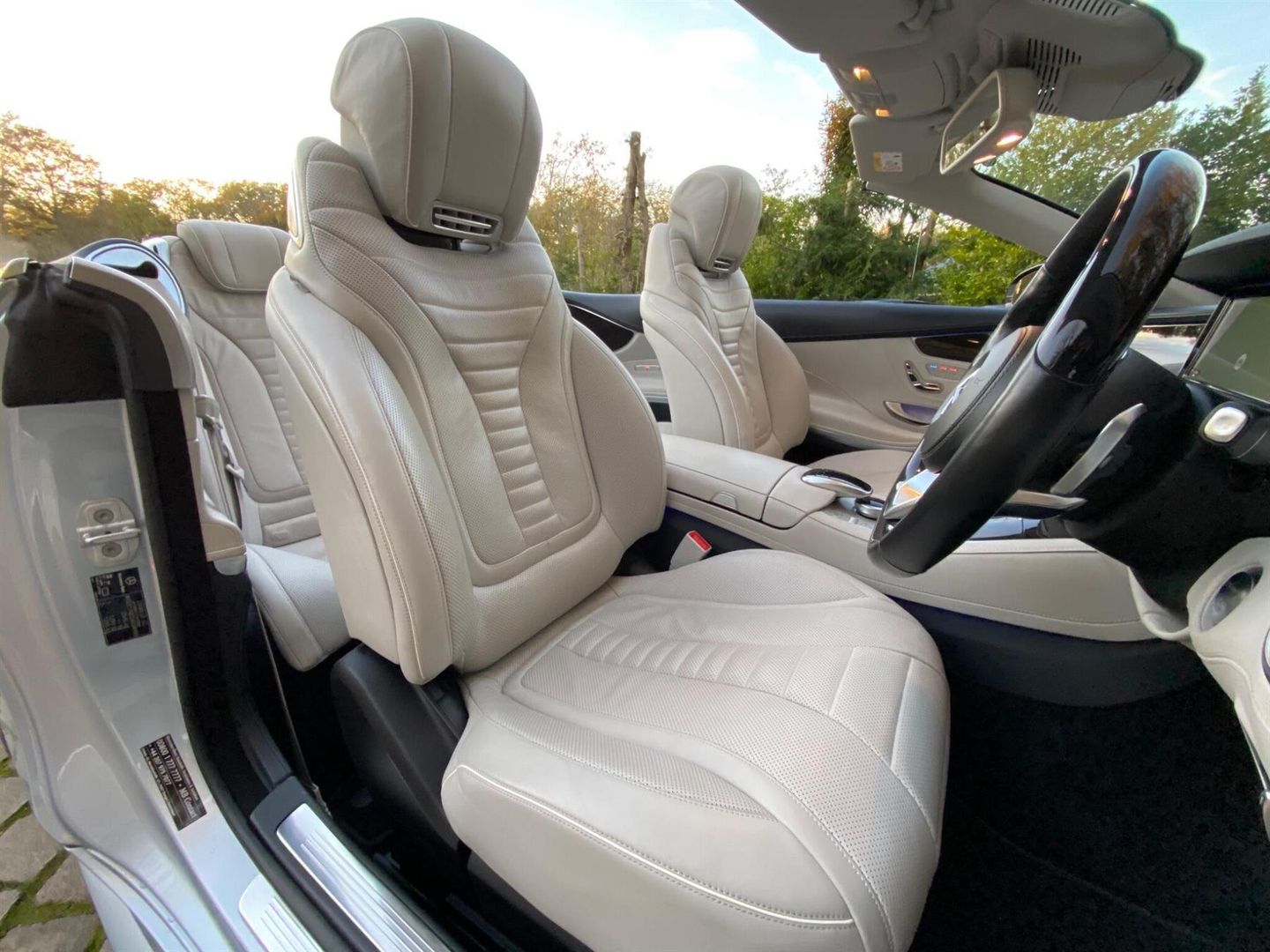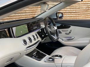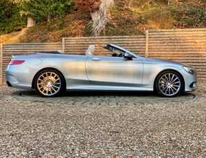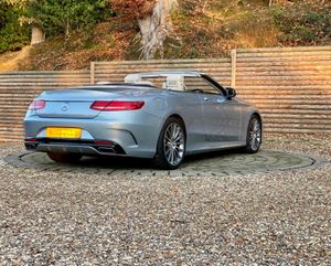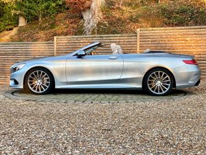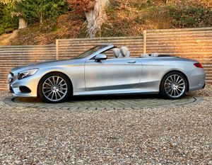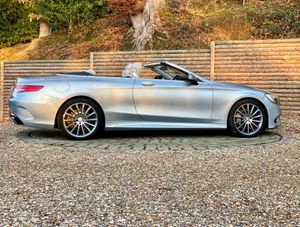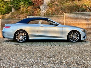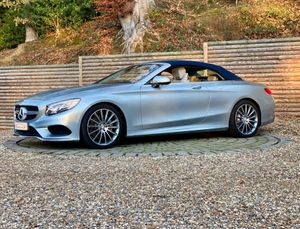 This 2017 Mercedes Benz S Class S500 V8 AMG Line Cabriolet presented in metallic Diamond with Designo premium Crystal Grey Nappa leather boasts an impeccable full service history and a huge factory options list worth £20K, with its last service completed on 22nd May 2025 at 25,108 miles, ensuring exceptional provenance. This Euro 6 compliant, 4.7 litre petrol model presents with a low mileage of only 30,000 miles for its age. Impeccable condition with an extensive service history, MOT valid until November 2026.The AMG trim with 20” Turbine alloys further enhances its already sophisticated presence, and it comes equipped with Comfort heating package, Dynamic/Heated/Vented/Massage climate seats, Special order soft top in dark Navy, Heated Scarf, Winter Warmth Package, Heated Steering Wheel, Burmester surround sound system and 360 surround view cameras for added comfort.Experience the pinnacle of automotive luxury with features designed to impress. The cabin is transformed by the Burmester High End 3D Surround Sound System, delivering an unparalleled audio experience. Illumination is provided by LED Intelligent Light System headlamps, elegantly accented with Swarovski Crystals. Inside, the designo Exclusive Nappa Leather in Crystal grey, complemented by further Nappa Leather detailing, creates a truly bespoke environment. The factory options list is as follows; 20 inch Turbine alloys, Front and rear electronically deployable wind deflectors, Winter Warmth Package, Heated scarf, Heated steering wheel, Special order soft top in dark Navy, Front heated padding, Bi Xenon LED Headlamps, Privacy glass, Electric folding heated side mirrors, Soft close doors, Electric boot, Keyless go, Auto dimming interior/exterior mirrors, AMG extended wheel arches, Memory Package, Front and rear comfort seat heaters, Light Package, Air quality package, DVD Player, Designo Veneer, AMG Styling Package, Ambience Illumination, COMAND APS, Dual Cup Holder, Dynamic/Massage Seat Package, DAB Radio, AMG Sport Package, Illuminated door sills, Active Park Assist, Climate Seats.