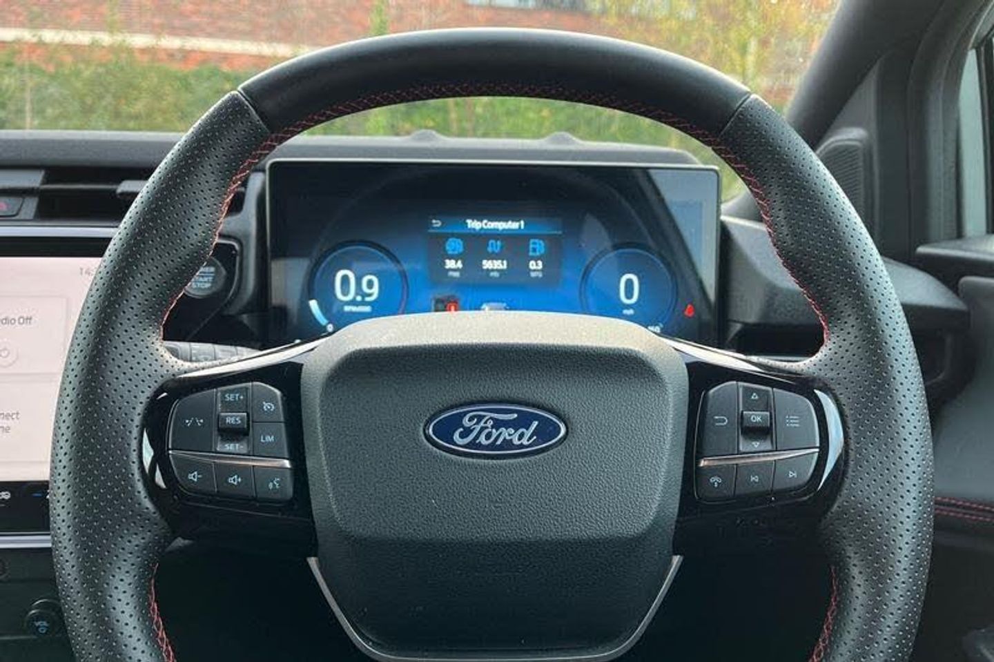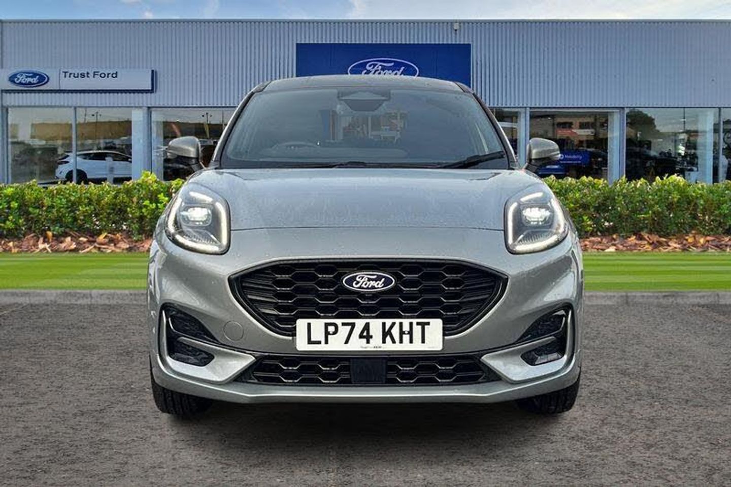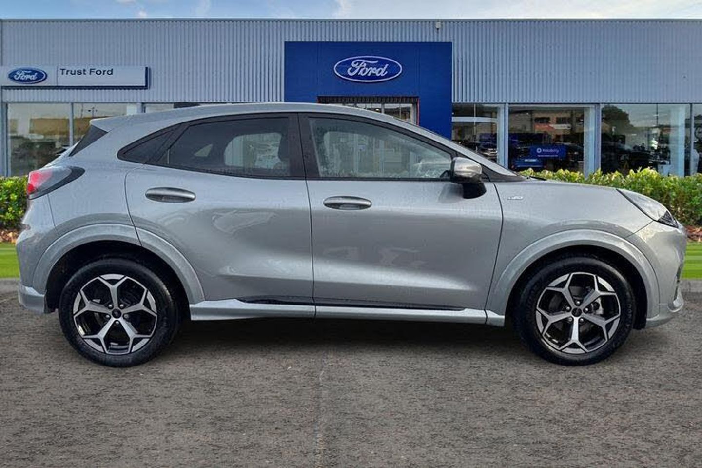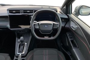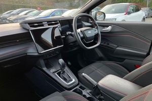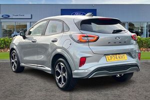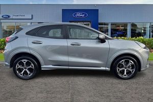 Driver impairment monitor, Emergency call service, Ford easy fuel, Full digital 12.8 instrument cluster, Lane keeping aid with lane departure warning, Power assist steering, Selectable drive modes(Normal, sport, Eco, trail, slippery), Speed sign recognition, Automatic headlights with rain sensing wipers and auto high beam, Front fog lamps, LED daytime running lights, LED rear lamps, LED third brake light, Power foldable heated door mirrors with puddle lamps and puma logo protection, Quickclear heated windscreen, Rear privacy glass, Rear side wing doors, Rear wiper, ST-Line body styling kit with unique grille, 3 seat bench in 2nd row, Centre console with armrest and stowage, Electronic automatic temperature control (EATC), Ford megabox extended bootspace, Front and rear head restraints, Front floor mats, Manual 4 way driver seat adjust with lumbar adjustment, Single front passenger seat, ST- Line cloth trim with red stitching, 3 rear seatbelts, Child safety lock, Electronic stability control (ESC) and hill start assist, Pre-collision assist with autonomous emergency braking, pedestrian/cyclist detection & post-collision braking, Tyre pressure monitoring system (TPMS)
