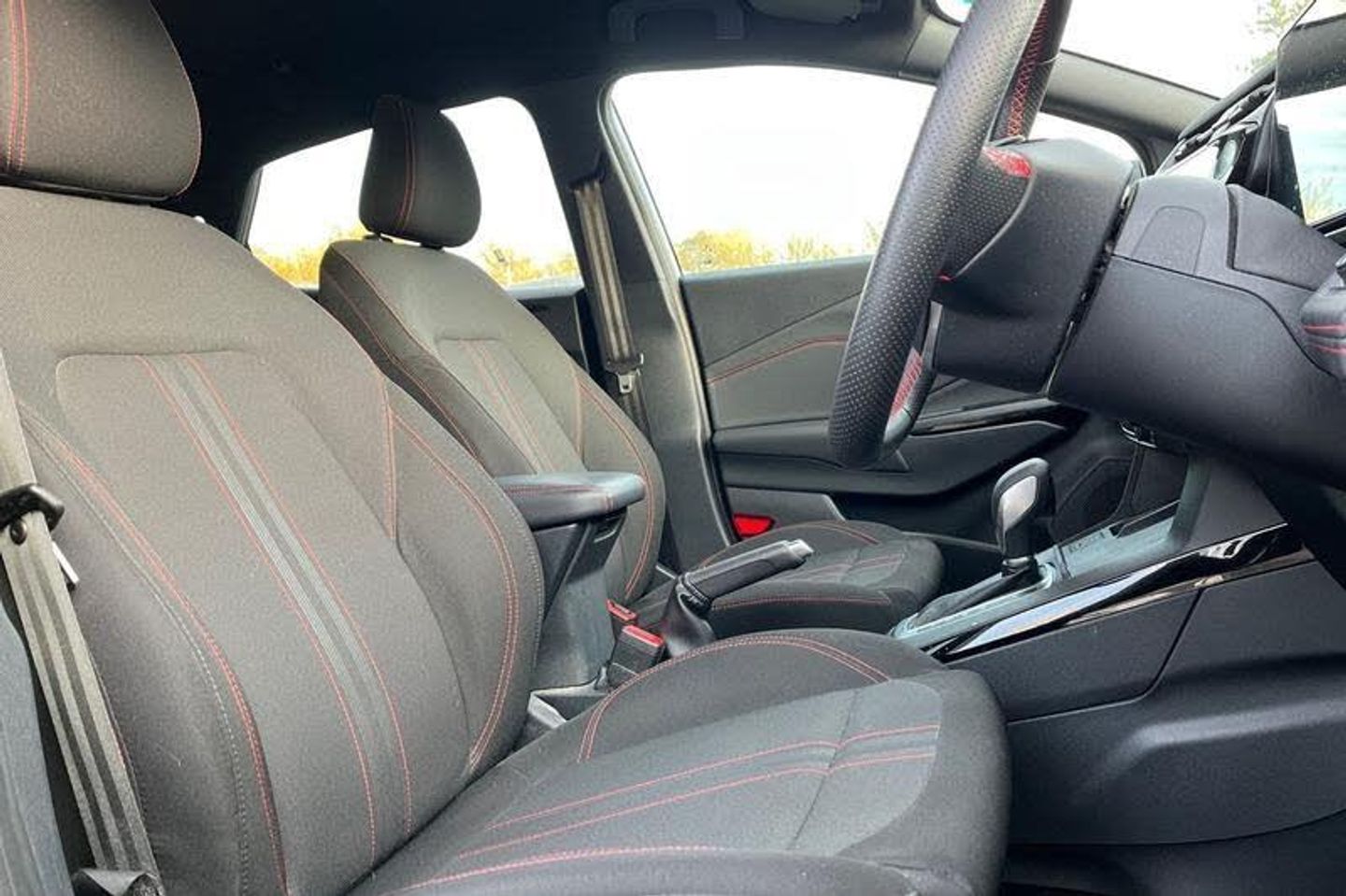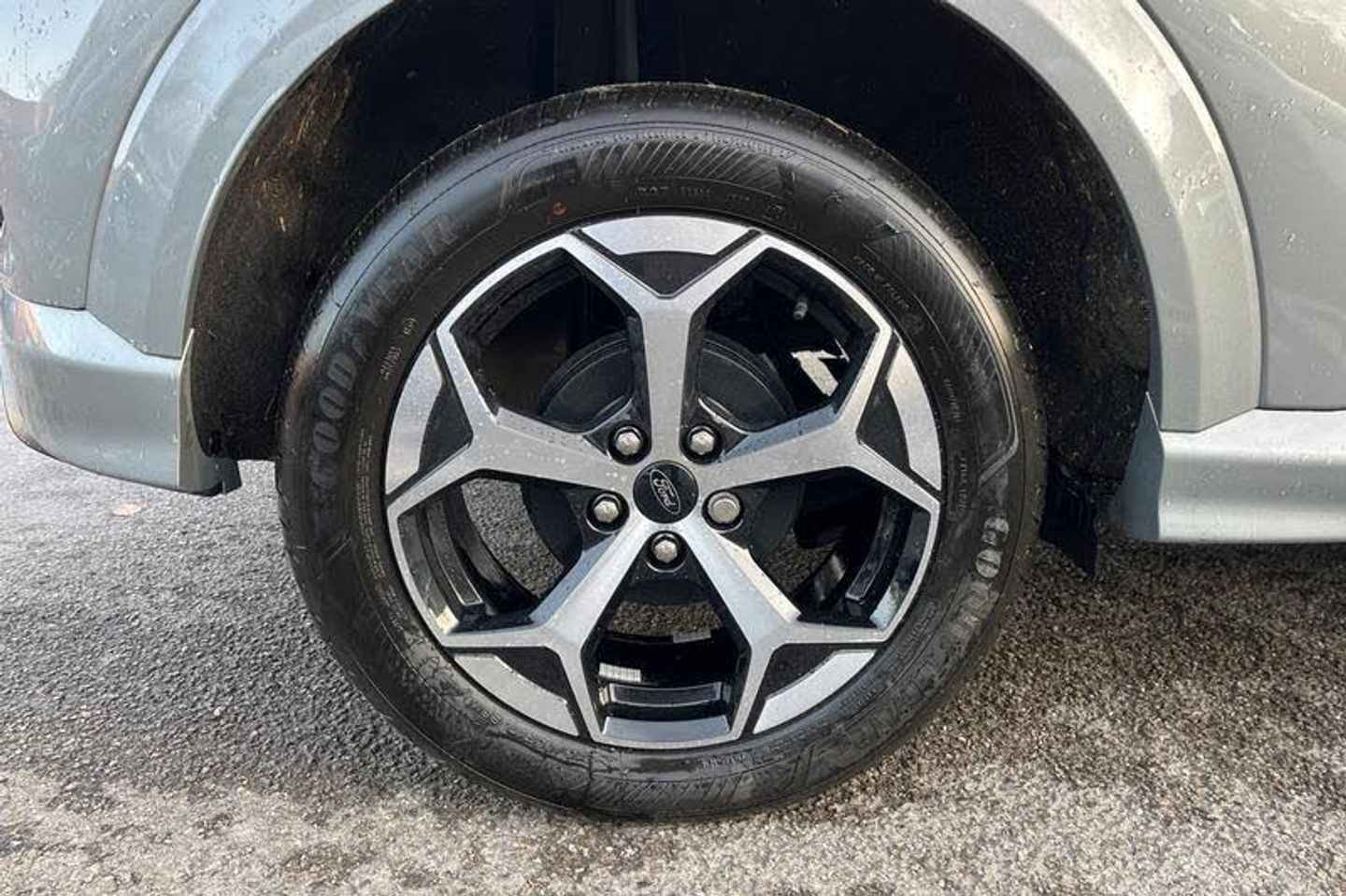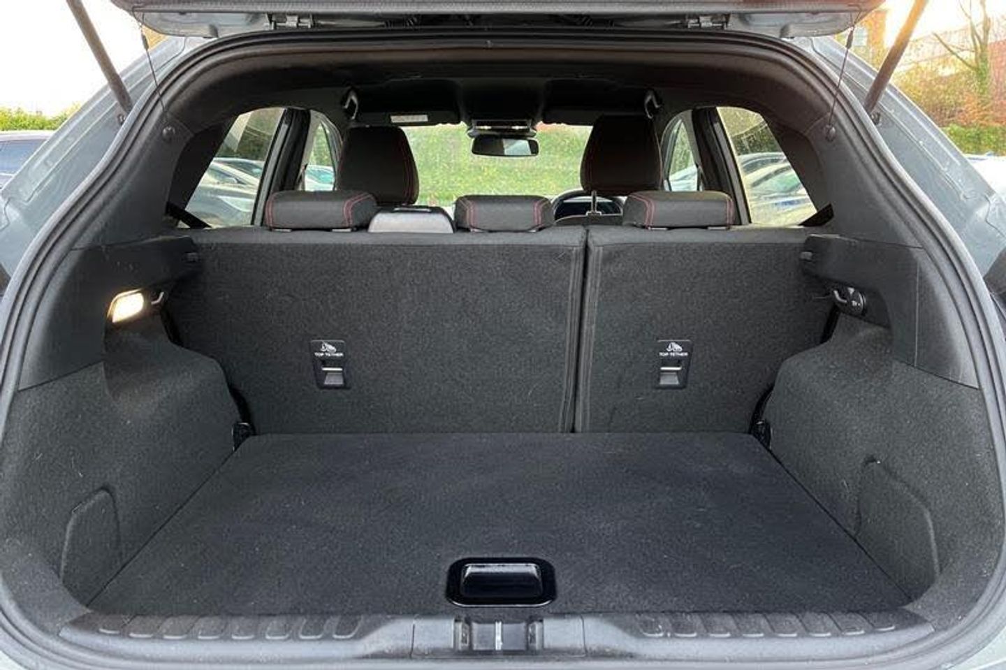 Driver impairment monitor, Emergency call service, Ford easy fuel, Full digital 12.8 instrument cluster, Lane keeping aid with lane departure warning, Power assist steering, Selectable drive modes(Normal, sport, Eco, trail, slippery), Speed sign recognition, Automatic headlights with rain sensing wipers and auto high beam, Front fog lamps, LED daytime running lights, LED rear lamps, LED third brake light, Power foldable heated door mirrors with puddle lamps and puma logo protection, Quickclear heated windscreen, Rear privacy glass, Rear side wing doors, Rear wiper, ST-Line body styling kit with unique grille, 3 seat bench in 2nd row, Centre console with armrest and stowage, Electronic automatic temperature control (EATC), Ford megabox extended bootspace, Front and rear head restraints, Front floor mats, Manual 4 way driver seat adjust with lumbar adjustment, Single front passenger seat, ST- Line cloth trim with red stitching, 3 rear seatbelts, Child safety lock, Electronic stability control (ESC) and hill start assist, Pre-collision assist with autonomous emergency braking, pedestrian/cyclist detection & post-collision braking, Tyre pressure monitoring system (TPMS)