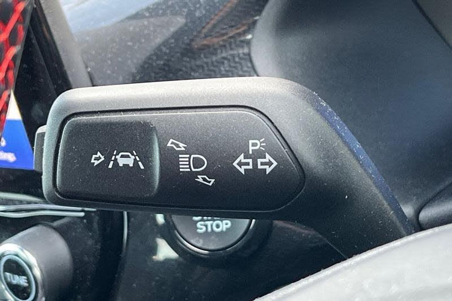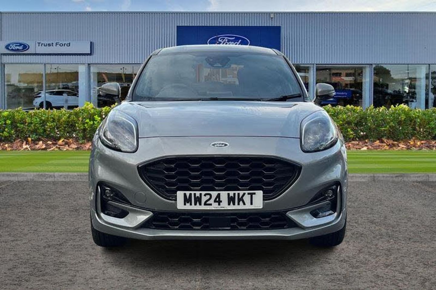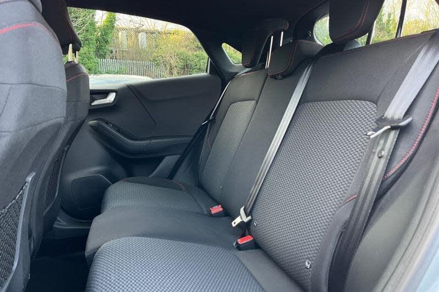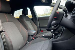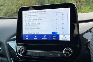 Driver impairment monitor, Emergency call service, Ford easy fuel, Full digital 12.3 instrument cluster, Lane keeping aid with lane departure warning, Power assist steering, Power start button, Rear parking sensor, Selectable drive modes(Normal, sport, Eco, trail, slippery), Speed sign recognition, Automatic headlights with auto high beam, Automatic rain sensing wipers, LED rear lamps, Power foldable heated door mirrors with puddle lamps, Projector headlamps with LED day time running lights and front fog lamps, Quickclear heated windscreen, Rear side wing doors, Rear wiper, ST-Line body styling kit with unique grille, Third brake light, 3 seat bench in 2nd row, Centre console with armrest and stowage, Ford megabox extended bootspace, Front and rear head restraints, Front floor mats, Manual 2 way passenger seat adjustment, Manual 4 way driver seat adjust with lumbar adjustment, Single front passenger seat, ST- Line cloth trim with red stitching, ST-Line flat bottomed sensico leather steering wheel with leather handbrake and aluminium gear knob, 3 rear seatbelts, Child safety lock, Electronic stability control (ESC) and hill start assist, Pedestrian/cyclist detection & post-collision braking, Pre collision assist system, Tyre pressure monitoring system (TPMS)