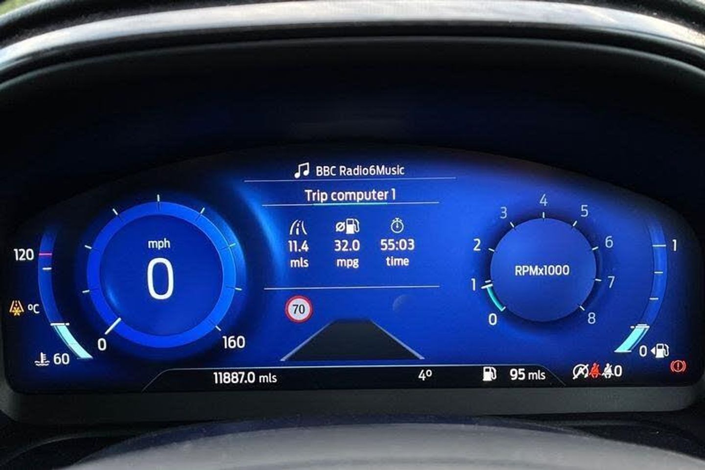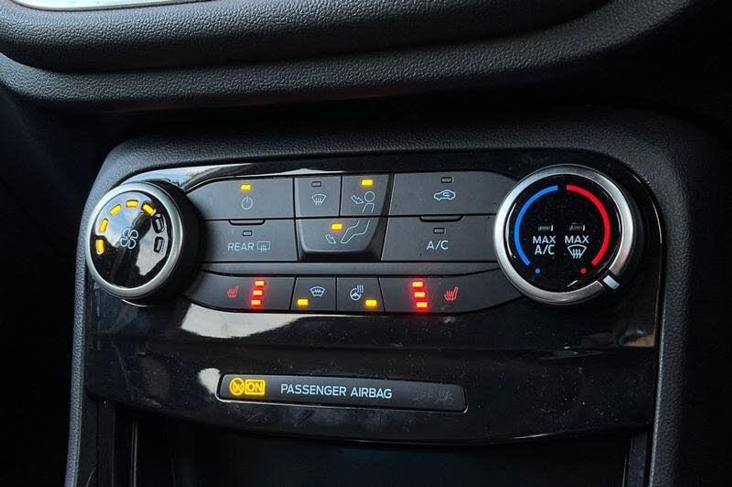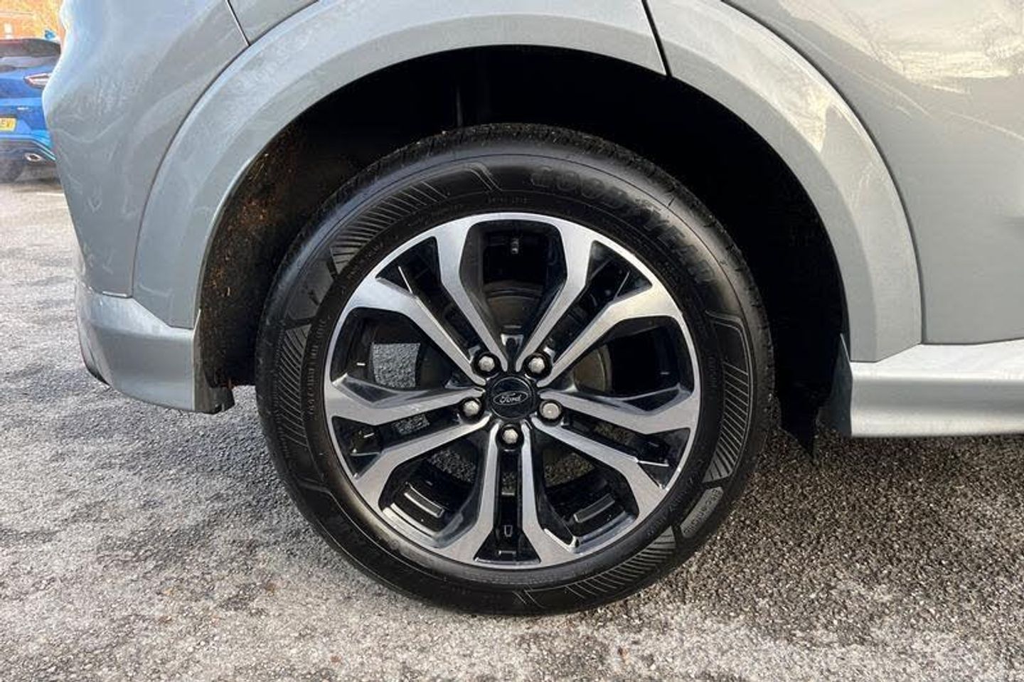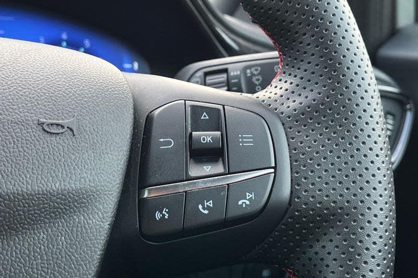 Driver impairment monitor, Emergency call service, Ford easy fuel, Full digital 12.3 instrument cluster, Lane keeping aid with lane departure warning, Power assist steering, Power start button, Rear parking sensor, Selectable drive modes(Normal, sport, Eco, trail, slippery), Speed sign recognition, Automatic headlights with auto high beam, Automatic rain sensing wipers, LED rear lamps, Power foldable heated door mirrors with puddle lamps, Projector headlamps with LED day time running lights and front fog lamps, Quickclear heated windscreen, Rear side wing doors, Rear wiper, ST-Line body styling kit with unique grille, Third brake light, 3 seat bench in 2nd row, Centre console with armrest and stowage, Ford megabox extended bootspace, Front and rear head restraints, Front floor mats, Manual 2 way passenger seat adjustment, Manual 4 way driver seat adjust with lumbar adjustment, Single front passenger seat, ST- Line cloth trim with red stitching, ST-Line flat bottomed sensico leather steering wheel with leather handbrake and aluminium gear knob, 3 rear seatbelts, Child safety lock, Electronic stability control (ESC) and hill start assist, Pedestrian/cyclist detection & post-collision braking, Pre collision assist system, Tyre pressure monitoring system (TPMS)