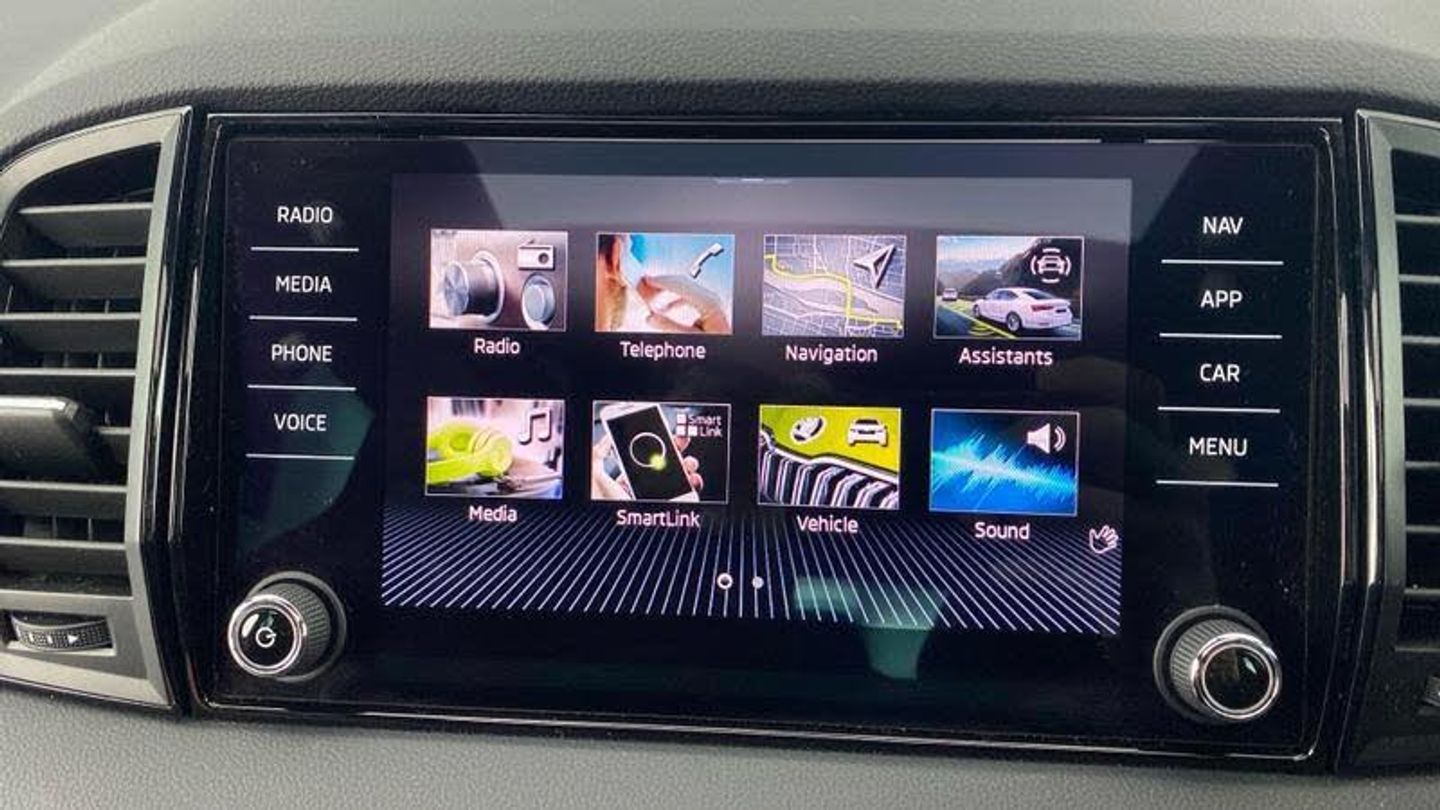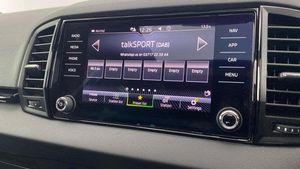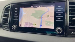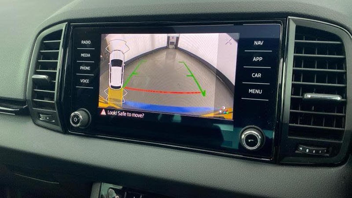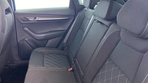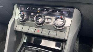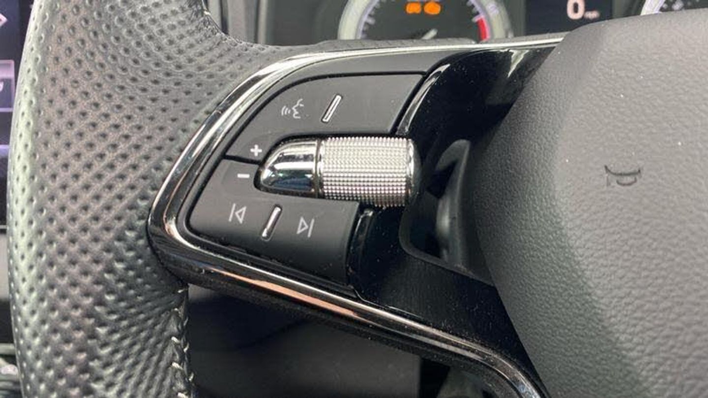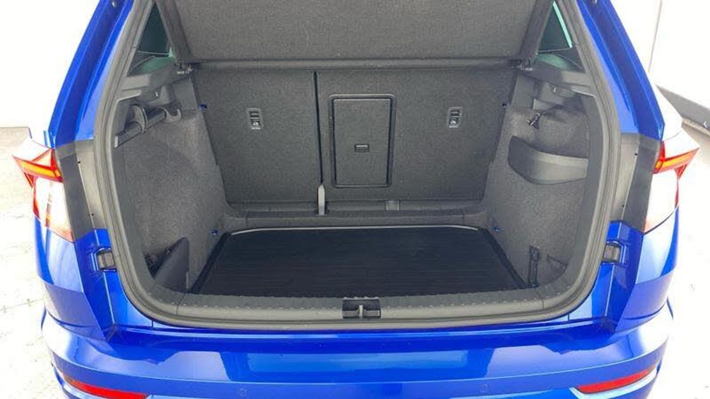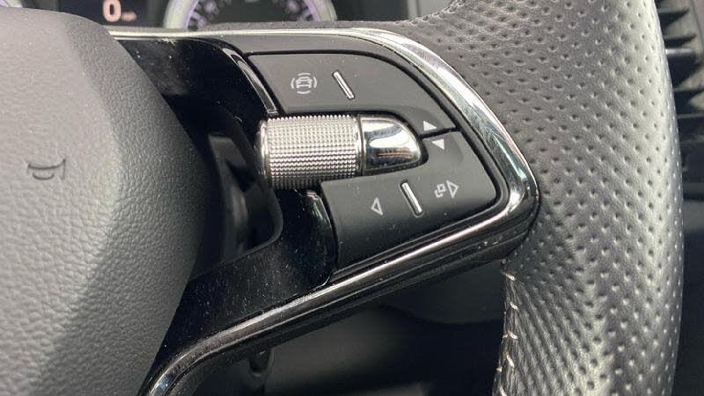 Acoustic glass, Aero front windscreen wipers with intermittent function, Black electric window control buttons, Black radiator grille, Black roof rails, Body colour door handles, Body coloured bumpers, Front door steps with SportLine logo, Panoramic sliding sunroof, Sportline decorative inserts with badging, Automatic headlight control system, Full LED headlights + adaptive front light system + LED daytime running lights and front cornering fog lights, Headlight washers, LED rear lights with high functionality, Light assistant (coming/leaving home/tunnel light), ESC including ABS, MSR, ASR, EDS, HBA, DSR, RBS, MKB and traction control, Front assist radar scanning of the space in front of the car with automatic braking, Drive mode selector, Black door mirrors, Airbags - Front side, head, knee and curtain, Automatic door unlocking in case of crash, Automatic fuel cut off in case of crash, Driver airbag, Passenger airbag with switch-off function, Seatbelt reminder signalisation and pretensioner for all seats, Three point seatbelts rear, Tyre pressure monitor, Pollen filter, 1.5 litre bottle holders in driver and front passenger door panels, 12V socket in boot, 12v socket in front centre armrest with storage compartment and rear air vents, 2 Folding hooks and nets in boot, 4 foldable roof handles with rear coat hooks, Chrome inner door handles, Door sill scuff plates, Height/reach adjust steering wheel, Illuminated and cooled glovebox, Net programme in boot, Retractable parcel shelf attachable to tailgate, Solid rear boot cover, Storage box in upper central dashboard closed, Umbrella under passenger seat, 2 Front readings lights for driver and passenger, Cargo elements in boot, Illuminated luggage compartment, Rear reading lights, Sunvisors with illuminated vanity mirrors, Care connect, DAB radio with Bluetooth, USB connection, Start/stop system with regenerative braking, Multifunction colour trip computer, Outside temperature gauge, Service interval indicator, SmartLink wireless for Apple and wired for Android, Black air vent surround, 3 rear height adjustable headrests, Driver and passenger seats height adjust, Front head restraints, Height adjustable front three point seats belts with tensioners, Isofix child seat preparation outer rear, Rear seats fixed folding and divided 60:40, LED Interior lighting pack with Skoda welcome logo - Karoq, Alarm with interior monitoring, back up horn and tilt sensor with safe function, Keyless entry and keyless start with safe system, Remote central locking with 2 remote folding keys, Anti-theft wheel bolts protection, 19 Vega anthracite alloy wheels, [Audio and Communications]Wireless charging without wireless aerial connection, USB C Port x 2 in front centre console, [Drivers Assistance]Tyre pressure display, Driver fatigue sensor, [Exterior]Electric front and rear windows with child proof lock, Heated rear windscreen, Privacy glass, Protective door side sills in body colour, Rear diffuser, Skoda lettering on tailgate in black, Sportline badge on front fender, Sports front and rear bumpers, Welcome animation with sportline logo, [Illumination]Third brake light, [Interior]Safety reflectors on front doors, Textile floor mats, Aluminium pedals, Black roof headlining, Ice scraper, Pen holder, Storage compartment below the passenger seat, Safety vest holder, Manual lumbar support for front seats, Storage on wheel cover, [Safety and Security]Electronic parking brake with auto hold function, Emergency rear braking signal, Hill hold control, Pedestrian monitor, Two tone horn, Electronic engine immobiliser