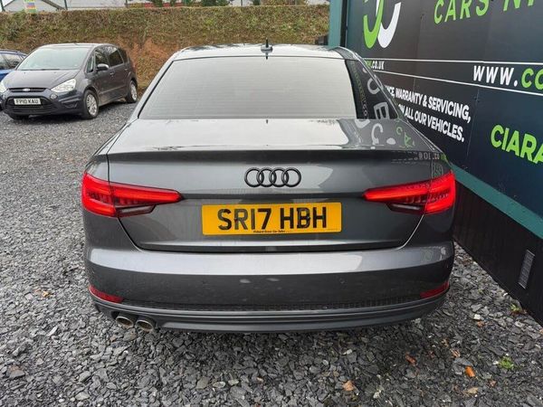 18in Alloy Wheels - 5-Twin-Spoke Star Design, 4-Way Electric Lumbar Support, 6-Airbag System, Anti Theft Locking Wheel Bolts, Anti-Theft Alarm, Audi Connect - 3 Month Trial, Audi Connect Safety and Service - e-call, Audi Drive Select, Audi Smartphone Interface, Audi Sound System, Auto-Dimming Rear-View Mirror, Bluetooth Interface, Body Coloured Door Mirrors, CD Drive, Chrome-Plated Trims for Exhaust System, Cloth Headlining in Black, Cruise Control with Speed Limiter, DAB Digital Radio, Deluxe 3-Zone Electronic Climate Control, Door Handles - Body Coloured, Door Mirrors - Electrically Adjustable and Heated with Built-in LED Indicators, Driver Information System - 7in Colour Display, ESC - Electronic Stabilisation Control inc ABS - ASR and EDL, Electric Boot Lid Release, Electric Windows - Front and Rear, Electromechanical Power Steering, First Aid Kit and Warning Triangle, Front Centre Armrest, Gear Lever Knob in Black Perforated Leather, Heated Front Seats, High Gloss Package, High Multifunction S Line 3-Spoke Leather Trimmed Sport Steering Wheel with Grips in Perforated Leather, ISOFIX Child Seat Mounting and Top Tether, Illuminated Door Sill Trims with S Logo, Inlays - Matt Brushed Aluminium, Keyless Go, LED Headlights with LED Rear Lights and Dynamic Rear Indicators, LED Interior Light Package, Light and Rain Sensor, MMI Navigation - SD Card Based, Manual Height Adjustment for Front Seats, Multi Collision Brake Assist, Parking System Plus, Pedals and Footrest - Stainless Steel, Pop-Up Bonnet for Pedestrian Protection, Pre-Sense City, Radiator Grille - Twilight Grey Matt with Inlays in Chrome, Rear Diffuser in Twilight Grey Matt, Rear Grille - Black Grained, Remote Central Locking, S Line Badges on Front Wings, S line Front and Rear Bumpers and Side Skirts, Seat Belt Monitoring, Side Air Inlet Grille in Titan Black Matt with Chrome Inlays in Unique S Line Design, Space Saver Spare Wheel, Split-Folding Rear Seat Bench in 3 Parts - 40-20-40 with Rear Centre Armrest, Sport Suspension, Sun Visors - with Vanity Mirror, Tool Kit and Car Jack, Towbar Preparation, Two USB Charging Ports, Tyre Pressure Warning Light, Voice Control, Windscreen with Acoustic Glazing