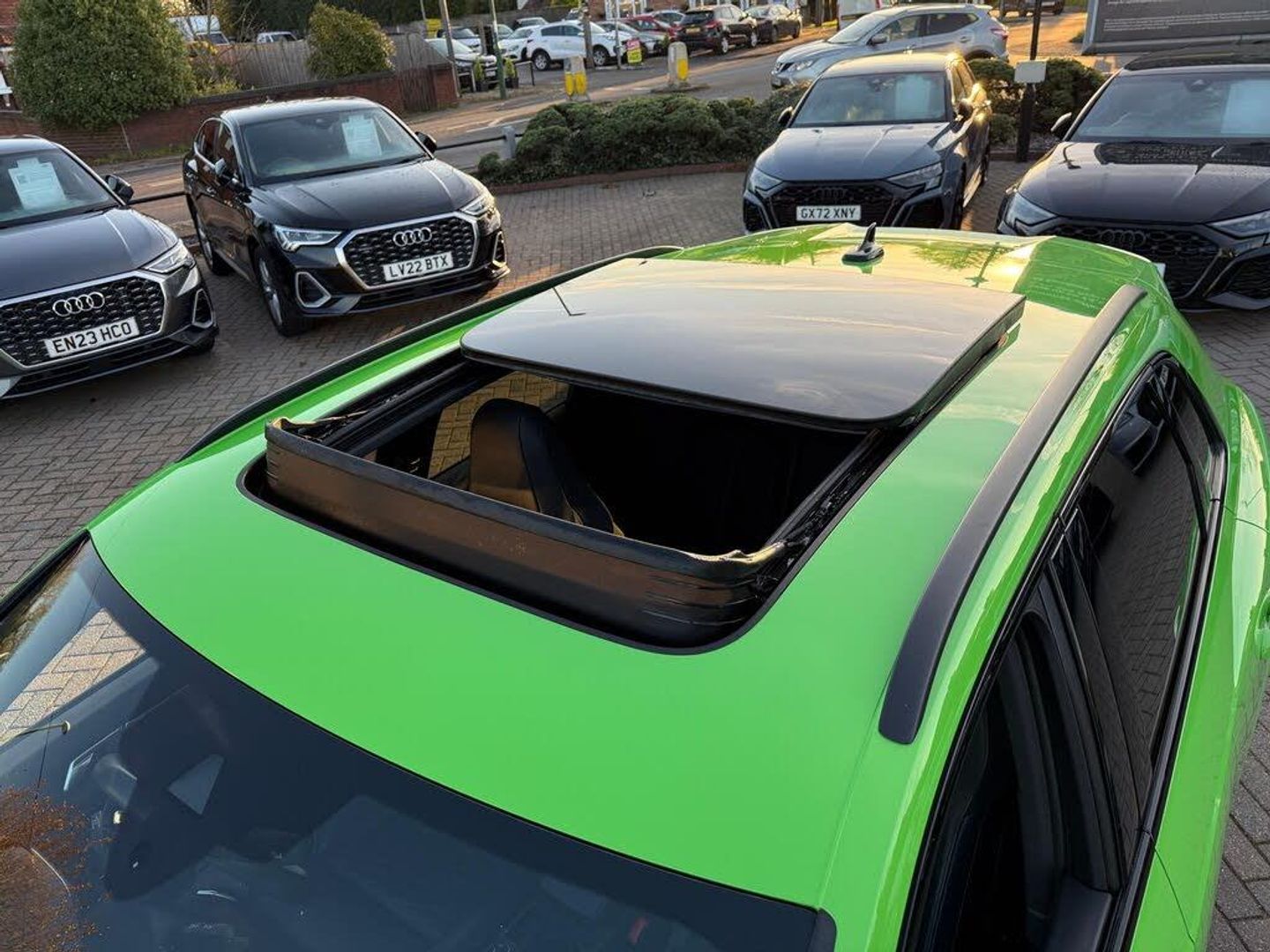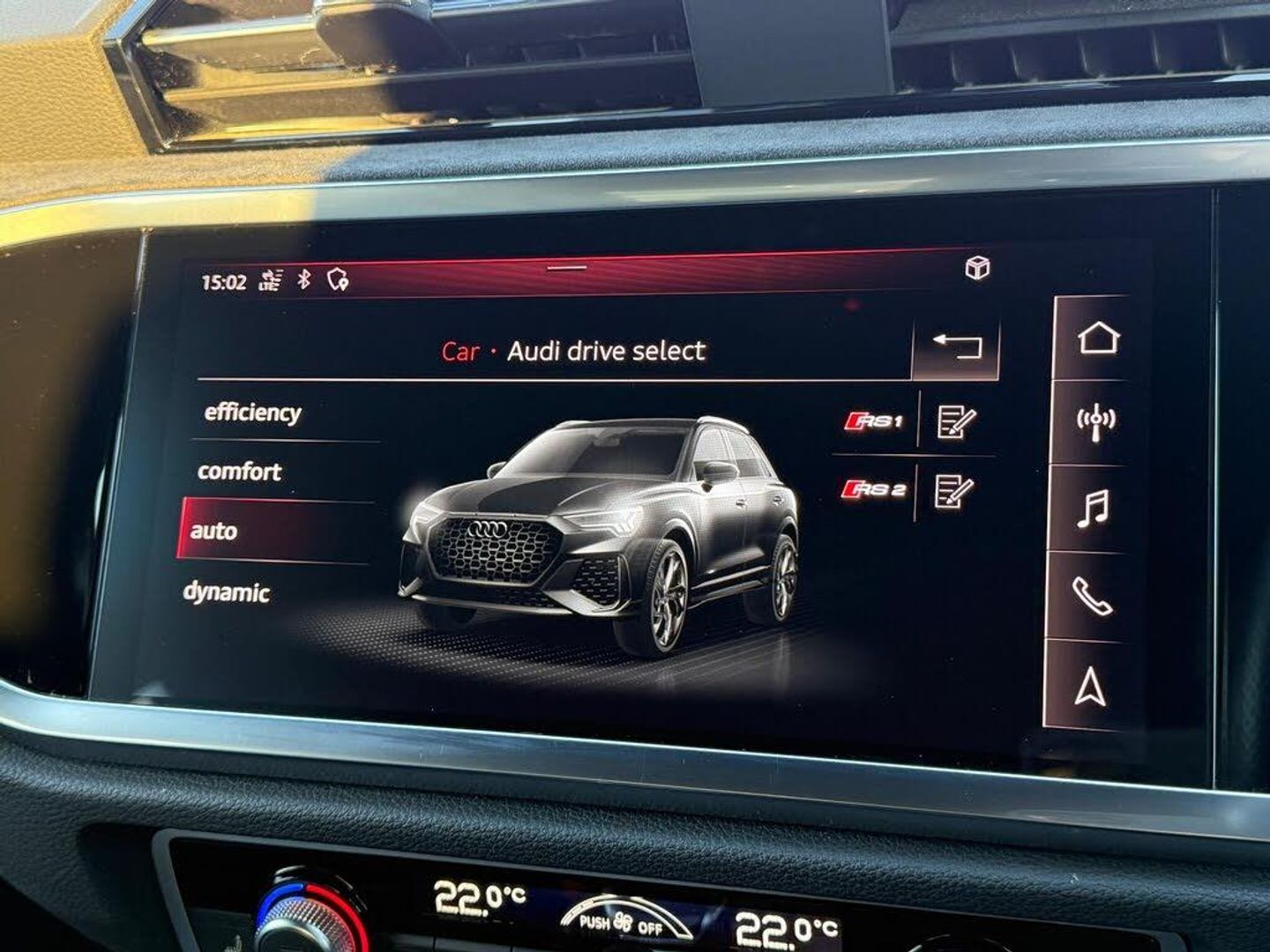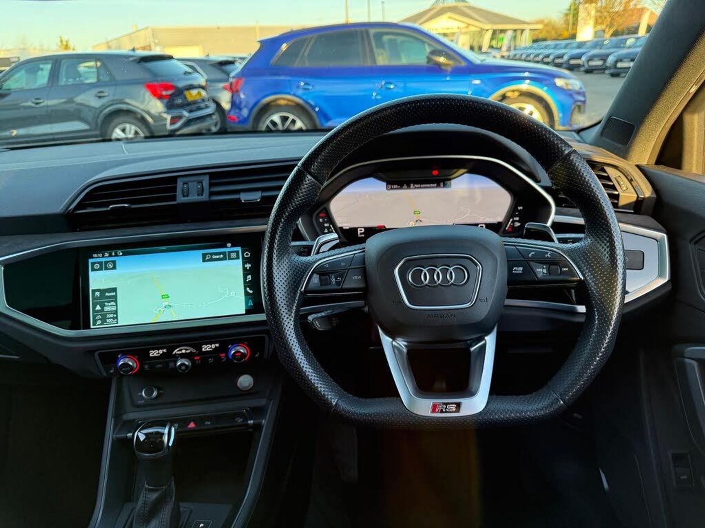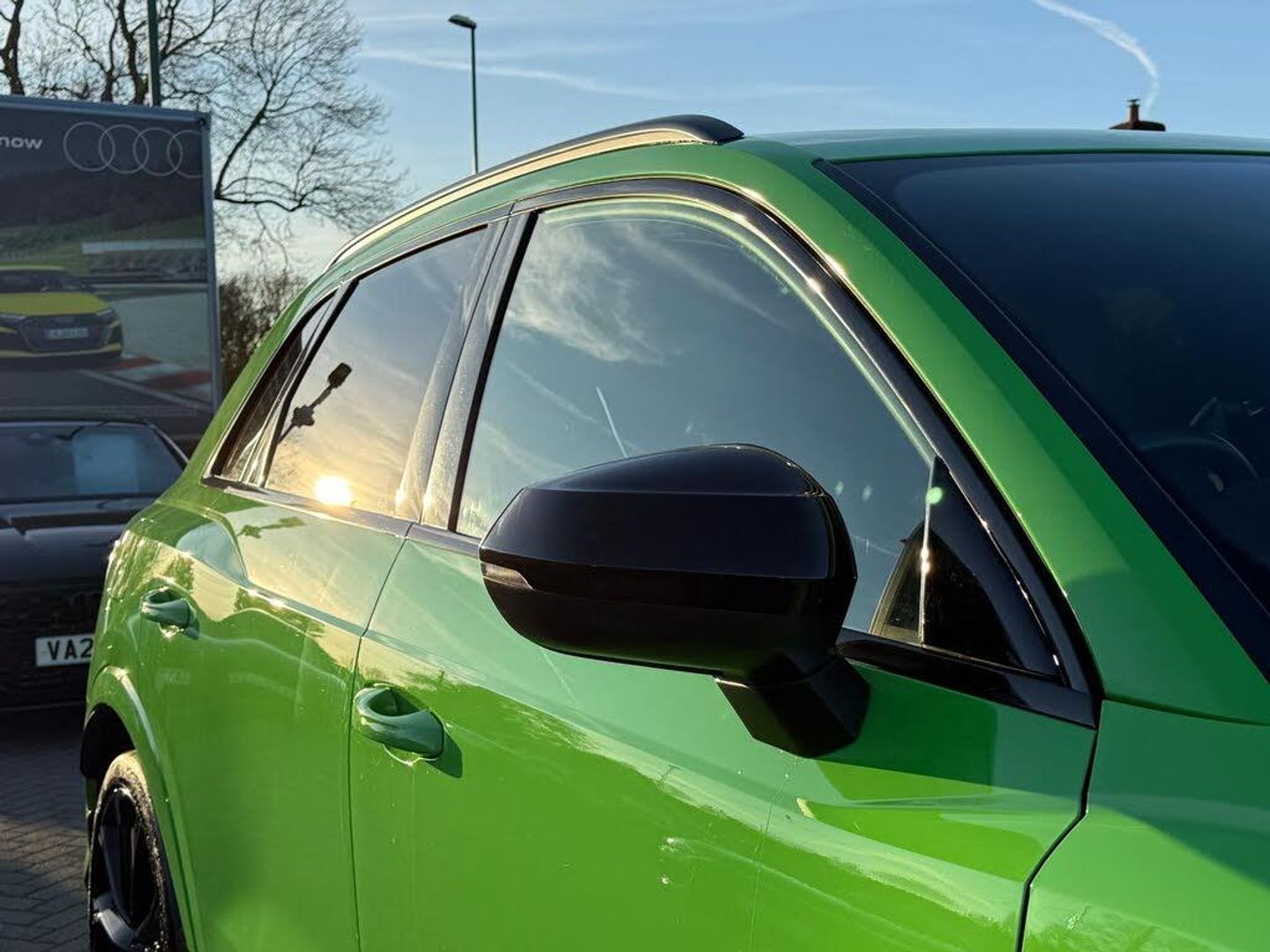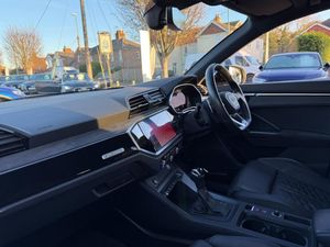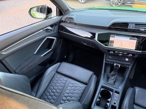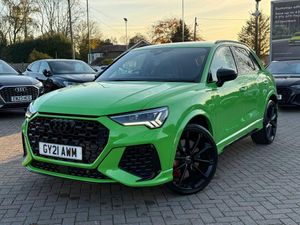 1 x USB-C and 1 x USB-A Port with Charge and Data Functions, 21in Alloy Wheels - 8.5J 5-V-Spoke - Polygon Design in Black, 4-Way Electric Lumbar Support, 6-Airbag System, Adjustable Rear Seat Bench-Backrest with Centre Armrest and Cupholder, Advanced Key, Aluminium Look Interior Elements, Ambient Lighting Pack, Anti Theft Locking Wheel Bolts, Anti-Theft Alarm, Audi Beam, Audi Connect Infotainment Services Plus including Amazon Alexa Integration (3 Year Subscription From New), Audi Connect Safety and Service - e-call, Audi Drive Select, Audi Pre-Sense Basic, Audi Pre-Sense Front with Pedestrian and Cyclist Recognition, Audi Smartphone Interface includes Wireless Apple CarPlay, Audi Sound System, Audi Virtual Cockpit - 12.3in High Resolution LCD Display, Auto Dimming and Frameless Rear View Mirror, B and C-Pillar Trim in High-Gloss Black, Black Roof Rails, Black Styling Package, Bluetooth Interface, Body Coloured Rear Spoiler, Camera-Based Traffic Sign Recognition, Cloth Headlining in Black, Cruise Control System with Speed Limiter, DAB Digital Radio, Dark Tinted Matrix LED Headlights with Dynamic Front and Rear Indicators, Detail in Dashboard Around the MMI Touch Colour Display in Glass Look - Black with Surround in Aluminium Look, Door Mirrors - Electrically Folding - Adjustable and Heated with Integrated LED Side Indicators and Kerb-view Function for Passenger Side, Dual-Zone Electronic Climate Control, ESC - Electronic Stabilisation Control inc ABS - ASR and EDL, Electric Windows - Front, Electrically Adjustable Front Seats, Electromechanical Parking Brake, Exterior Mirror Housings in Black, First Aid Kit and Warning Triangle, Flared Wheel Arches - by 10mm, Flat Slits above Singleframe Grille, Front Centre Armrest, Front RS Sports Seats, Front Spoiler Blade - Side Blades - Inserts on Door Trim Strips and Diffuser Insert in Matt Aluminium Look, Front and Rear Floor Mats, Headlights Washers, Heated Front Seats, Hill Descent Control, Hill Hold Assist, ISOFIX Child Seat Mounting for the Front Passenger Seat with Front Passenger Airbag Deactivation and ISOFIX Child Seat Mounting and Top Tether for the Outer Rear Seats, Illuminated Door Sill Trims with RS Q3 Logo at Front, Inlays - Piano Black, Interior Elements in Black Alcantara, LED Rear Lights, Lane Departure Warning, Light and Rain Sensor, Luggage Compartment Sill Protection in Stainless Steel, MMI Navigation Plus with High Resolution 10.1in Touchscreen Colour Display, Non-Smoking Package, Panoramic Glass Sunroof, Parking System Plus - Front and Rear Sensors, Pedals in Stainless Steel, Power Operated Tailgate, Privacy Glass - Dark-Tinted Rear and Rear-Side Windows - From B-Pillar Backwards, Progressive Steering, RS Brake System with Brake Calipers in Black, RS Flat Bottomed Leather Multifunction Steering Wheel, RS Specific Front and Rear Bumpers, RS Sports Exhaust System, RS Sports Suspension, Radiator Grille with Honeycomb Design in Gloss Black, Seat Belt Monitoring, Tool Kit, Tyre Pressure Warning Light, Tyre Repair Kit, Voice Control System with Natural Language Interaction, Windscreen in Acoustic Glazing, Kyalami Green, Fine Nappa Leather - Black with Black Stitching, Comfort and Sound Package, Tyre Pressure and Temperature Monitoring System, Adaptive Suspension, Brake Calipers Painted in Red with RS Logo at the Front