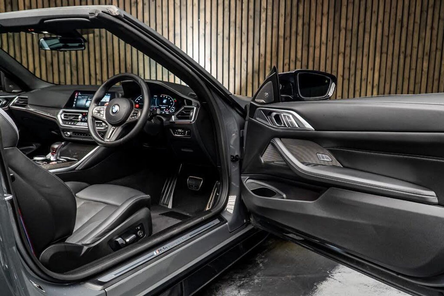 This 2021 BMW M4 Competition BiTurbo offers an exceptional driving experience, boasting a powerful 3.0 litre petrol engine and a responsive Four Wheel Drive system. As a Euro 6 compliant vehicle, it meets modern emission standards. This M4 comes equipped with a stylish Anthracite soft top featuring a silver fleck, perfect for enjoying open top motoring. The Visibility Pack enhances your journey with advanced LED and Laser headlights, while the Parking Assistant Plus provides a 360 degree camera view along with front and rear sensors for effortless manoeuvring. Inside, you'll find comfort features such as a heated steering wheel and heated seats for both the driver and front passenger.The performance of this M4 is truly remarkable, achieving 0-62mph in just 3.7 seconds, demonstrating its superior acceleration compared to many other vehicles in its class. This impressive speed is complemented by a surprisingly large boot space, offering practicality without compromising on its sporty nature. Furthermore, its placement in a low insurance group makes it a more accessible choice for many drivers, indicating excellent value for money when considering running costs alongside its thrilling capabilities.-Visibility & Comfort Packages-PLEASE CALL BEFORE TRAVELLING AS NOT ALL THE VEHICLES ARE ON SITE