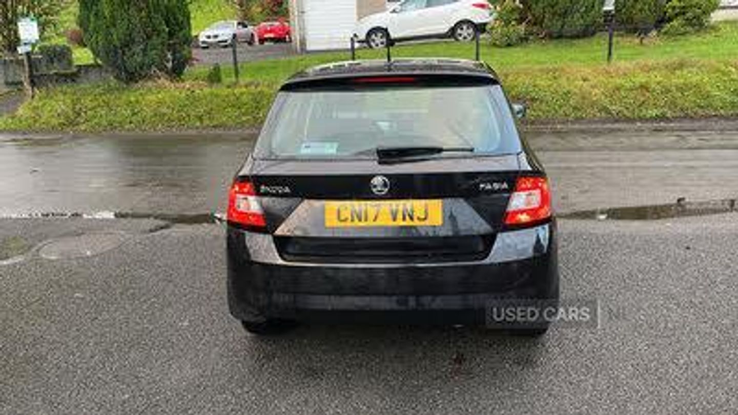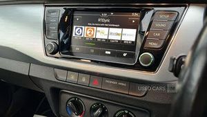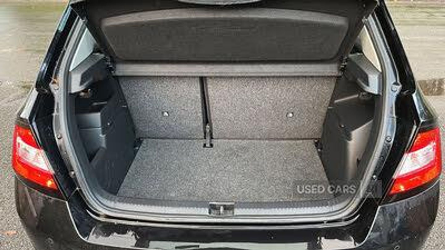 Bluetooth system, Exterior temperature gauge, Front assistant collision mitigation, PAS, Service interval indicator, SmartLink, 6 loudspeakers, Auxiliary socket for external MP3 player, Bolero radio with telephone control, Mirror Link, USB and SD card, DAB Digital radio, Body colour bumpers, Body colour door handles, Chrome grille surround, Electric front windows, Electrically adjustable and heated door mirrors, Heated rear window, Height adjustable headlamps, Intermittent rear wash/wipe, Tinted rear windows, Tinted windscreen, 1.5L bottle holder in front door panels, 2 height adjustable rear headrests, 60/40 split folding rear seat, Boot stowage box, Cargo area storage tray, Driver + passenger vanity mirrors, Folding grab handles, Front reading lights, Height adjustable driver's seat, Height adjustable front headrests, Height adjustable passenger seat, Height/reach adjust steering wheel, Interior light with delay, Leather gearshift, Leather handbrake, Lower glovebox cover, Luggage load hooks, Parcel shelf, Pollen filter, Rear courtesy light, Rear storage trays, Ticket holder, Two rear outer seat isofix location points, Arkamys surround sound pack - Fabia, Chrome Pack - Fabia, 3x3 point rear seatbelts, ABS, Curtain airbags, Driver and passenger airbags, Driver and passenger side airbags, EDS, ESC with ASR, Front seatbelt pretensioners, HBA (Hydraulic Brake Assist), Passenger airbag deactivate switch, Seatbelt warning, Tyre pressure monitor, Alarm with interior monitoring, Immobiliser, Locking wheel bolts, Remote central locking
